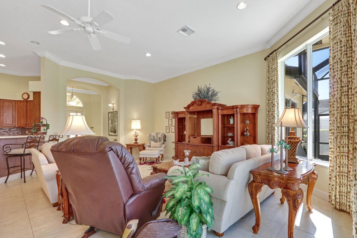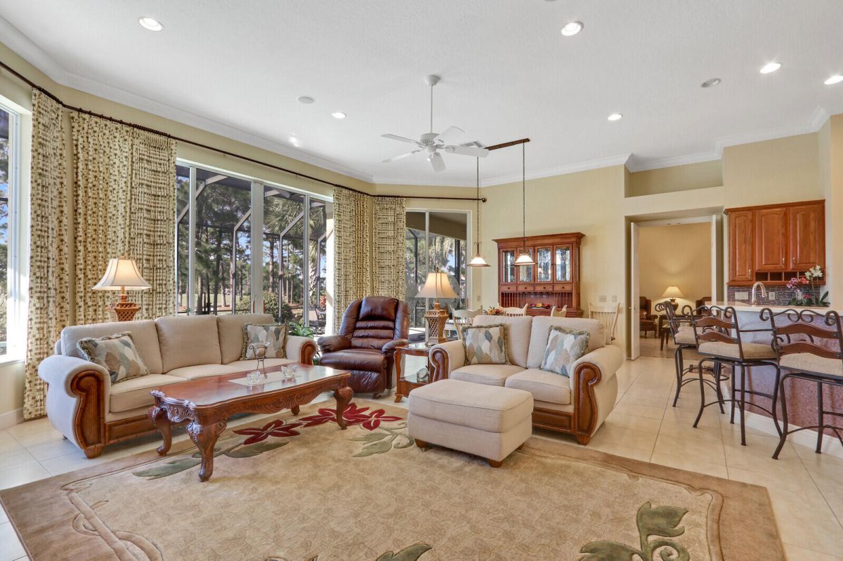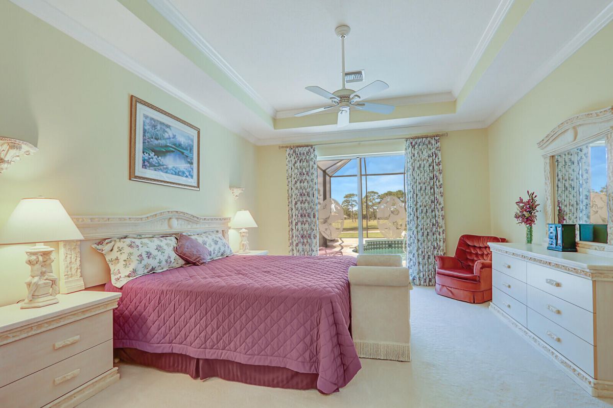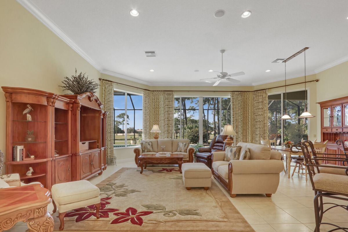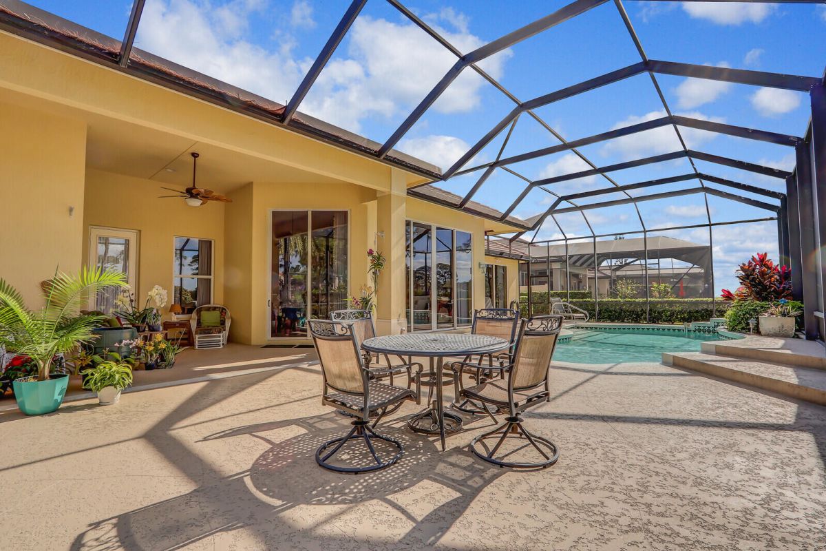 SWEEPING GOLF COURSE VIEWS IN CYPRESS POINT, PGA VILLAGE! This beautiful, well-maintained home in the very popular Cypress Point neighborhood of PGA Village offers breathtaking views of the 17th fairway of the PGA Ryder Course. Located in the heart of the community, this 3 BR, 3 Bath + den, features a spacious, open-concept great room plan that is perfect for Florida living! Step outside onto the extended screened lanai, complete with a private pool & enjoy serene, quiet moments while overlooking the lush green fairways. Meticulously cared for by its original owner, this home offers updates; 2 water heaters, 2 A/C units & pool pump-all under 5 years old. The home comes fully furnished & while it could use some cosmetic updates, it is move-in ready & offers endless potential