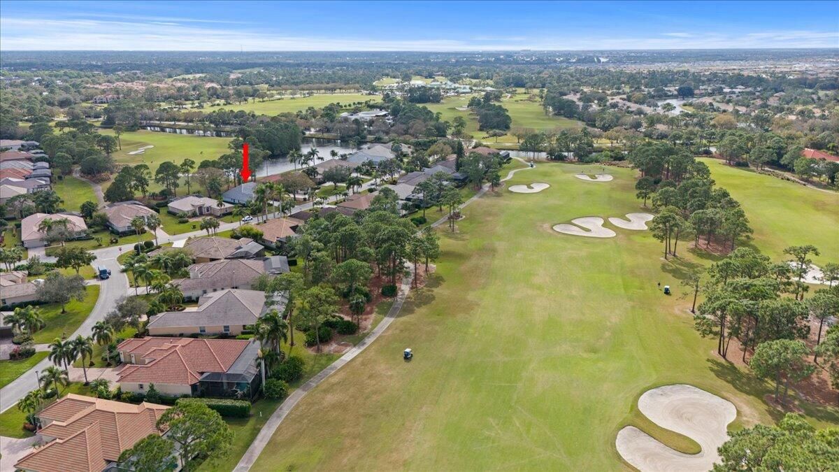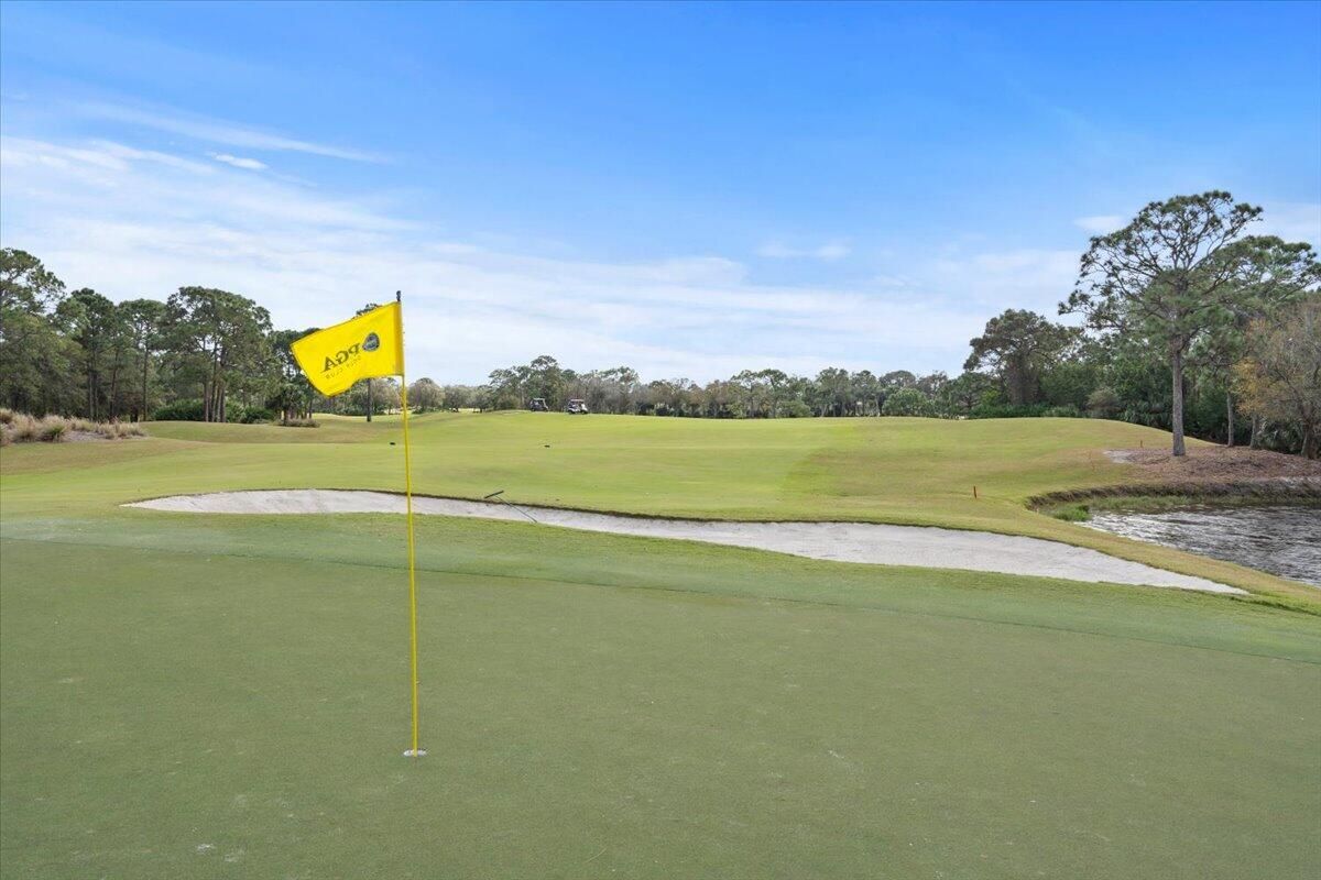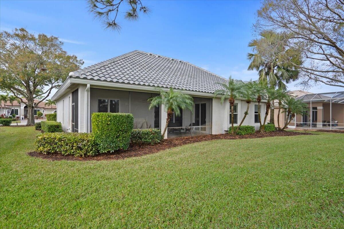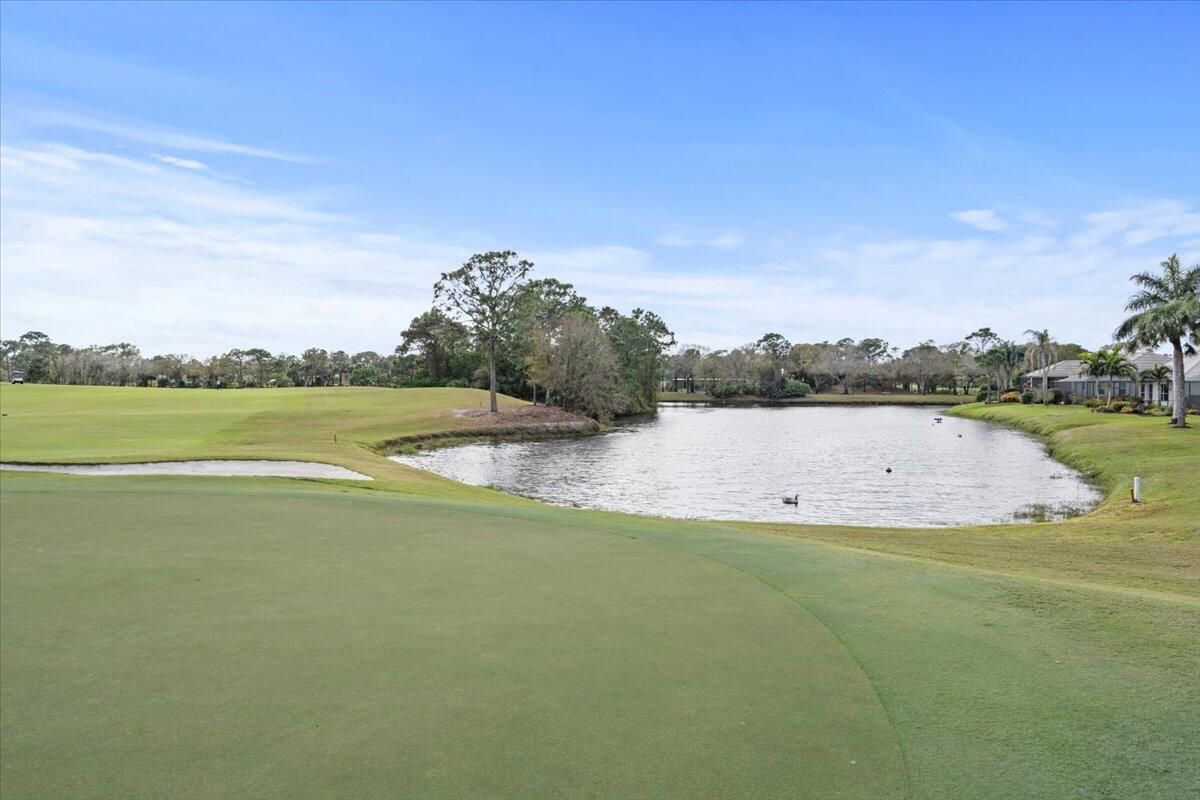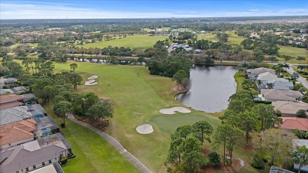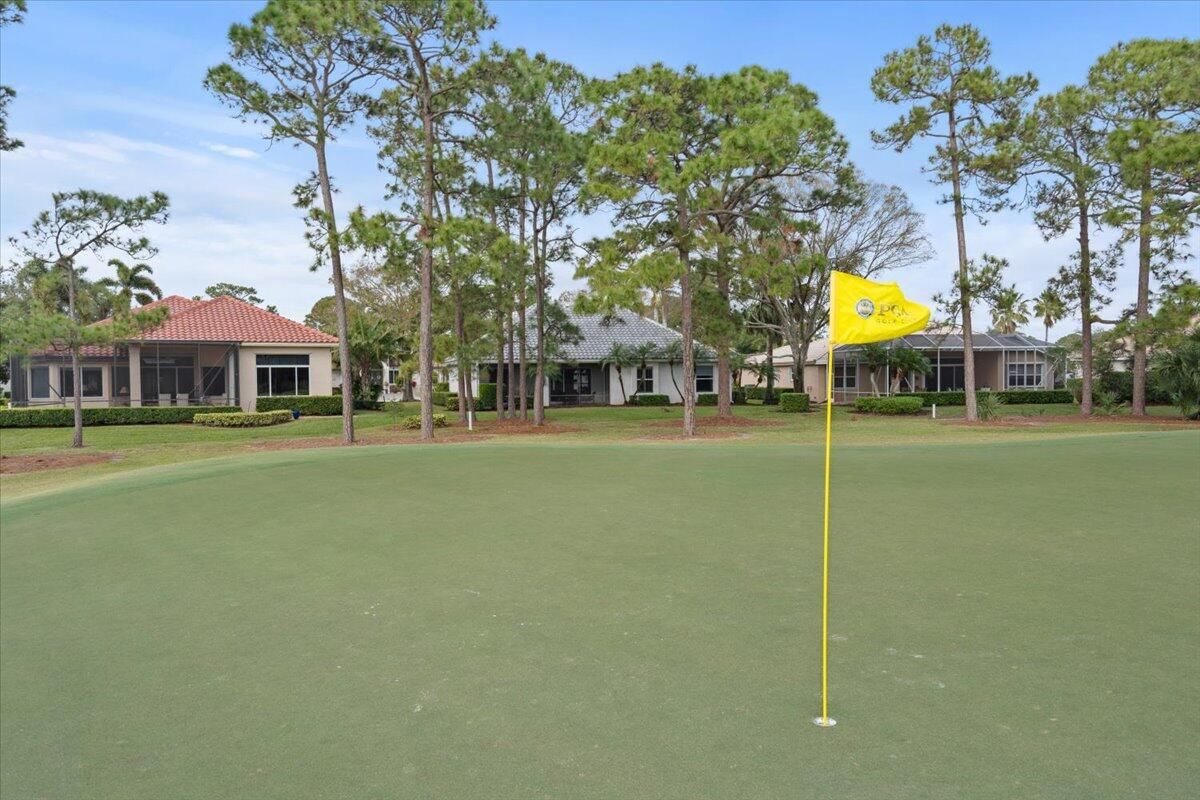 Awesome views of the 11th hole of the PGA Ryder course. This three bedroom two bath home features a brand NEW roof, impact glass windows, and doors, and a NEW garage door. The kitchen features granite counters and cherry cabinetry. Tile in the kitchen and baths and wood in the great room. **The exterior is scheduled to be painted within the next week. HOA Fees include access to the beautiful Island Club offering tennis, pickleball, basketball,fitness center, play area, grand ballroom, library, billiards room, card & craft rooms, resort style pool & many different clubs & activities. PGA Village boast 3 famous golf courses and the private Legacy golf and tennis club.PGA Village living includes majestic preserve settings where taking a walk or riding your bike