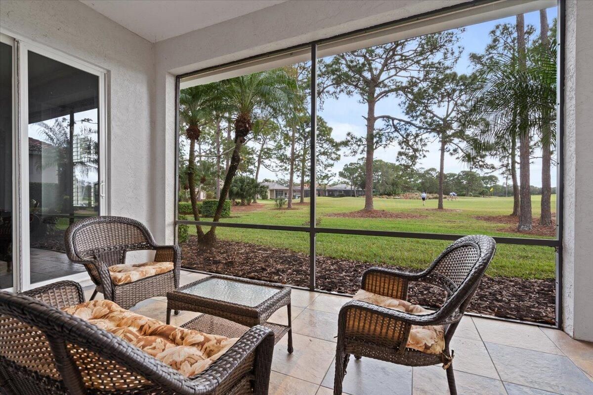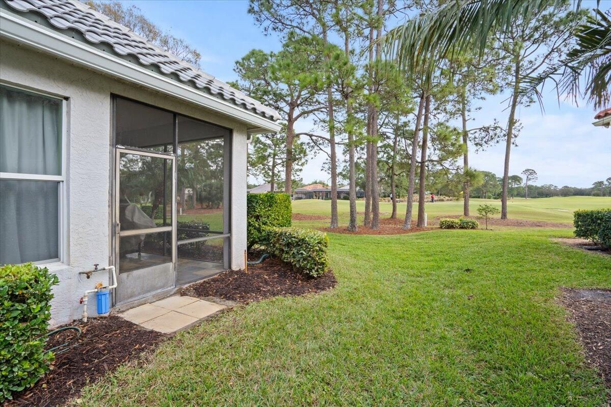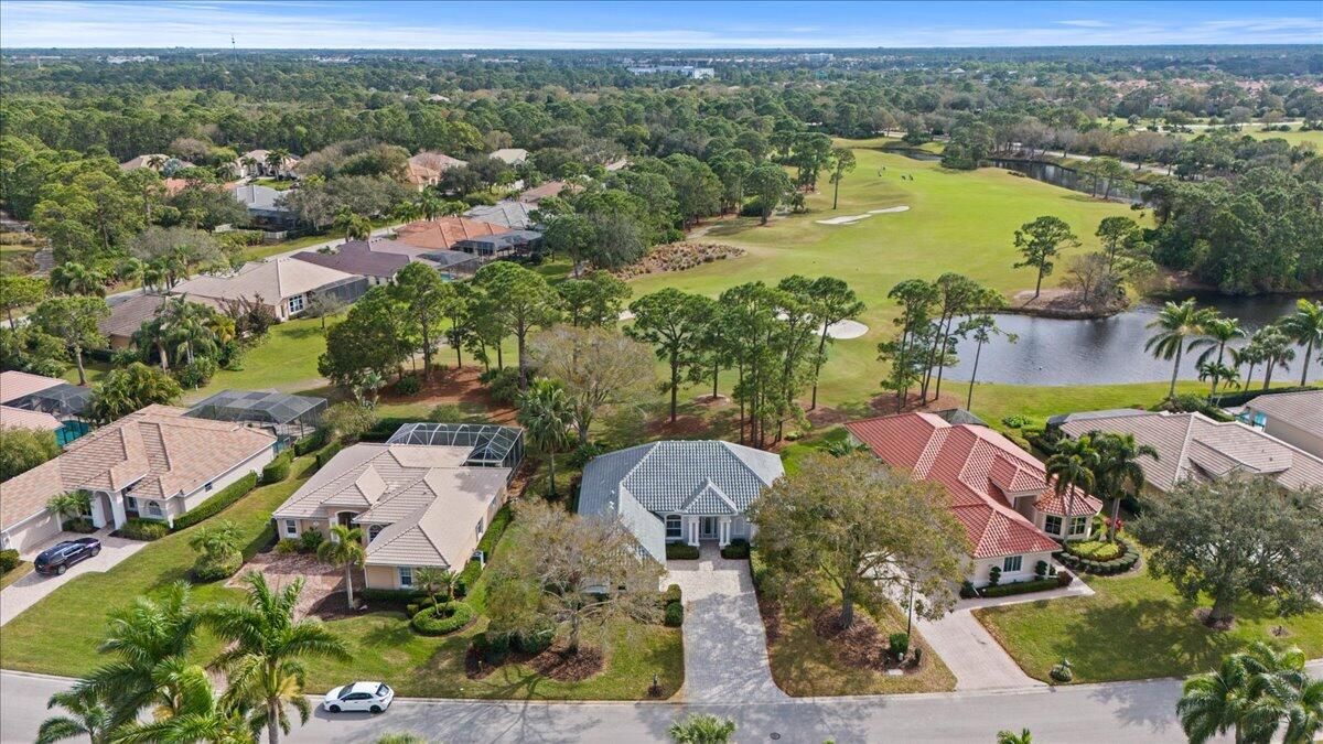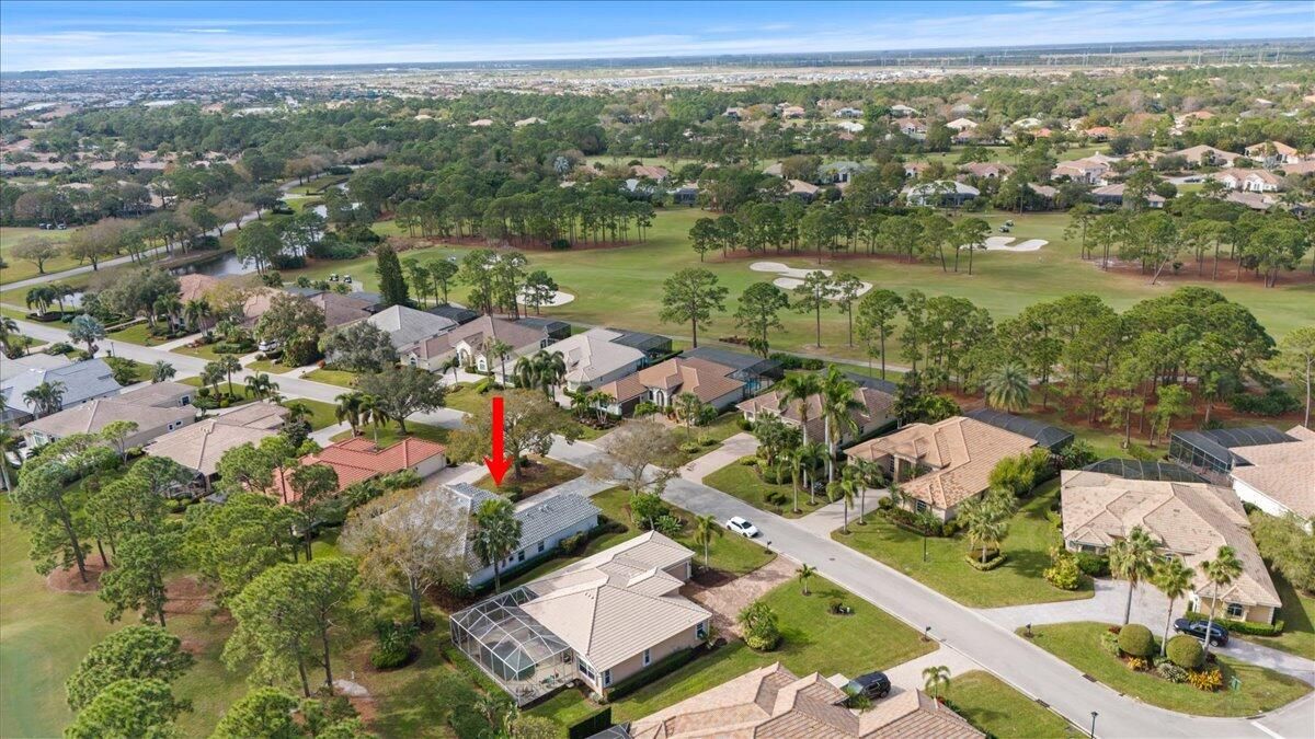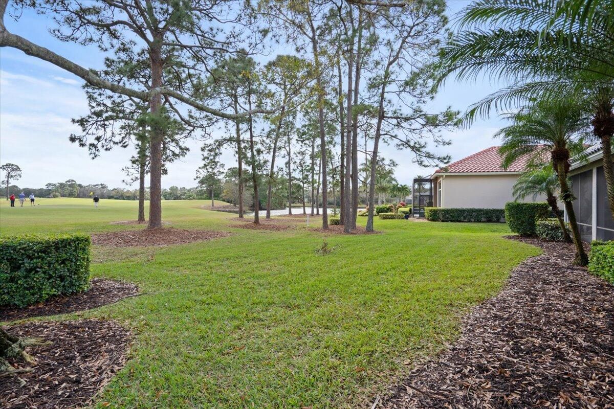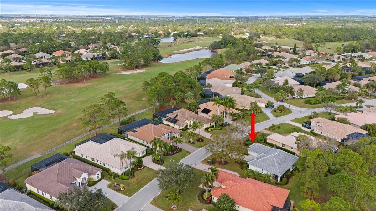 Awesome views of the 11th hole of the PGA Ryder course. This three bedroom two bath home features a brand NEW roof, impact glass windows, and doors, and a NEW garage door. The kitchen features granite counters and cherry cabinetry. Tile in the kitchen and baths and wood in the great room. **The exterior is scheduled to be painted within the next week. HOA Fees include access to the beautiful Island Club offering tennis, pickleball, basketball,fitness center, play area, grand ballroom, library, billiards room, card & craft rooms, resort style pool & many different clubs & activities. PGA Village boast 3 famous golf courses and the private Legacy golf and tennis club.PGA Village living includes majestic preserve settings where taking a walk or riding your bike