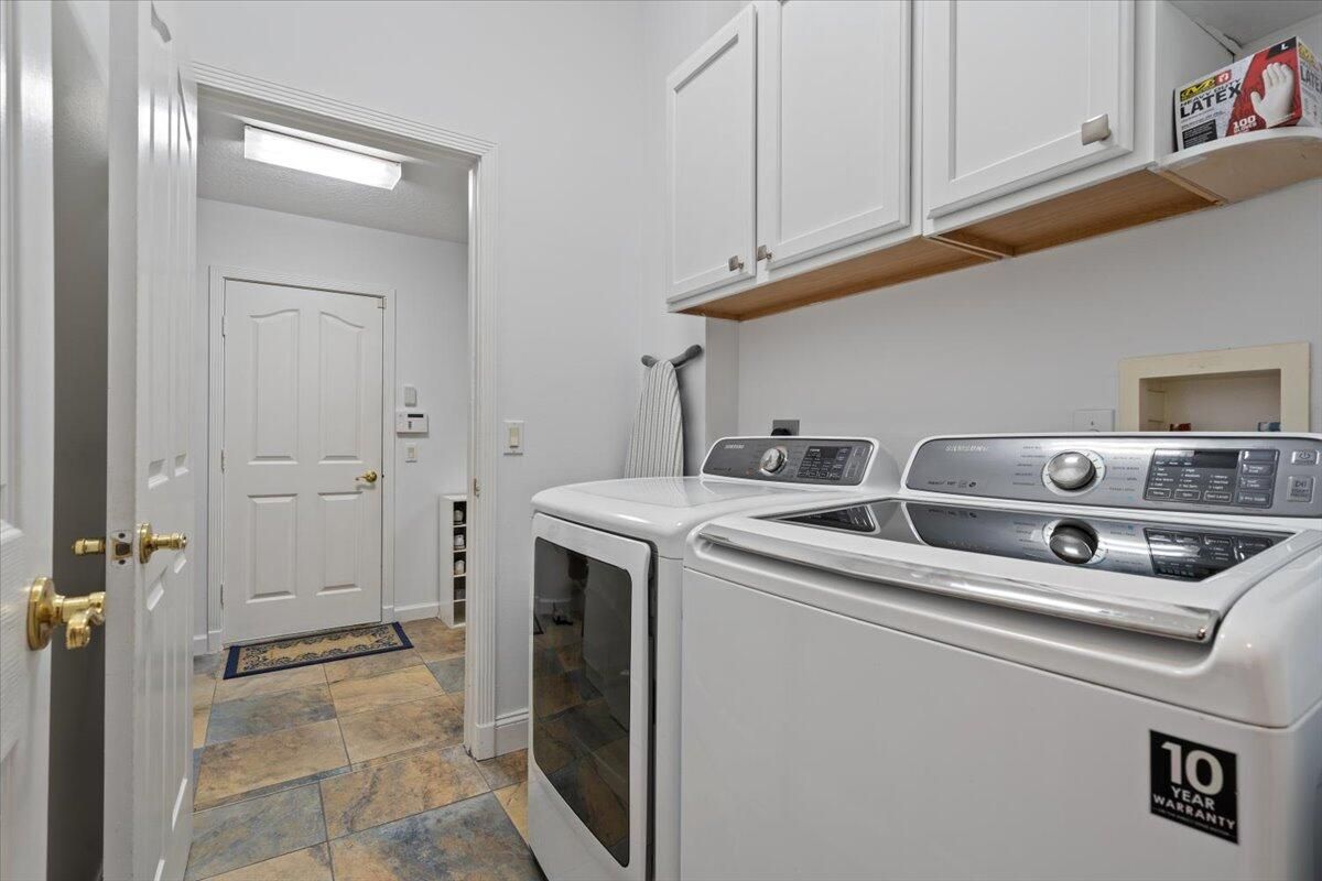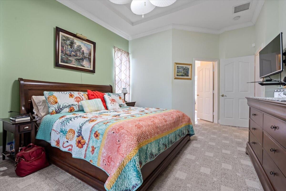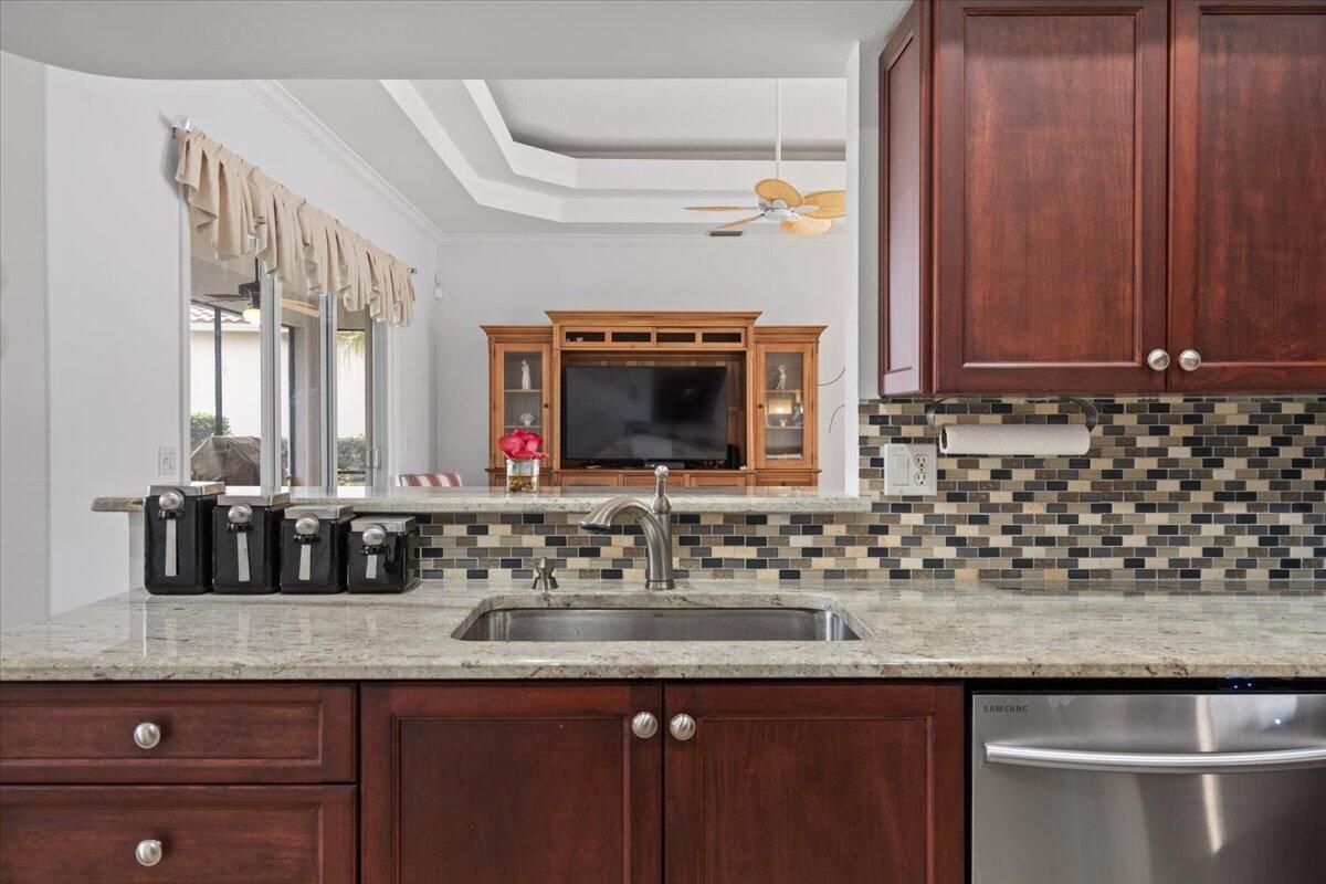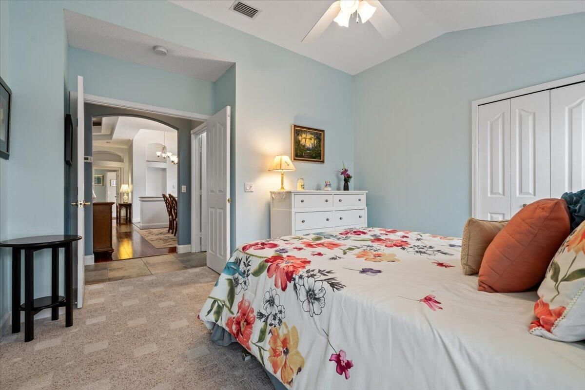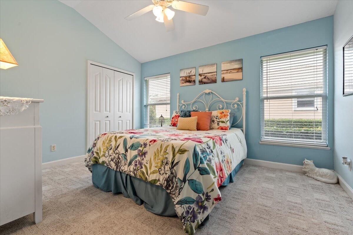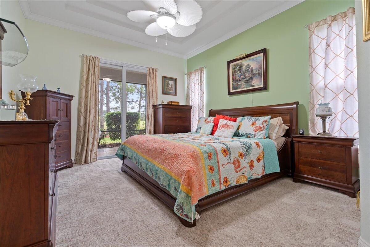Awesome views of the 11th hole of the PGA Ryder course. This three bedroom two bath home features a brand NEW roof, impact glass windows, and doors, and a NEW garage door. The kitchen features granite counters and cherry cabinetry. Tile in the kitchen and baths and wood in the great room. **The exterior is scheduled to be painted within the next week. HOA Fees include access to the beautiful Island Club offering tennis, pickleball, basketball,fitness center, play area, grand ballroom, library, billiards room, card & craft rooms, resort style pool & many different clubs & activities. PGA Village boast 3 famous golf courses and the private Legacy golf and tennis club.PGA Village living includes majestic preserve settings where taking a walk or riding your bike