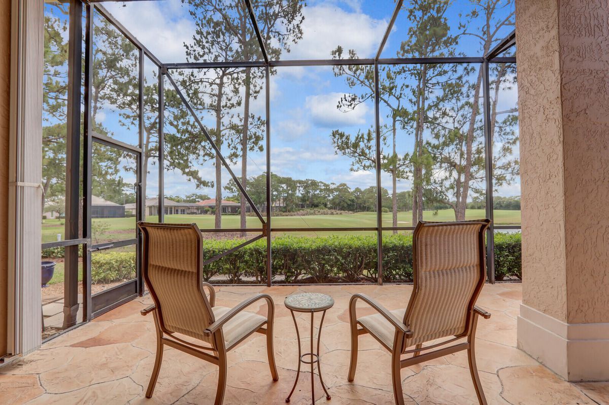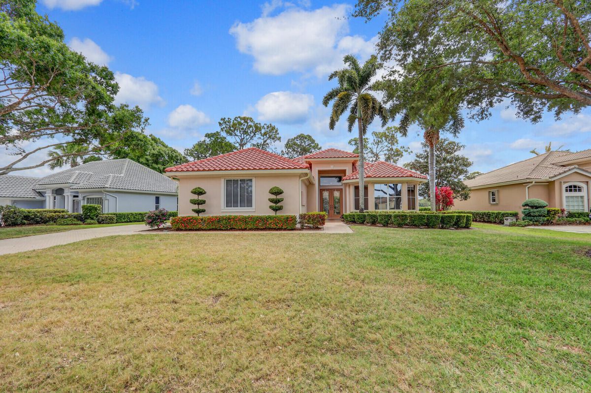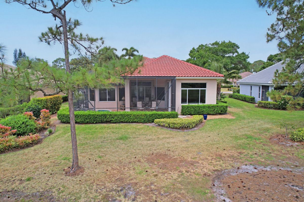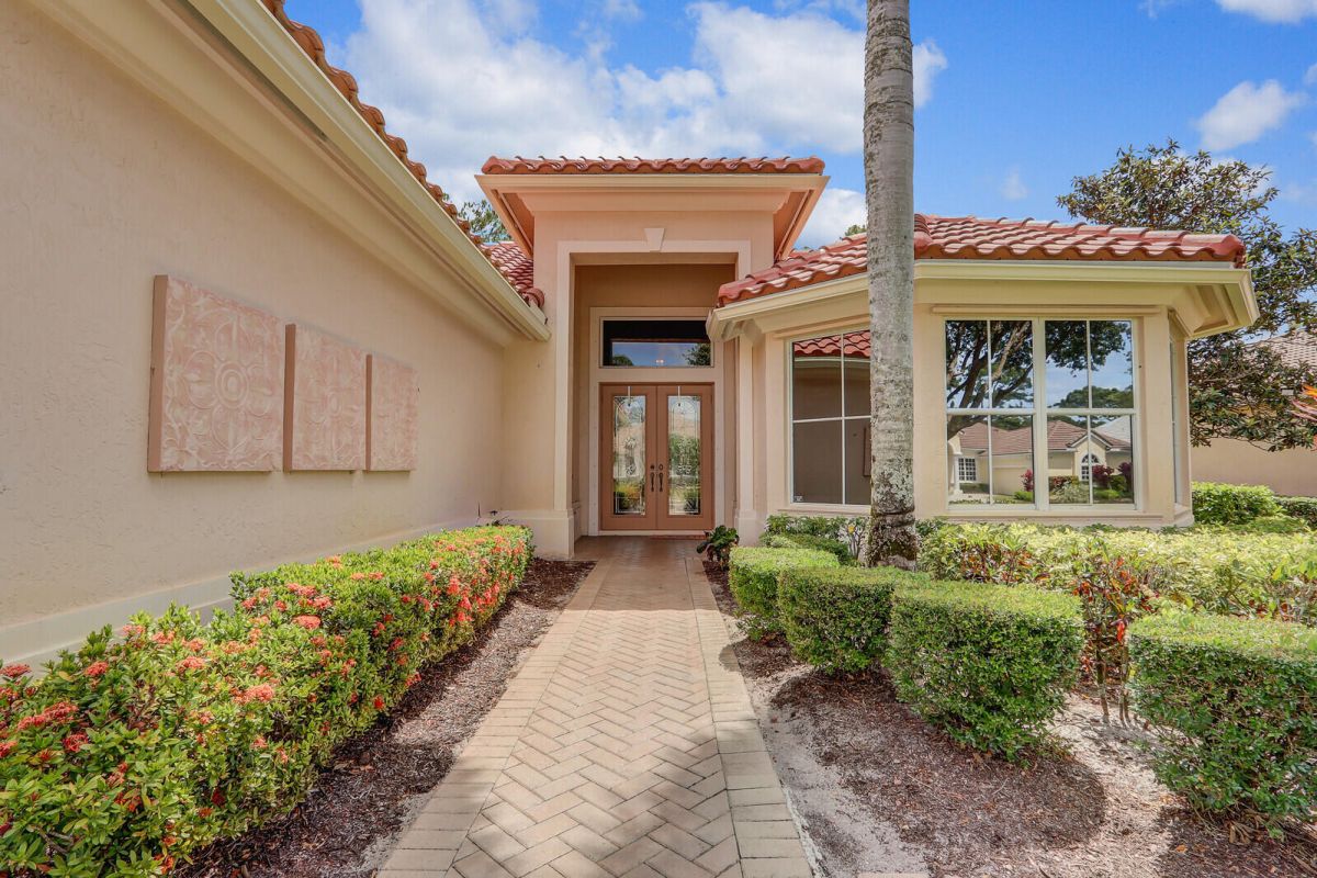 THIS PROPERTY IS A TRUE STANDOUT with an incredible backdrop of sparkling water & lush golf course views! Enjoy resort-style living every day in this beautifully appointed home in the highly sought-after Cypress Point neighborhood in the heart of PGA Village. Meticulously maintained & updated for peace of mind with a new quality roof installed in 2024, newer A/C, water heater, washer/dryer & range along with recently resurfaced inground spa. Inside you will find quality finishes throughout, including porcelain tile flooring, crown molding & a wet bar perfect for entertaining. The spacious extended screened lanai offers a private spa, ample space for outdoor living & room to add a pool. The oversized 2 car garage provides plenty of room for vehicles, a golf cart & includes an electric