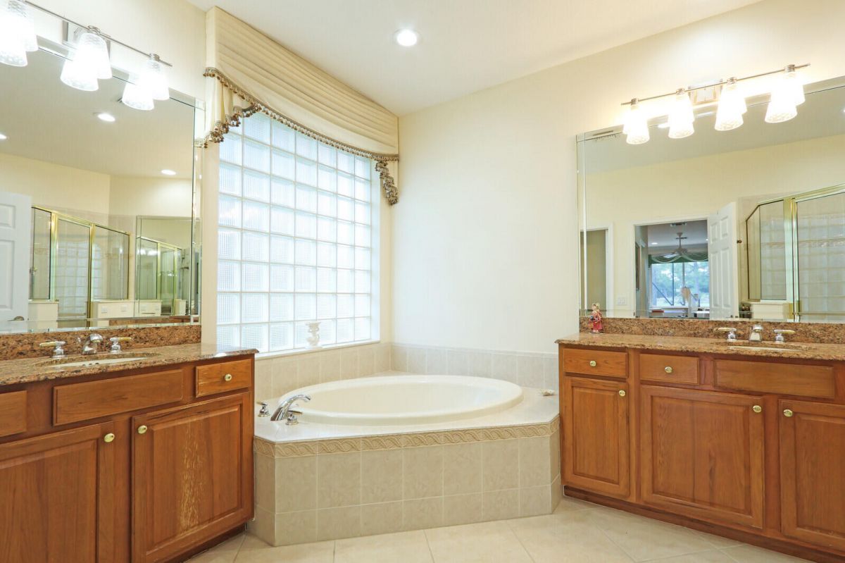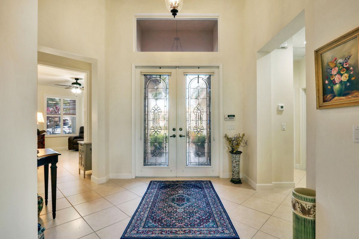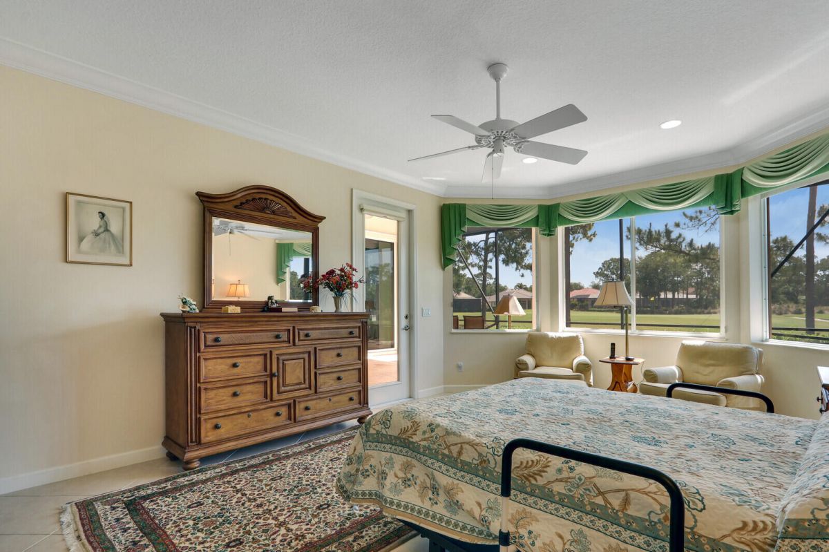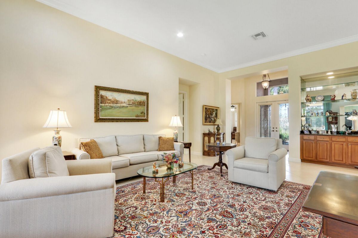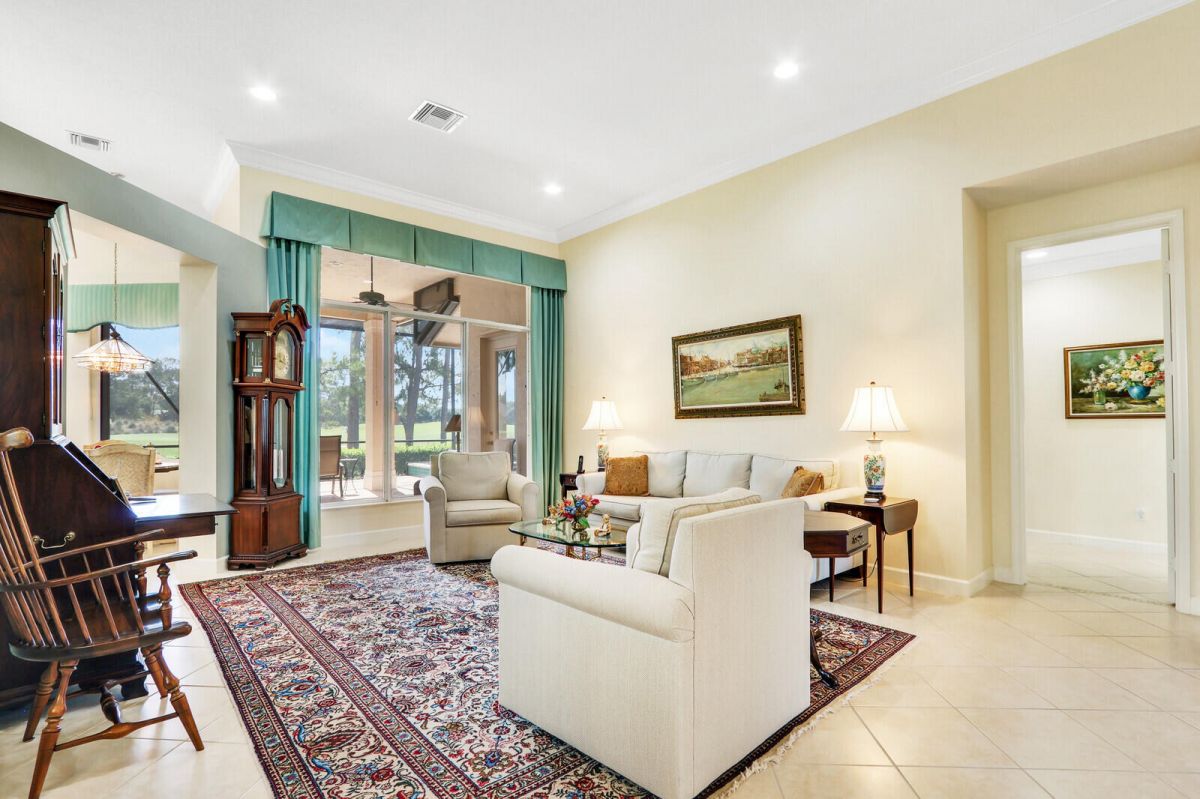 THIS PROPERTY IS A TRUE STANDOUT with an incredible backdrop of sparkling water & lush golf course views! Enjoy resort-style living every day in this beautifully appointed home in the highly sought-after Cypress Point neighborhood in the heart of PGA Village. Meticulously maintained & updated for peace of mind with a new quality roof installed in 2024, newer A/C, water heater, washer/dryer & range along with recently resurfaced inground spa. Inside you will find quality finishes throughout, including porcelain tile flooring, crown molding & a wet bar perfect for entertaining. The spacious extended screened lanai offers a private spa, ample space for outdoor living & room to add a pool. The oversized 2 car garage provides plenty of room for vehicles, a golf cart & includes an electric
