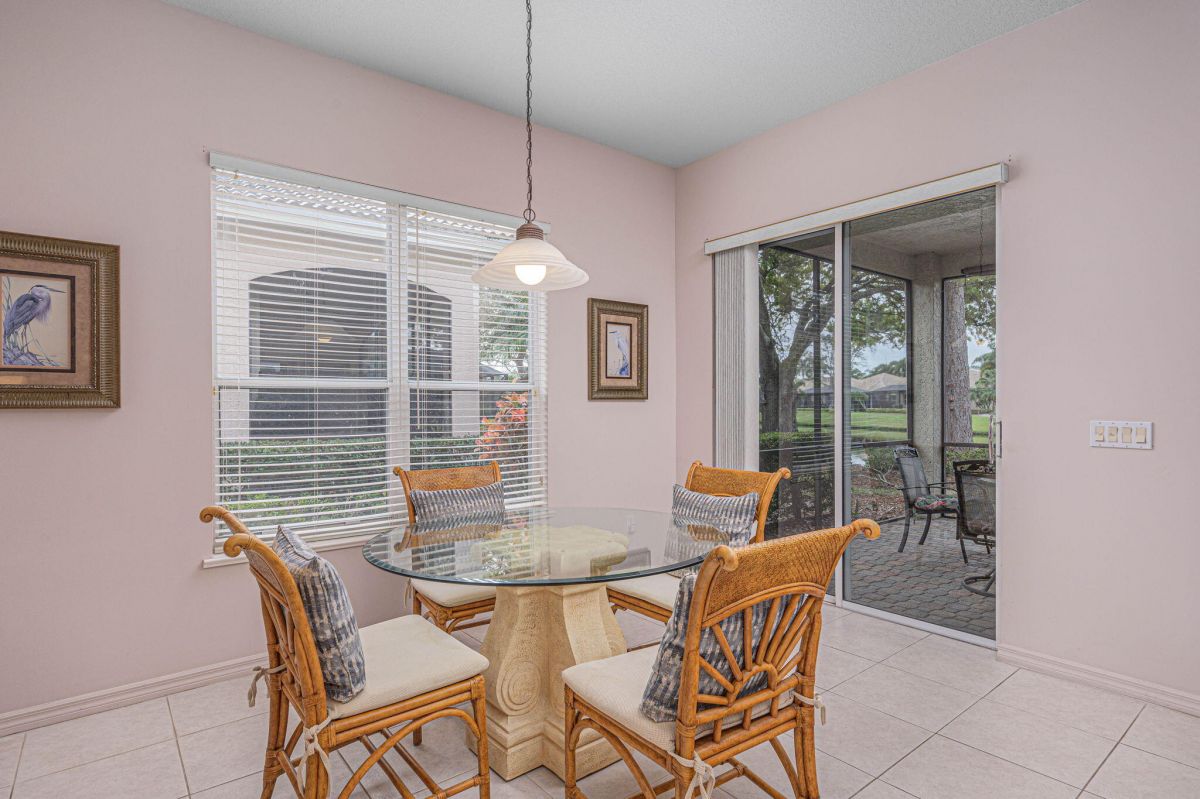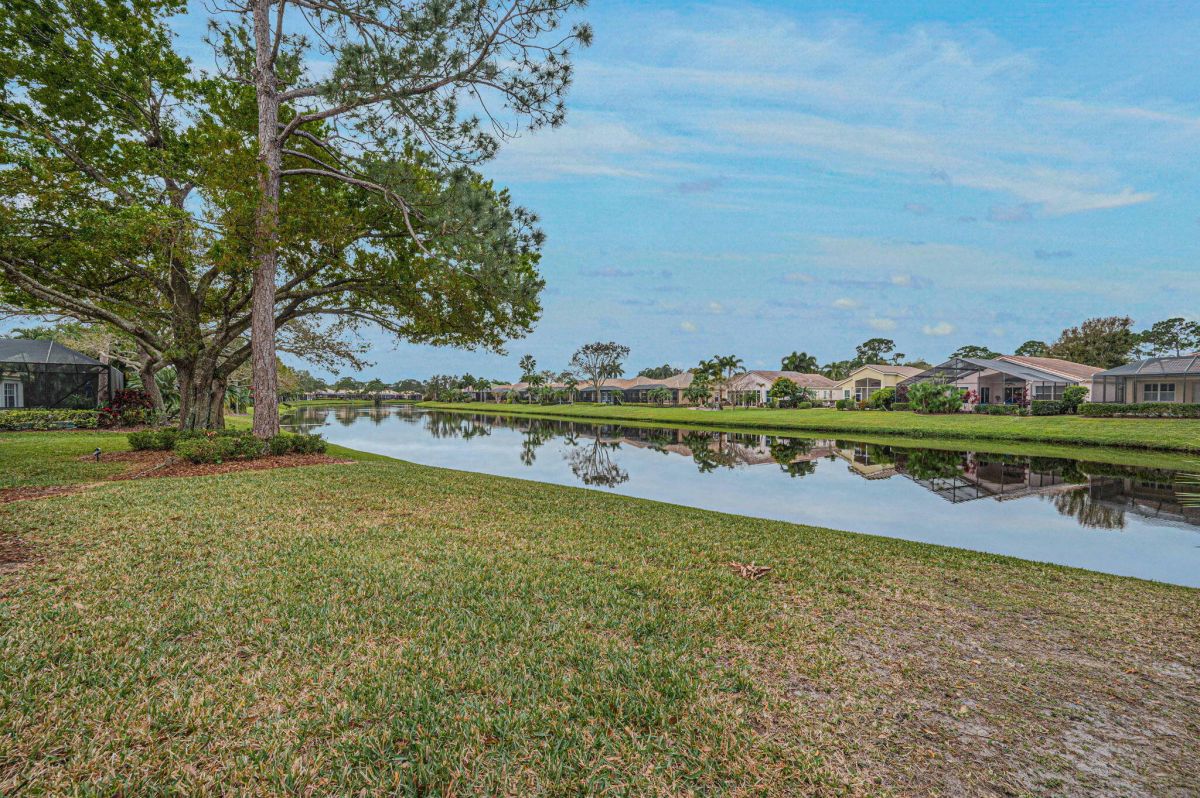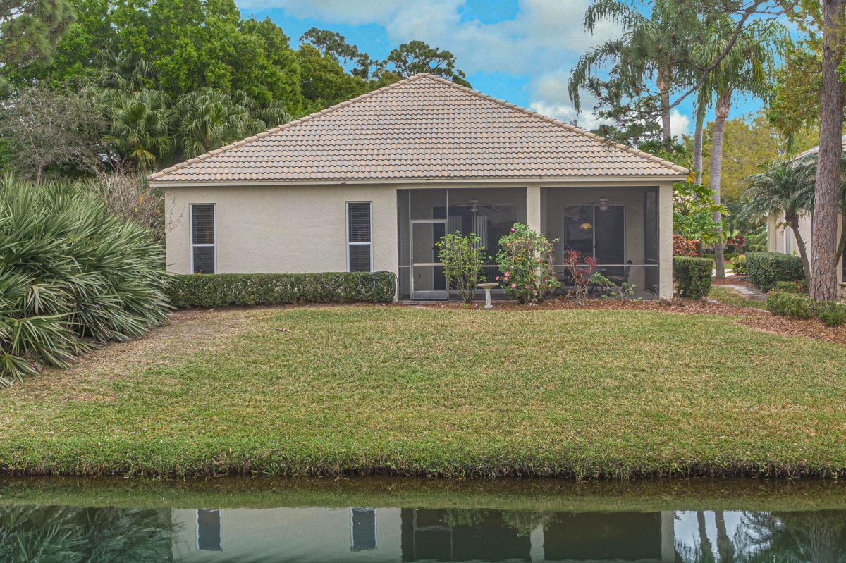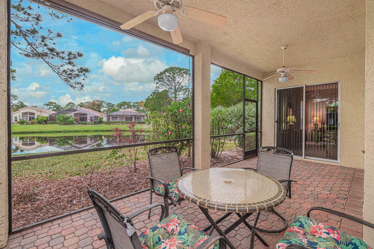 ATTENTION BUYERS AND INVESTORS! Just reduced, this light and airy 2/2.5/2 with den home in PGA Village's Oak Hill is a must-see! All furniture is included. Open-concept plan allows easy entertaining. Each bedroom has an en suite, and there's a half-bath, too! Enjoy serene water views from the 22' X 14' covered and screened lanai. Generous primary bedroom has dual walk-in closets, an eyebrow window and access to the patio. 12-foot ceilings in the living room and 10-foot ceilings elsewhere are enhanced with arched windows. Private corner lot! Live in a golf course community without a membership requirement. Newer A/C and WH, county-only taxes, too! The Island Club has indoor and outdoor activities for the whole family. Easy access for commuting, and nearby shopping and dining is plentiful!