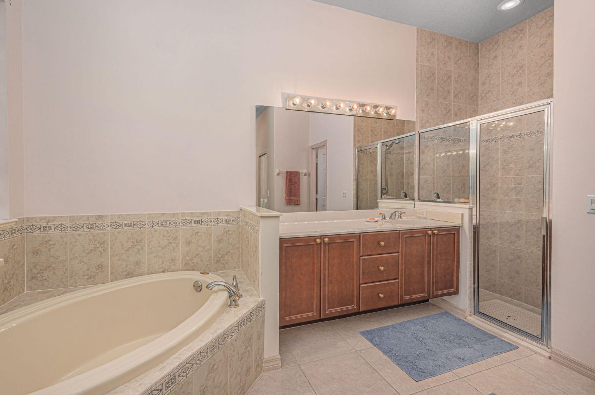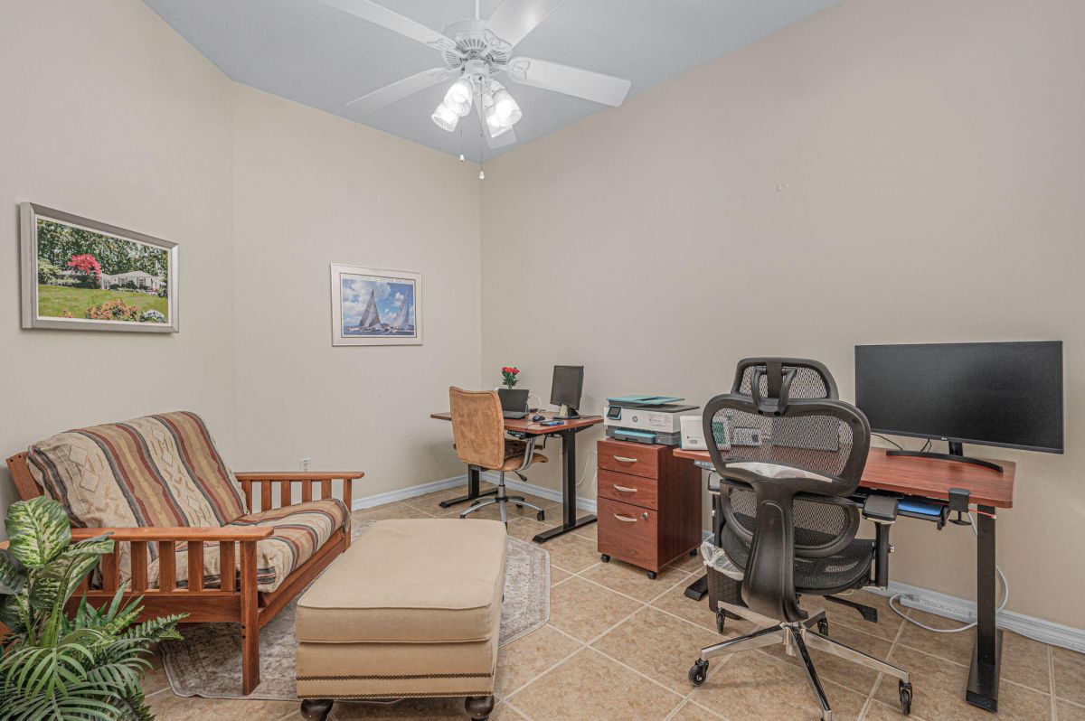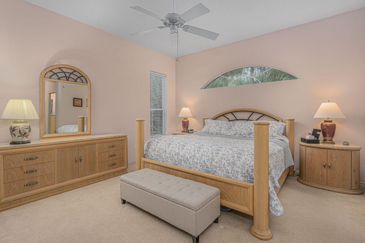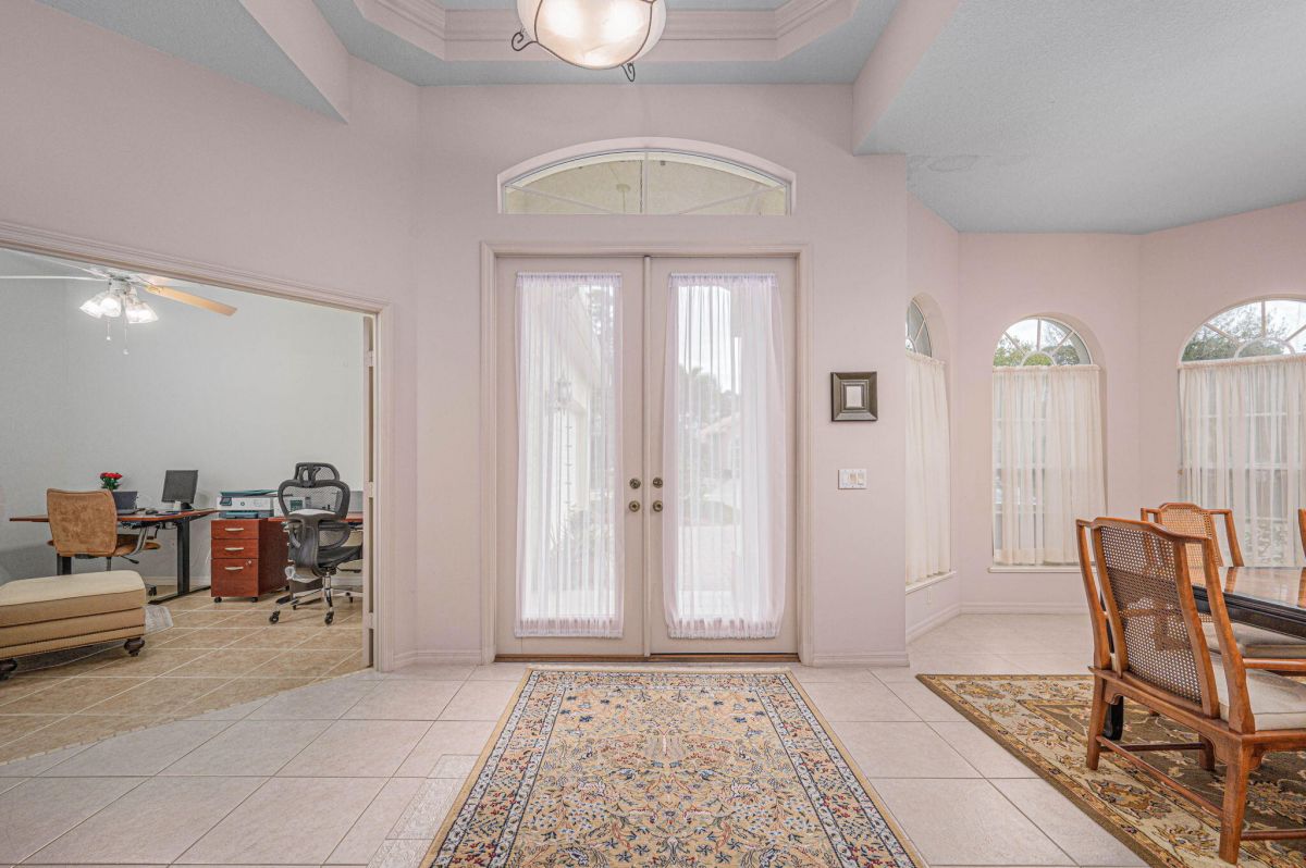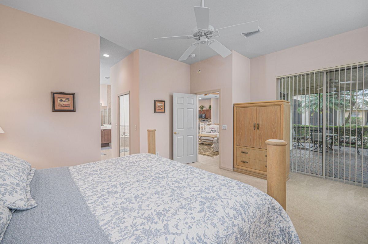 ATTENTION BUYERS AND INVESTORS! Just reduced, this light and airy 2/2.5/2 with den home in PGA Village's Oak Hill is a must-see! All furniture is included. Open-concept plan allows easy entertaining. Each bedroom has an en suite, and there's a half-bath, too! Enjoy serene water views from the 22' X 14' covered and screened lanai. Generous primary bedroom has dual walk-in closets, an eyebrow window and access to the patio. 12-foot ceilings in the living room and 10-foot ceilings elsewhere are enhanced with arched windows. Private corner lot! Live in a golf course community without a membership requirement. Newer A/C and WH, county-only taxes, too! The Island Club has indoor and outdoor activities for the whole family. Easy access for commuting, and nearby shopping and dining is plentiful!