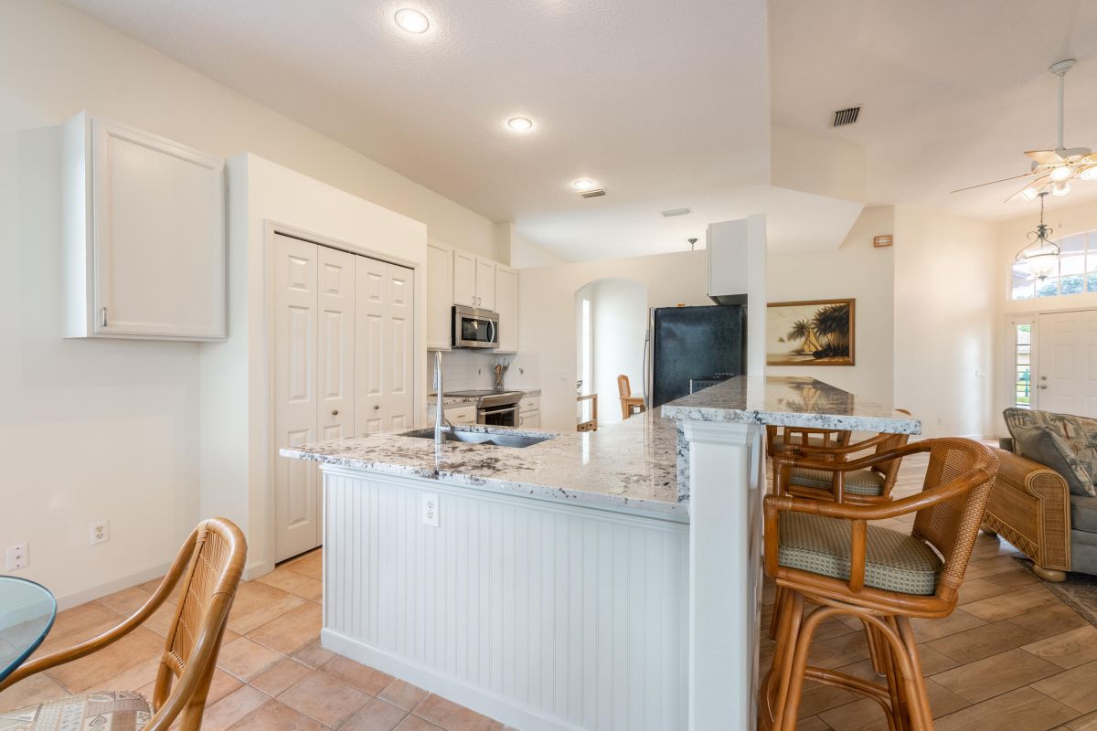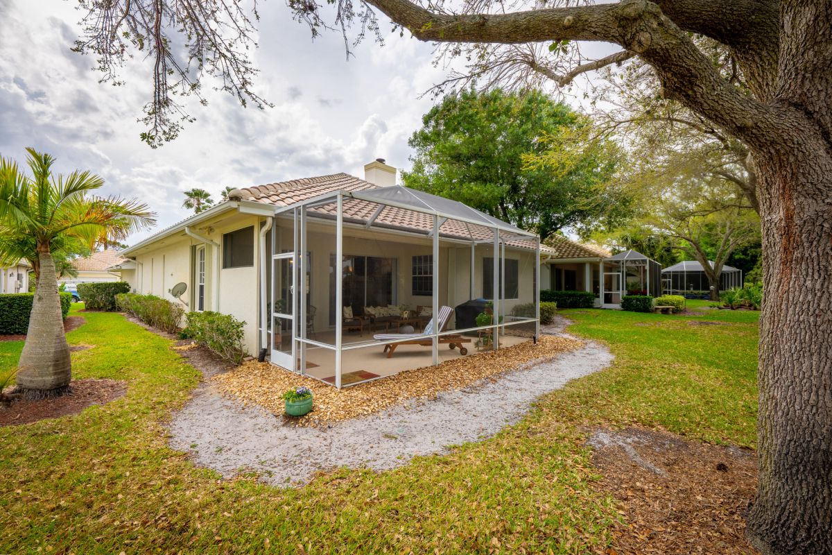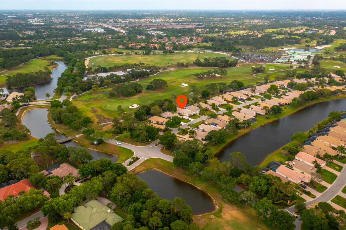 If golf is on the wish list this is the home to complete your dream! This stunning 2 bedroom, 2 bath home with den is nestled on a lot with an excellent view of the first hole of the Ryder Course in the beautiful community of PGA Village. Upon entering you will notice the living area features tall ceilings with great natural light with great views. The home also features a newly updated bright white kitchen kitchen with stone countertops, a stunning white fireplace, and beautiful wood look tile. An interior designer's dream. Schedule a private tour!