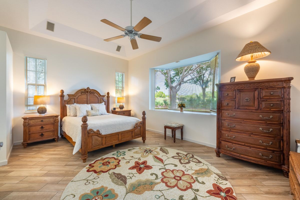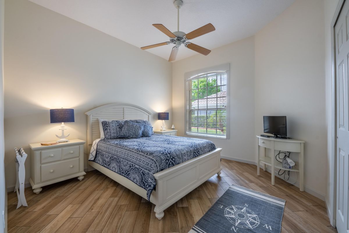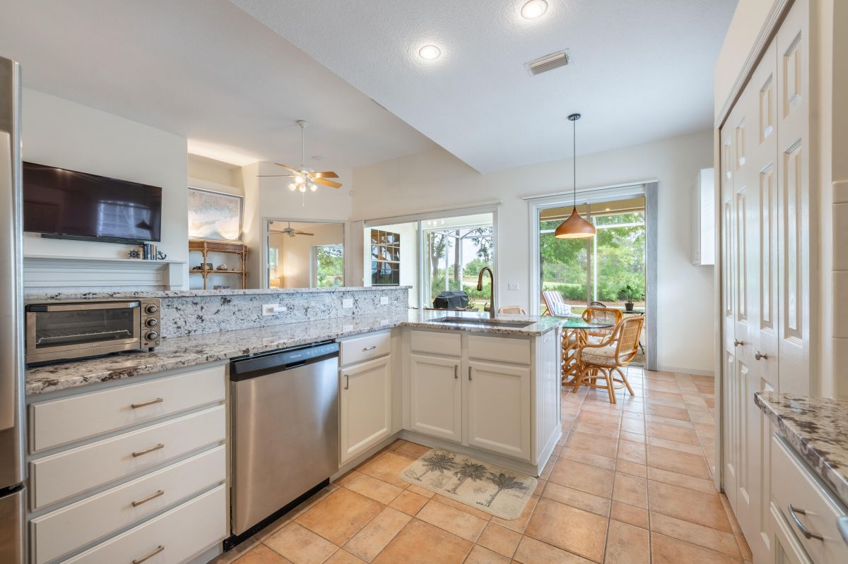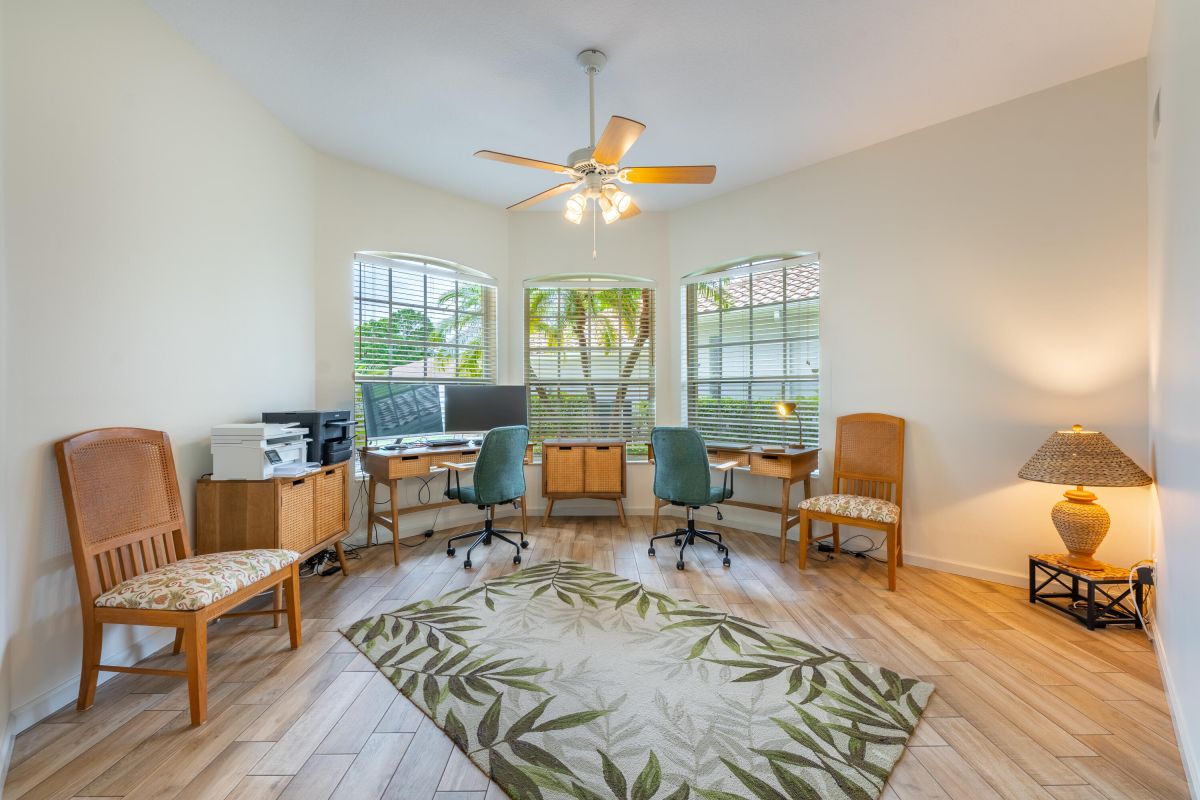 If golf is on the wish list this is the home to complete your dream! This stunning 2 bedroom, 2 bath home with den is nestled on a lot with an excellent view of the first hole of the Ryder Course in the beautiful community of PGA Village. Upon entering you will notice the living area features tall ceilings with great natural light with great views. The home also features a newly updated bright white kitchen kitchen with stone countertops, a stunning white fireplace, and beautiful wood look tile. An interior designer's dream. Schedule a private tour!