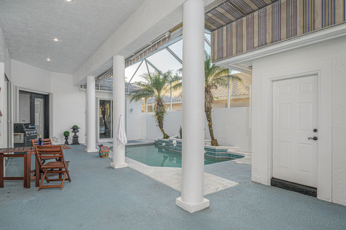 Magical sunsets are on display nIghtly at this waterfront oasis. This private retreat is packed with value, from the new A/C to the 2014 roof, newer pool pump, plus accordion shutters and whole-house generator. Yet value doesn't come at the expense of style. Embrace outdoor living in the courtyard, ideal for relaxing or al fresco dining poolside. The layout allows ample natural light into the home. Three bedrooms and three full baths are a haven for rejuvenation. Prepare delicious meals in the well-equipped kitchen. Enjoy the benefits of living in a golf course community without a membership requirement. The Island Club provides indoor and outdoor activities for the whole family. Easy access to major highways makes commuting a breeze, and nearby shopping is plentiful. Come see!