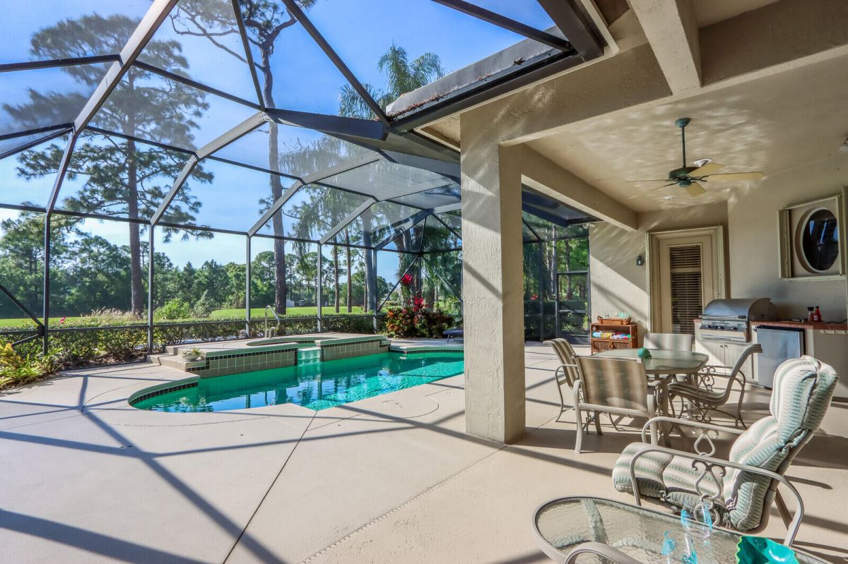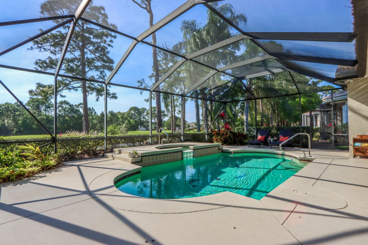 POOL HOME WITH GOLF COURSE VIEW IN THE HEART OF PGA VILLAGE! This property truly offers Florida living at it's finest & the owner's care & pride of ownership are evident in every detail! The view, patio & pool area are perfect for enjoying the spectacular Florida sunsets, entertaining or relaxing after a day on the course. The property speaks for itself! New a/c 2019, new pool pump & brand new aqua-call pool & spa heater, pool enclosure rescreened in 2017, new washer & dryer & whole house accordion shutters. Perfectly located close to the PGA Golf Club & it's 3 world class championship golf courses & The Legacy Golf & Tennis Club, close to the gate, away from the I-95 & a short ride to the Island Club with pool, fitness, tennis, pickle ball & a full calendar of activities! ACT FAST!!!