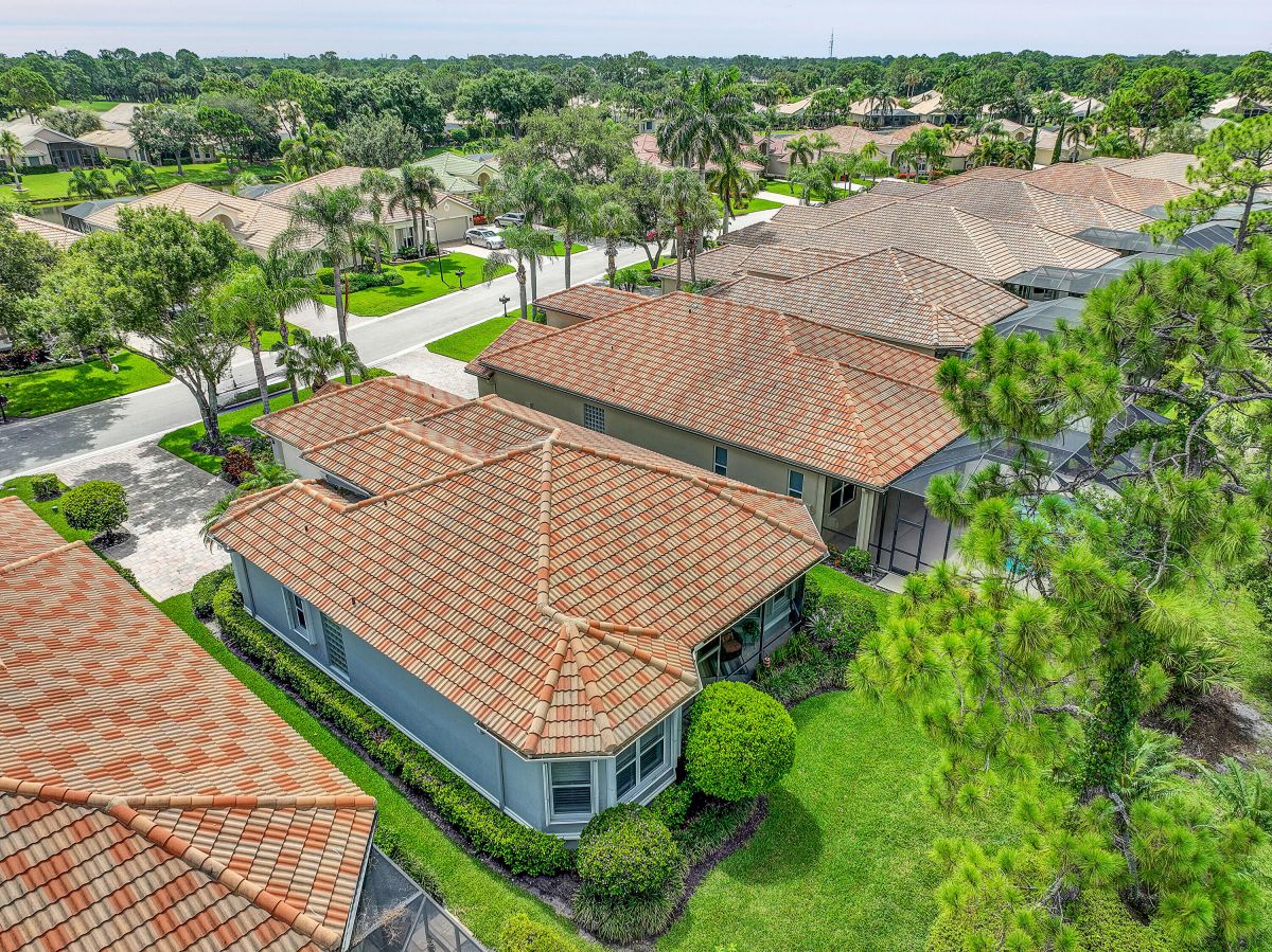 MUIRFIELD NEIGHBORHOOD IN THE HEART OF PGA VILLAGE, just a stone's throw away from PGA driving range, and 3 world class championship golf courses. In addition, within the community the Private Legacy Golf & Tennis Club is a short golf cart ride. To enjoy your resort style home even more, the Island Club offers a fabulous pool, fitness center, exercise room for yoga, a library, billiards, game rooms, and so much more. This move in ready home has a great floor plan with...* bright kitchen with 42'' white cabinets, stainless appliances & adjacent breakfast nook, an extra-large primary bedroom with 2 walk-in closets and an ensuite with 2 sinks, a walk-in shower & soaking tub; *an office/den with built-in cabinets & desks; *a comfortable living room with tray ceiling and sliders leading to l