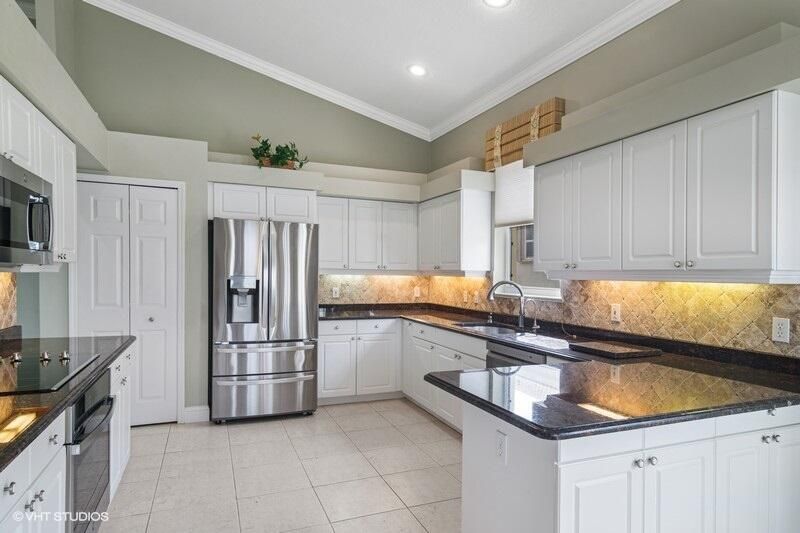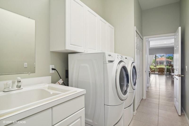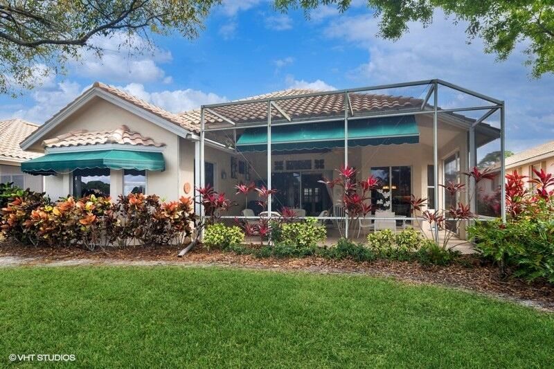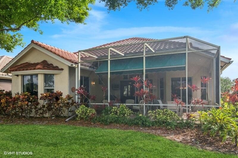TAKE A SECOND LOOK!NEW ROOF & GUTTERS FEB. 2025! NEW SS OVEN, COOK TOP & MICROWAVE FEB. 2025 & NEW LAMINATE FLOORS IN 2 BEDROOMS INSTALLED FEB. 2025. Welcome to this beautiful Sawgrass floor plan located in highly desirable PGA VILLAGE, offering breathtaking lake views and an abundance of space. As you enter, you're greeted by a spacious Living room with adjacent formal dining area & a bright open kitchen featuring stainless steel appliances, sleek granite countertops, a cozy breakfast nook, and a convenient snack bar--perfect for entertaining or enjoying everyday meals. The master suite is a true retreat, with a private sitting area and sliding doors that open to the peaceful covered lanai, where you can unwind while enjoying the serene surroundings. The lanai is enhanced with an