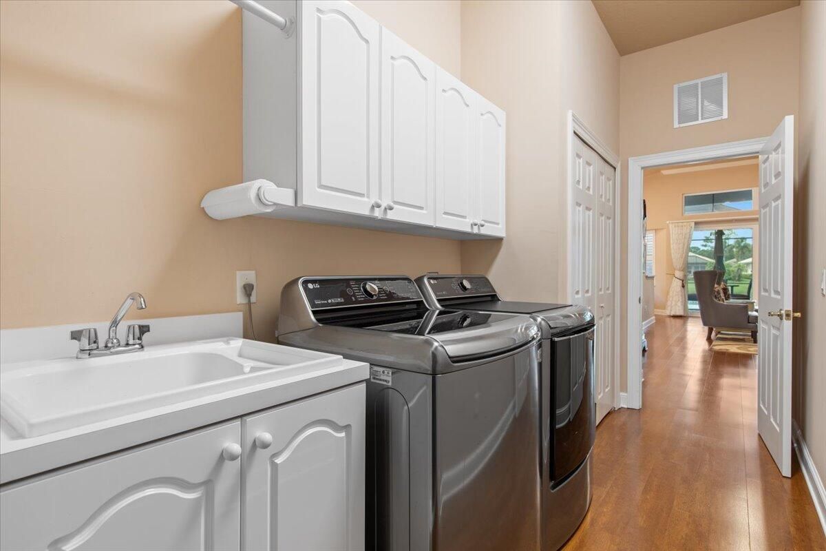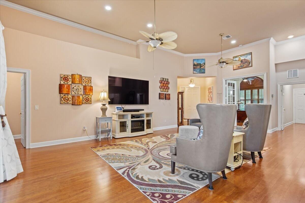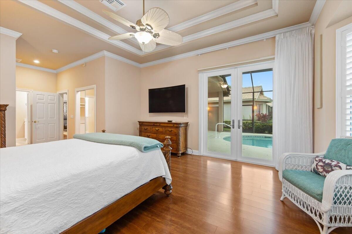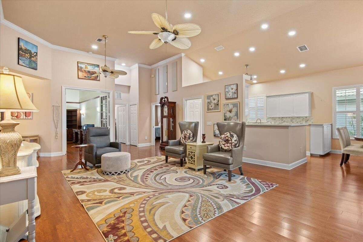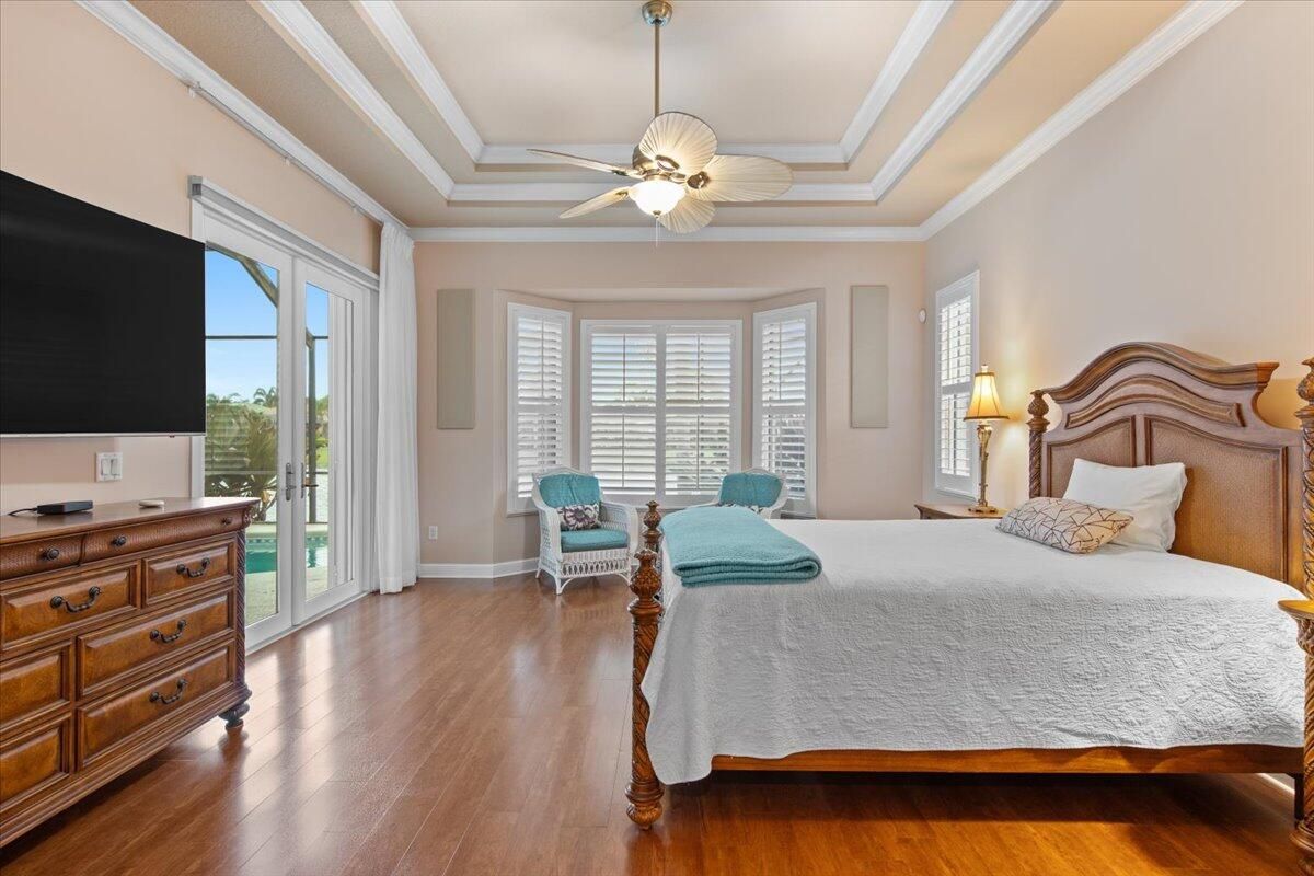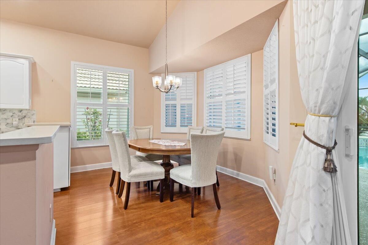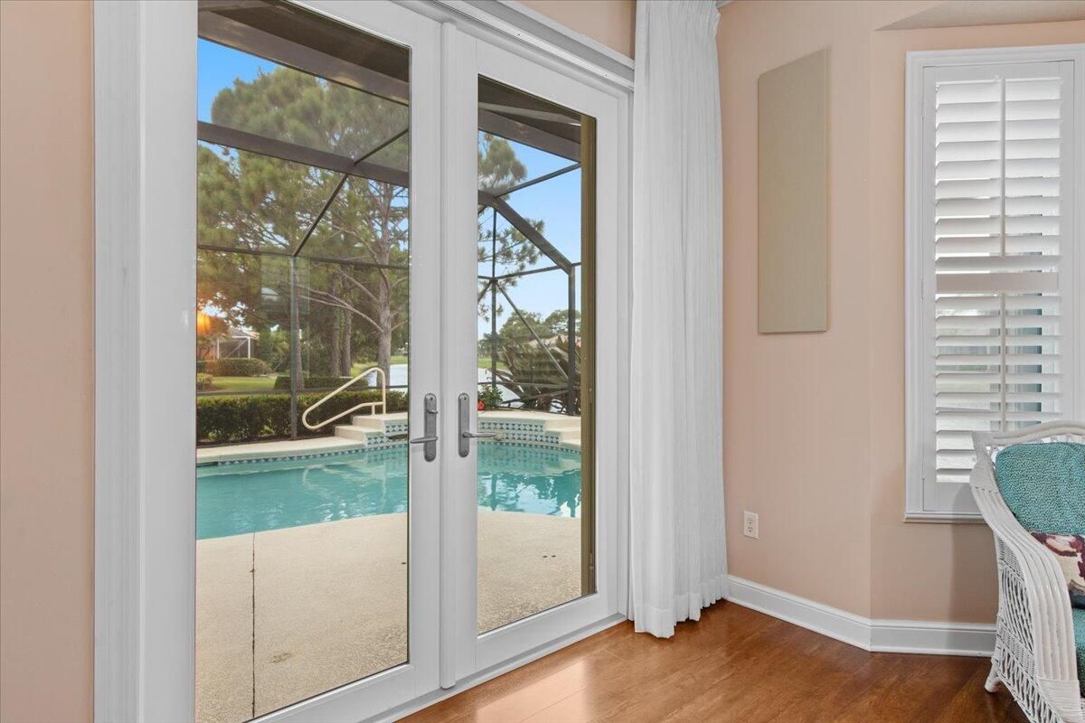 Beautiful Lakefront Home with Stunning Sunset ViewsThis spacious 3-bedroom+ Bonus Room, 2-bathroom home in the desirable Oak Hill area of PGA Village offers breathtaking lakefront sunsets from a large screened lanai, complete with a private heated pool. Enjoy peace of mind with all IMPACT GLASS, a newer A/C system and hot water tank, and an electrical generator hookup. The bright, white kitchen features quartz countertops, a decorative backsplash, and newer upgraded stainless steel appliances, including an induction cooktop--perfect for the happy chef. Crown molding, plantation shutters, and custom-designed closets and pantries add elegance and functionality throughout the home. Enjoy the convenience of a 2.5-CAR GARAGE with storage and parking space. Come take a look!