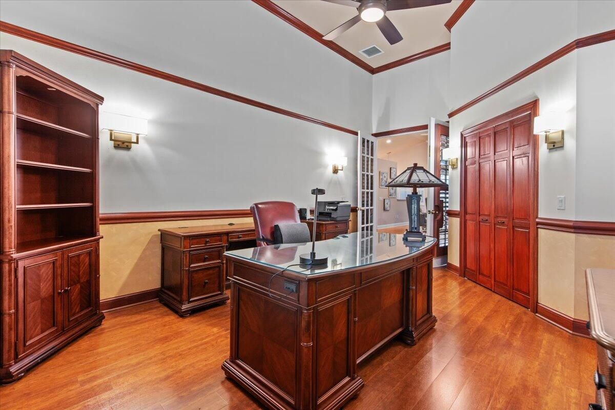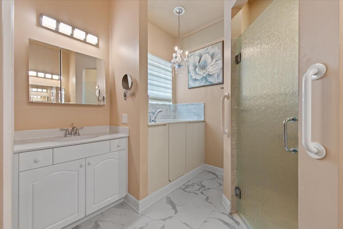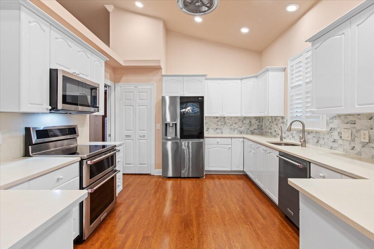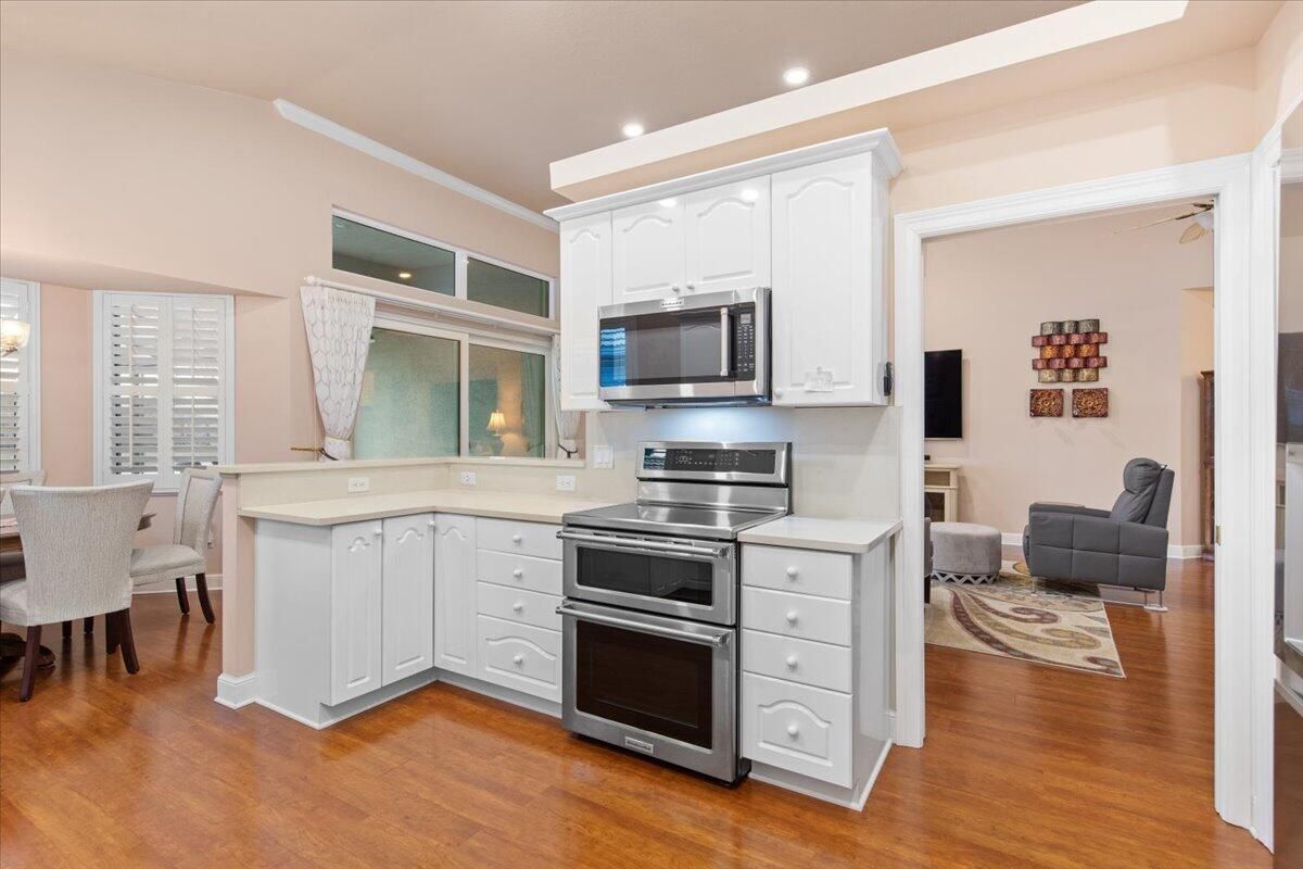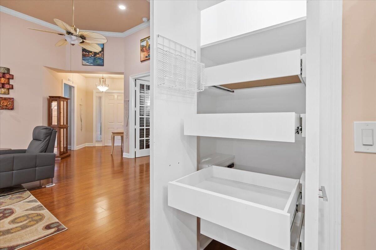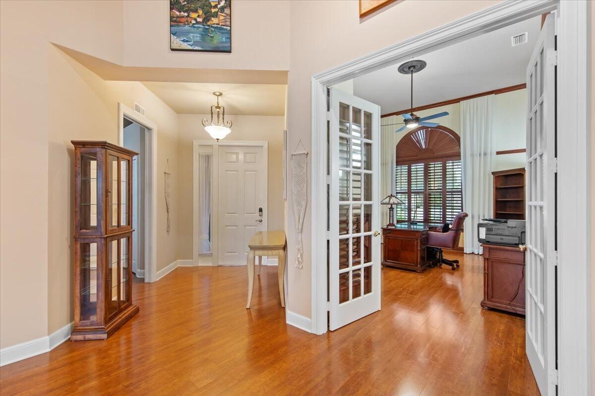 Beautiful Lakefront Home with Stunning Sunset ViewsThis spacious 3-bedroom+ Bonus Room, 2-bathroom home in the desirable Oak Hill area of PGA Village offers breathtaking lakefront sunsets from a large screened lanai, complete with a private heated pool. Enjoy peace of mind with all IMPACT GLASS, a newer A/C system and hot water tank, and an electrical generator hookup. The bright, white kitchen features quartz countertops, a decorative backsplash, and newer upgraded stainless steel appliances, including an induction cooktop--perfect for the happy chef. Crown molding, plantation shutters, and custom-designed closets and pantries add elegance and functionality throughout the home. Enjoy the convenience of a 2.5-CAR GARAGE with storage and parking space. Come take a look!