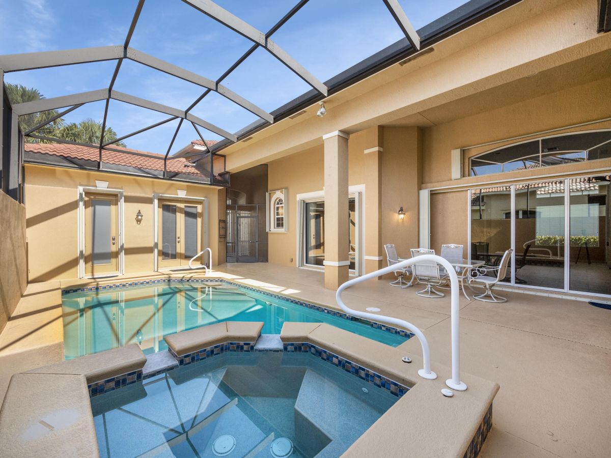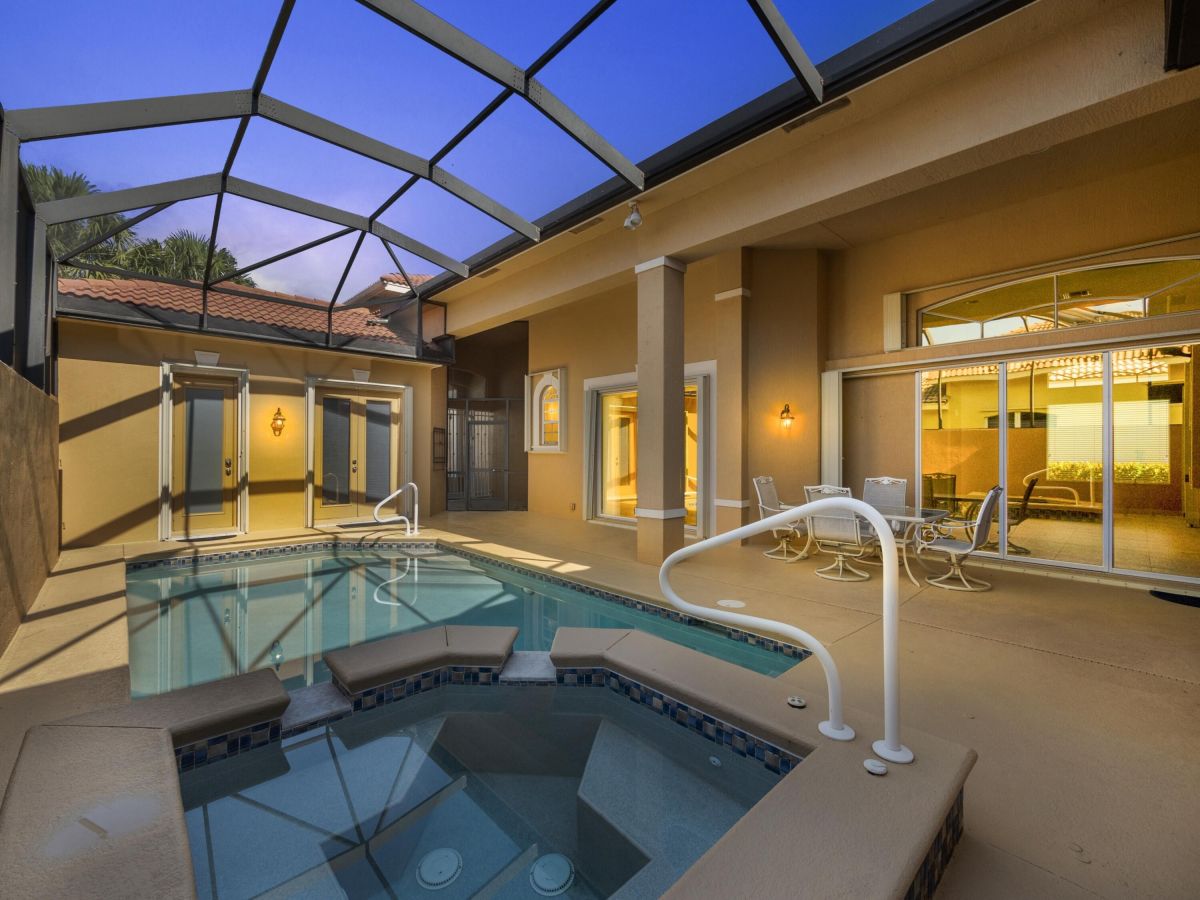 Enjoy courtyard living with this beautiful pool home! Easy access to your pool & spa from almost every room in the house. Sweeping golf & water views! This Breckenridge floor plan features 4 bedrooms with en-suite bathrooms, a formal dining space that opens to a formal living space, and a separate family room off the kitchen, making this the perfect home for entertaining friends and family!! The gourmet kitchen features 42'' upper cabinets, granite countertops, stainless appliances, under cabinet lighting, a breakfast bar and chef island. Whole house generator. PGA Village has 3 Champion Golf courses open to the public and several different golf and social memberships available. Just minutes from St. Lucie West and Tradition, which both feature great dining. shopping, and great recreatio