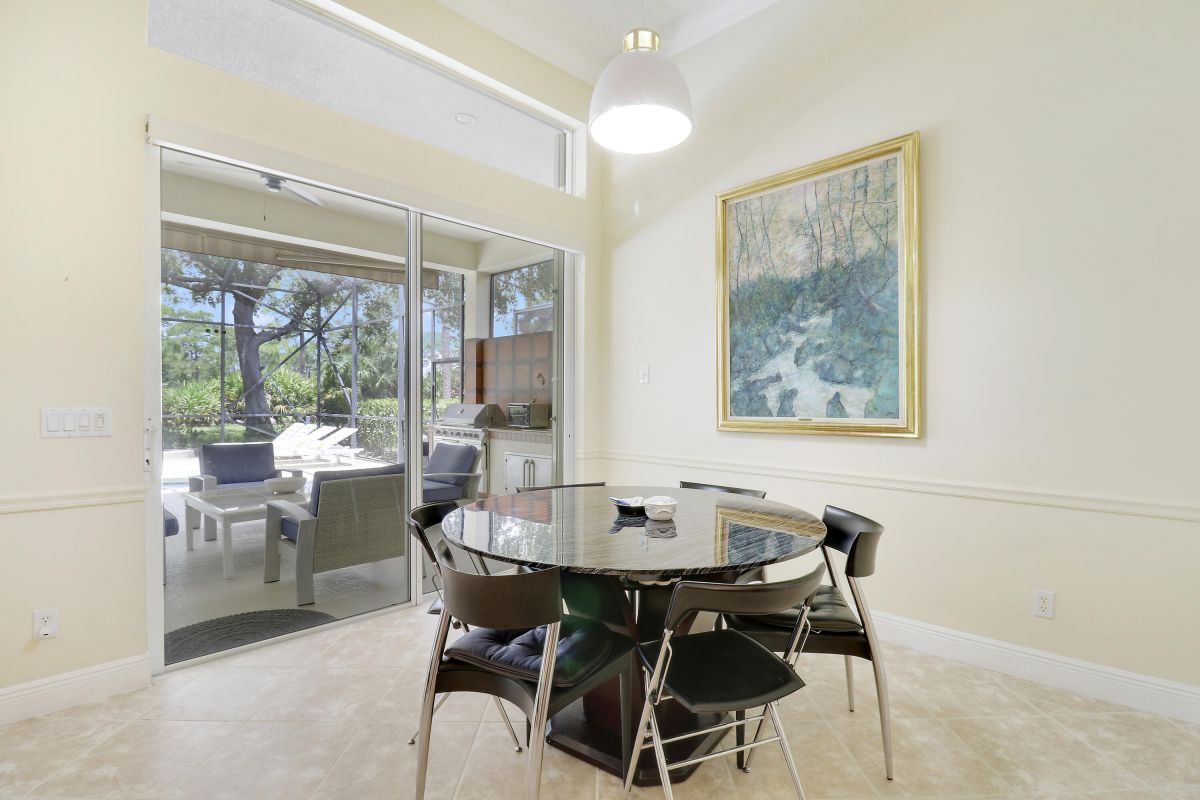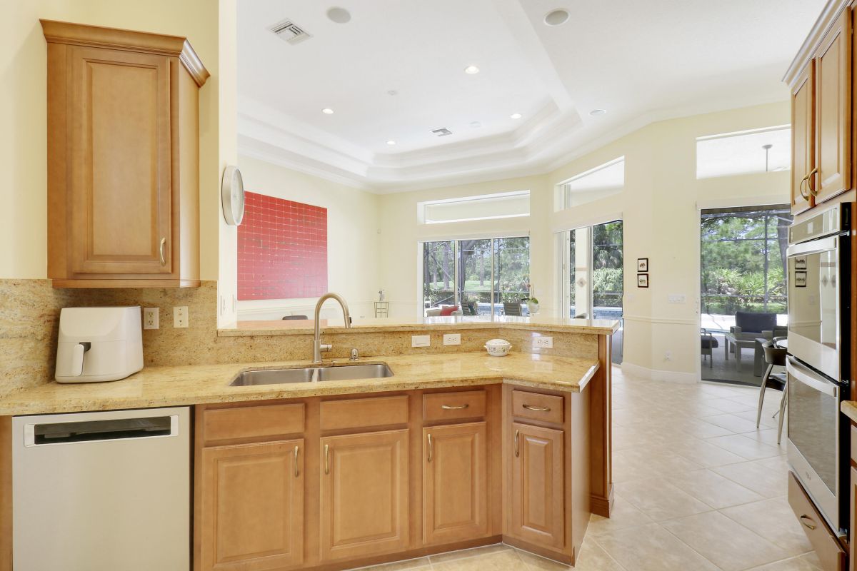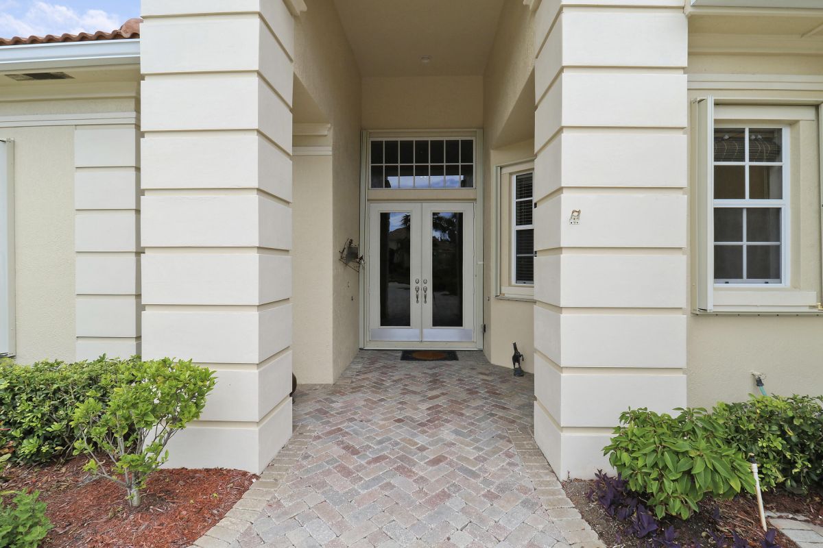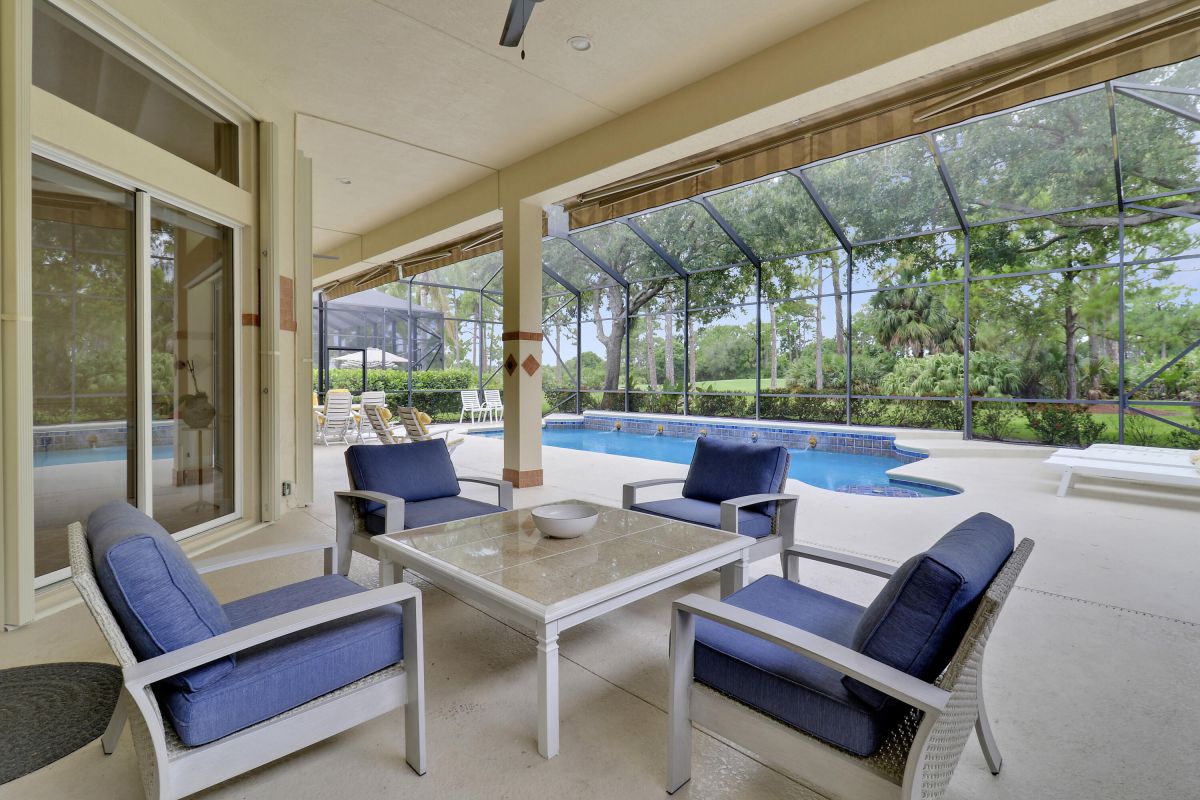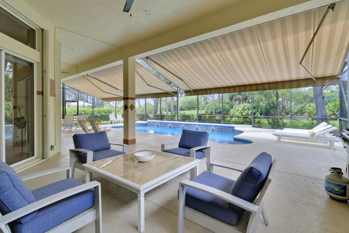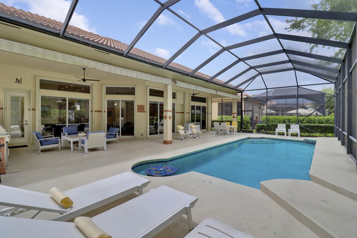 ELEGANT 3BR+DEN/3.5BA/2CG POOL HOME w/ golf course views and within close proximity to the PGA Golf Club makes this an EXCEPTIONAL PROPERTY! Located through the south gate of PGA Village, this Tompson Point beauty offers peaceful, quiet living complete with an expansive screened patio and large pool.The pool with water features and swim up table is just steps away from the built-in summer kitchen! As soon as you pull onto the circular paver driveway, you'll realize this is the one you've been looking for! Lush landscaping and double glass front entry doors lead you inside the foyer of this special property brimming with sophisticated style! Some of the many features include NEW ROOF 2021, hard surface flooring t/o, neutral interior paint, tray ceilings, decorative trim & crown molding.
