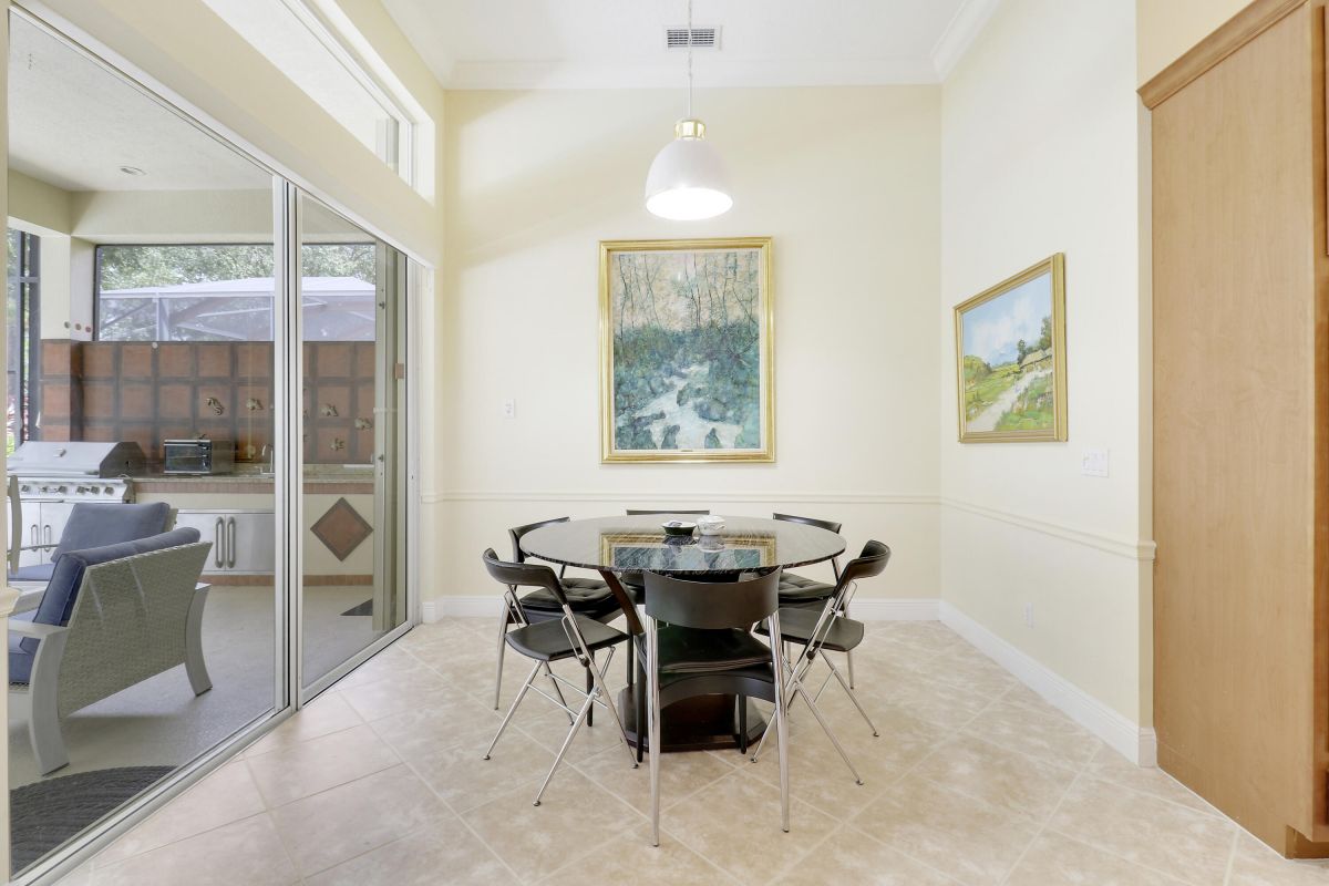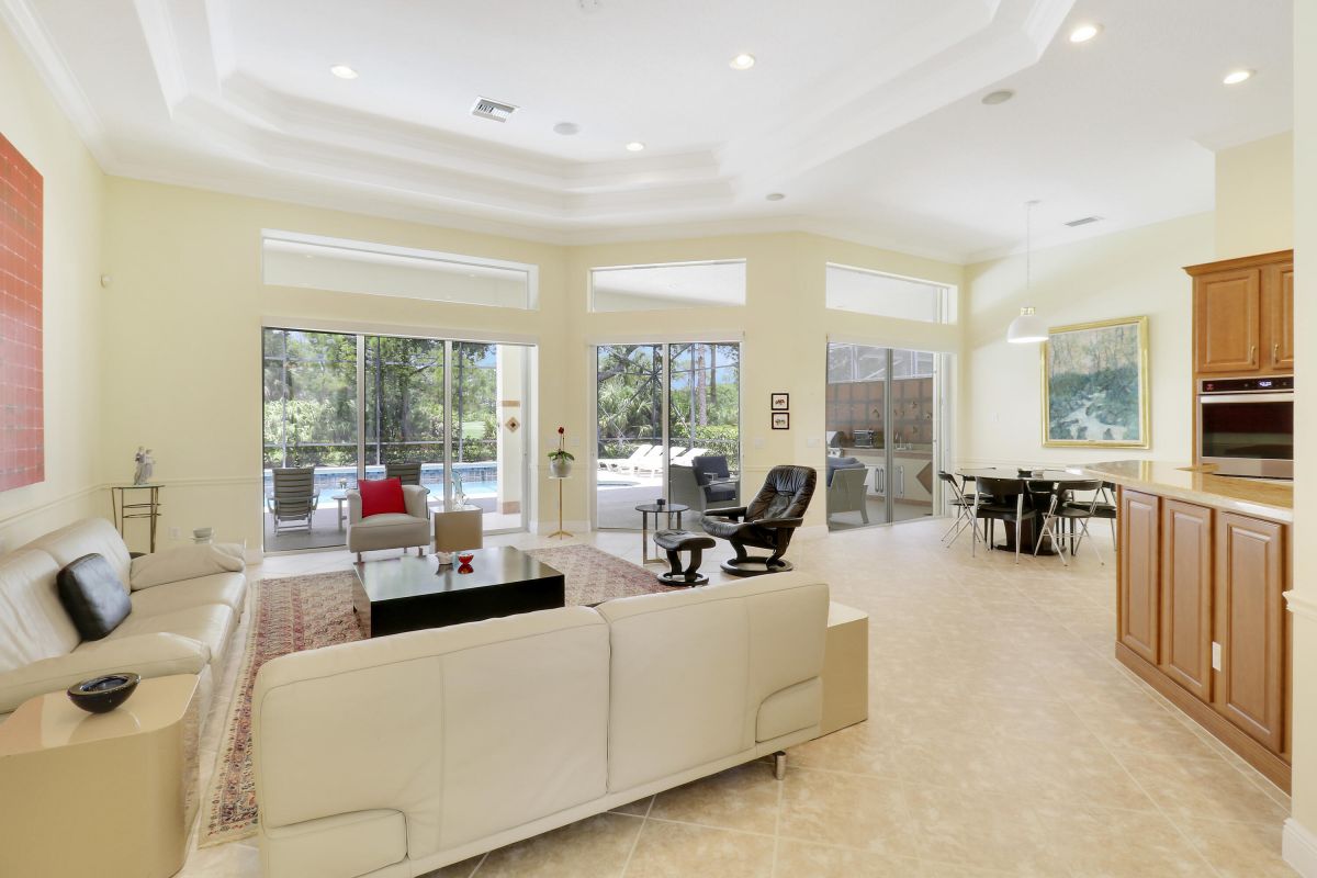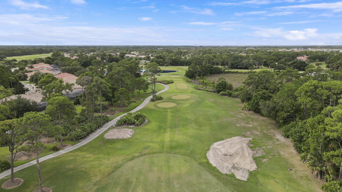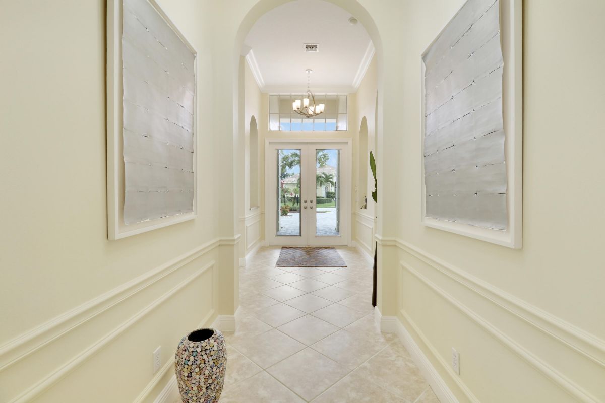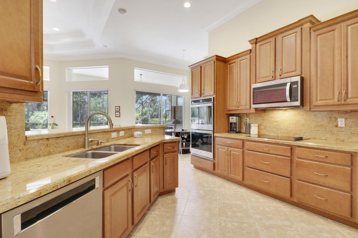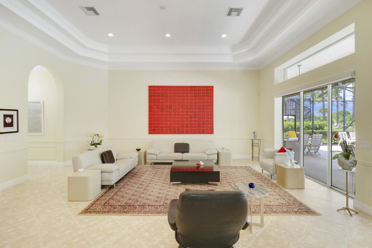 ELEGANT 3BR+DEN/3.5BA/2CG POOL HOME w/ golf course views and within close proximity to the PGA Golf Club makes this an EXCEPTIONAL PROPERTY! Located through the south gate of PGA Village, this Tompson Point beauty offers peaceful, quiet living complete with an expansive screened patio and large pool.The pool with water features and swim up table is just steps away from the built-in summer kitchen! As soon as you pull onto the circular paver driveway, you'll realize this is the one you've been looking for! Lush landscaping and double glass front entry doors lead you inside the foyer of this special property brimming with sophisticated style! Some of the many features include NEW ROOF 2021, hard surface flooring t/o, neutral interior paint, tray ceilings, decorative trim & crown molding.