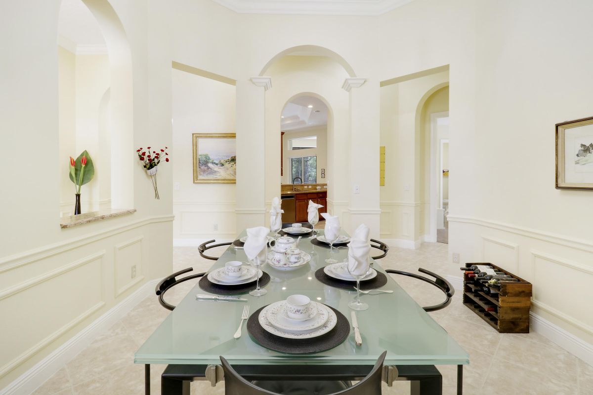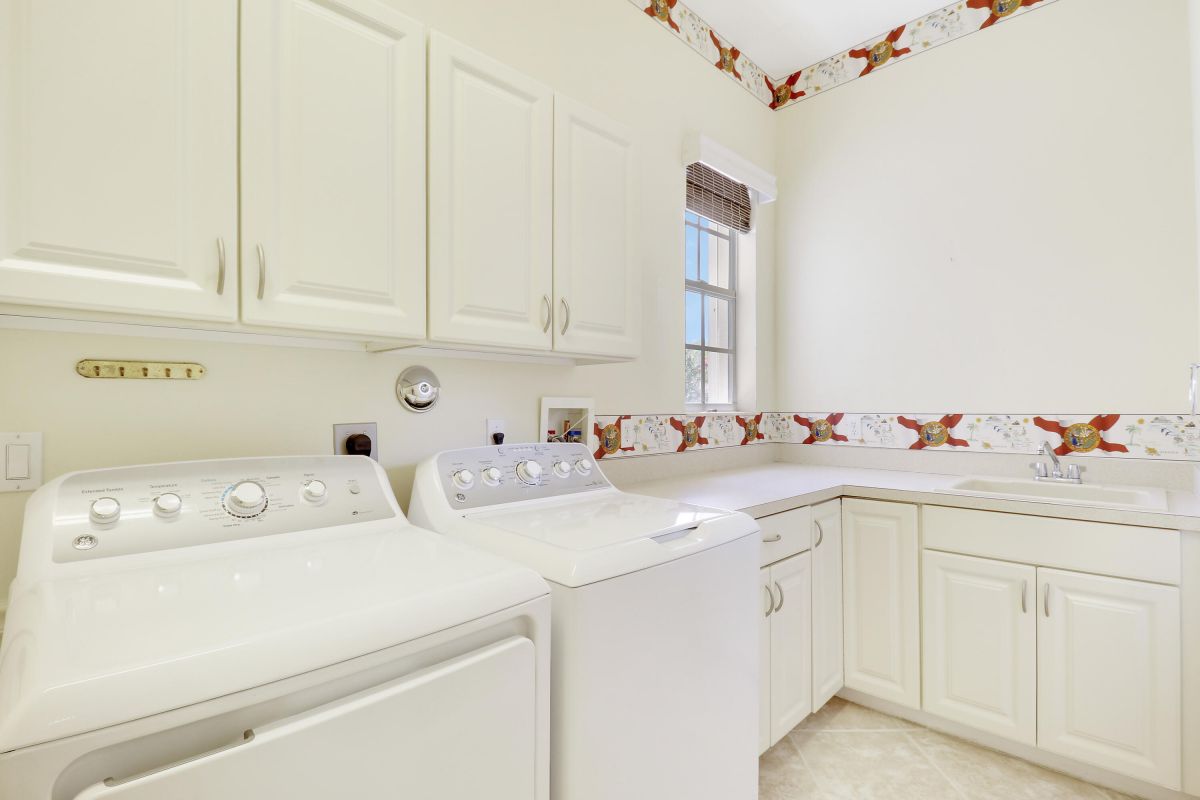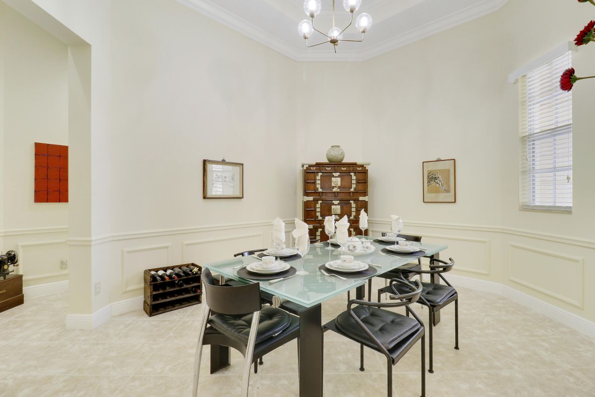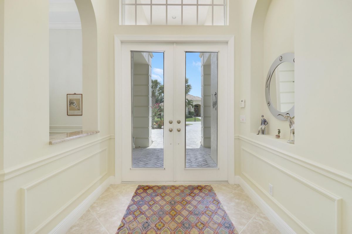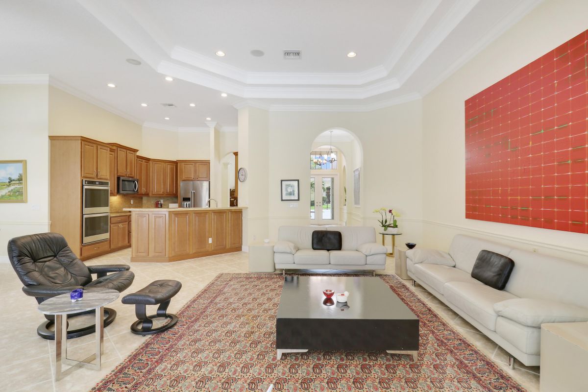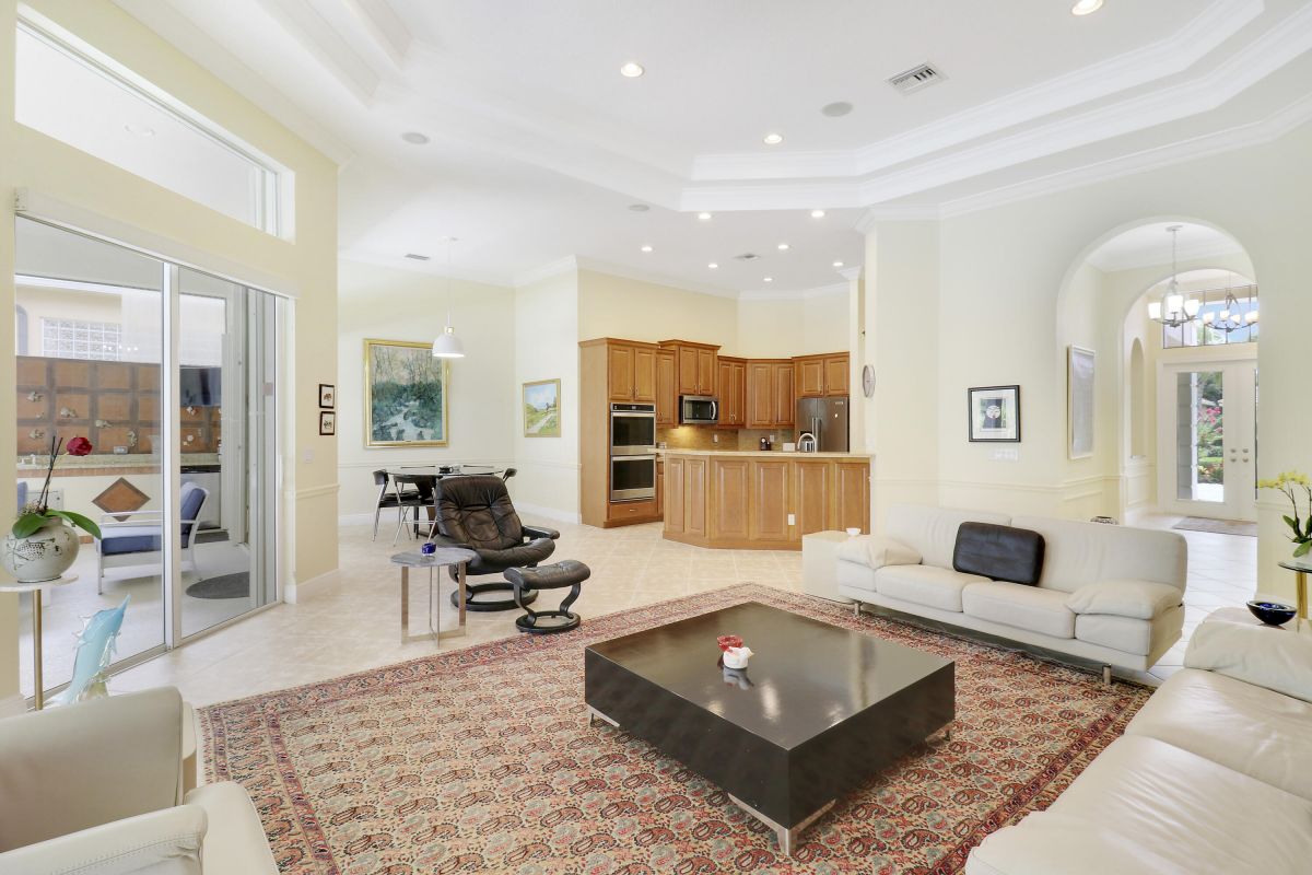 ELEGANT 3BR+DEN/3.5BA/2CG POOL HOME w/ golf course views and within close proximity to the PGA Golf Club makes this an EXCEPTIONAL PROPERTY! Located through the south gate of PGA Village, this Tompson Point beauty offers peaceful, quiet living complete with an expansive screened patio and large pool.The pool with water features and swim up table is just steps away from the built-in summer kitchen! As soon as you pull onto the circular paver driveway, you'll realize this is the one you've been looking for! Lush landscaping and double glass front entry doors lead you inside the foyer of this special property brimming with sophisticated style! Some of the many features include NEW ROOF 2021, hard surface flooring t/o, neutral interior paint, tray ceilings, decorative trim & crown molding.