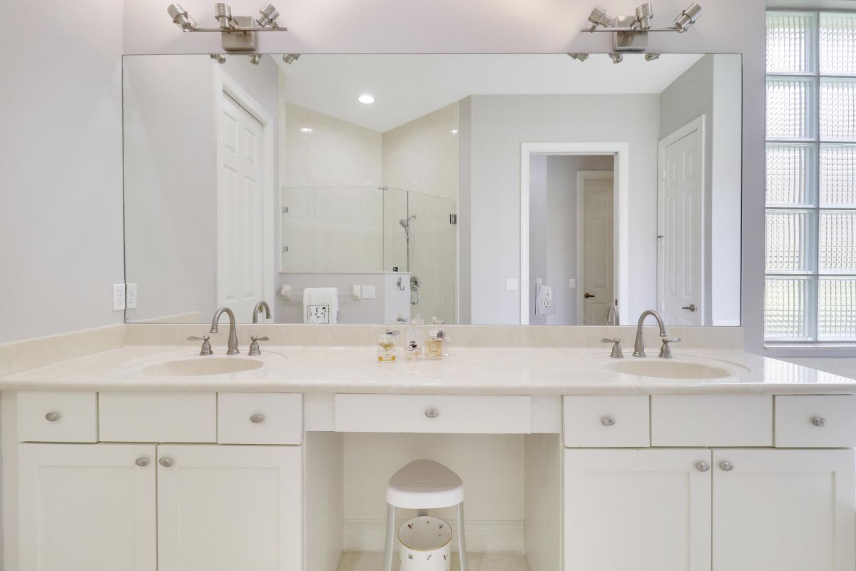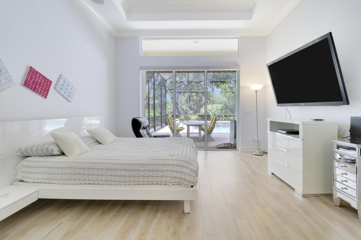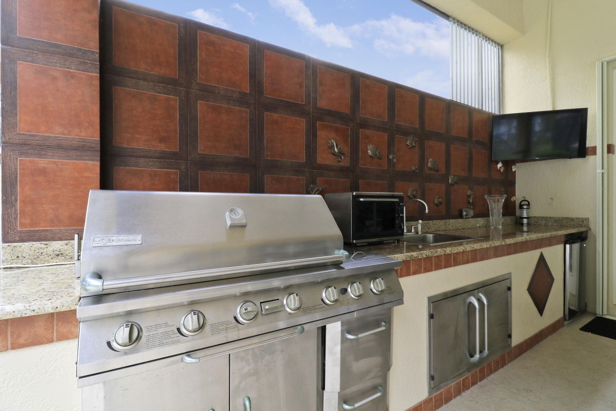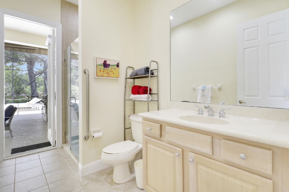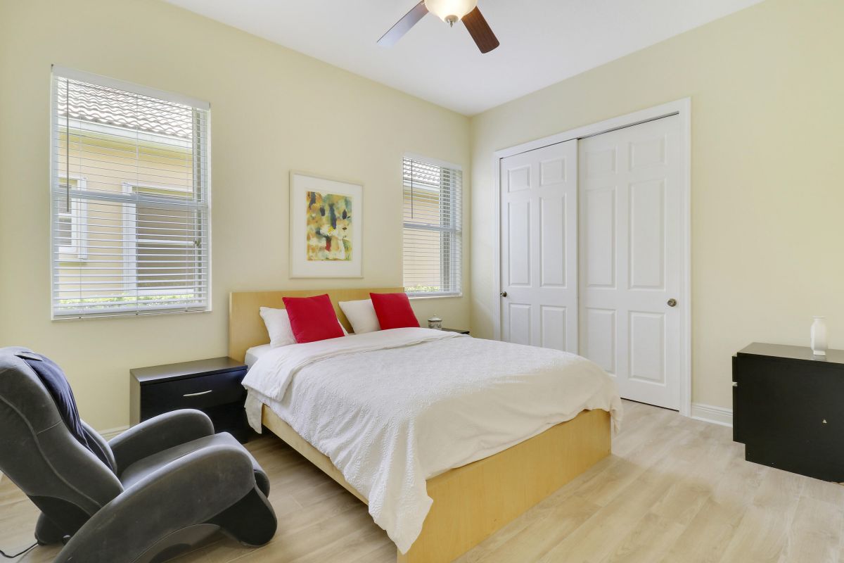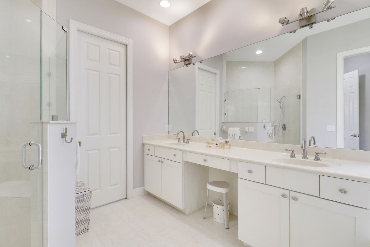 ELEGANT 3BR+DEN/3.5BA/2CG POOL HOME w/ golf course views and within close proximity to the PGA Golf Club makes this an EXCEPTIONAL PROPERTY! Located through the south gate of PGA Village, this Tompson Point beauty offers peaceful, quiet living complete with an expansive screened patio and large pool.The pool with water features and swim up table is just steps away from the built-in summer kitchen! As soon as you pull onto the circular paver driveway, you'll realize this is the one you've been looking for! Lush landscaping and double glass front entry doors lead you inside the foyer of this special property brimming with sophisticated style! Some of the many features include NEW ROOF 2021, hard surface flooring t/o, neutral interior paint, tray ceilings, decorative trim & crown molding.