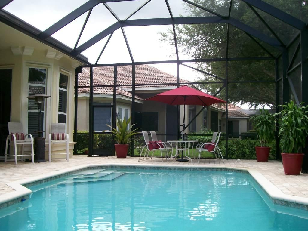 One of the few 2-Story homes in PGA Village and has only been lived in by the original owners. This is the Medalist/Bonus model that creates an additional upstairs bedroom suite over the garage (currently used as an entertainment room). House has 4 Bedrooms, 3.5 Baths, Den, Living Room, Dining Area and Family Room. Plenty of added upgrades beside bonus suite includes cabinets, granite countertops, bathroom vanities, staircase and more. Master bathroom has just been updated with new shower tempered glass enclosure and chrome fixtures. All wood flooring was installed 2 years ago. Both A/C systems are less than 2 years old. Wonderful large screen/pool area 6 years old. Beautiful tranquil view of the golf course and sunsets. This is not a gray monotone home. Owner is an Appraiser and Agent.