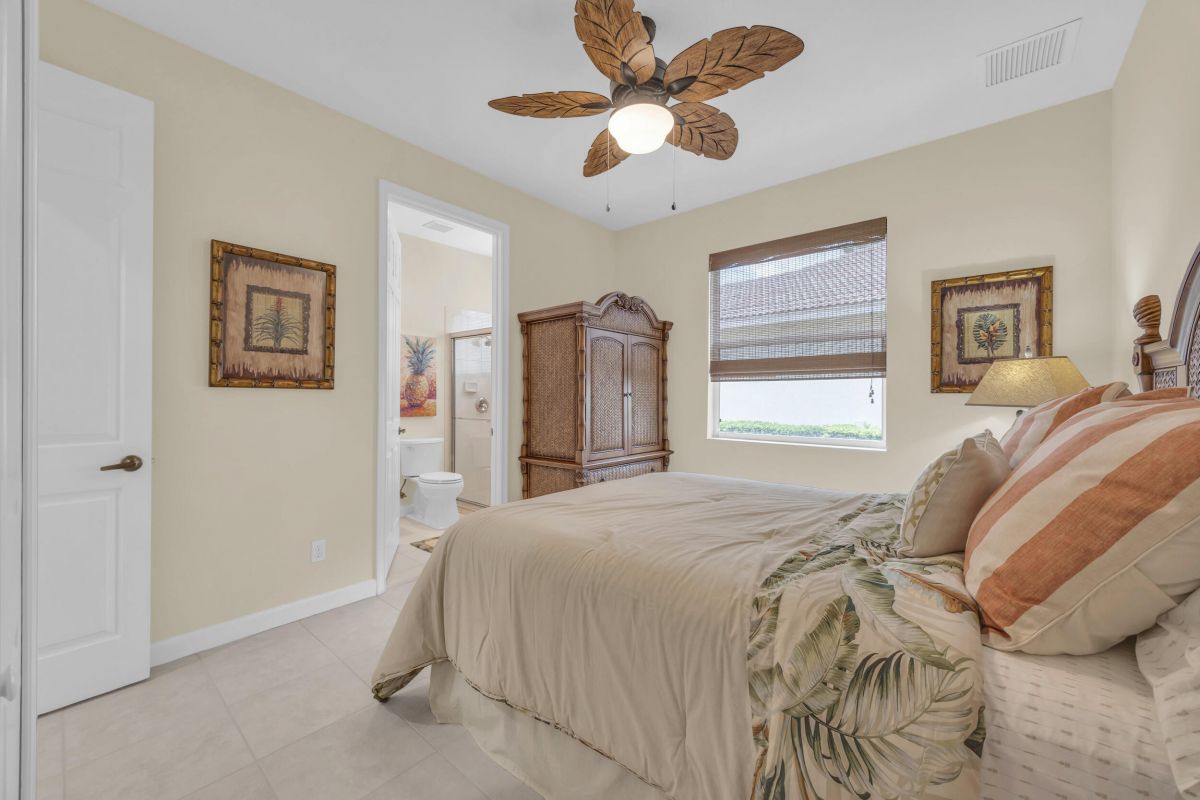 Tee up your Florida lifestyle at 8821 Champions Way in the prestigious PGA Village.Fully furnished and move-in ready, this 3 bedroom, 3.5-bath home offers over 2,300 sq. ft. of bright, open living space overlooking the golf course. Step outside to your private solar-heated, screened-in pool with cabana bath, or fire up the brand-new outdoor kitchen--complete with sink, ice well, grill, and granite seating for six--perfect for post-round gatherings.Inside, soaring 15' ceilings, oversized 12' sliding glass doors, and tile flooring throughout create a light, airy feel. The chef's kitchen boasts granite countertops, 42'' cabinets, and stainless-steel appliances, while the spacious primary suite features dual sinks, a soaking tub, and a separate shower.