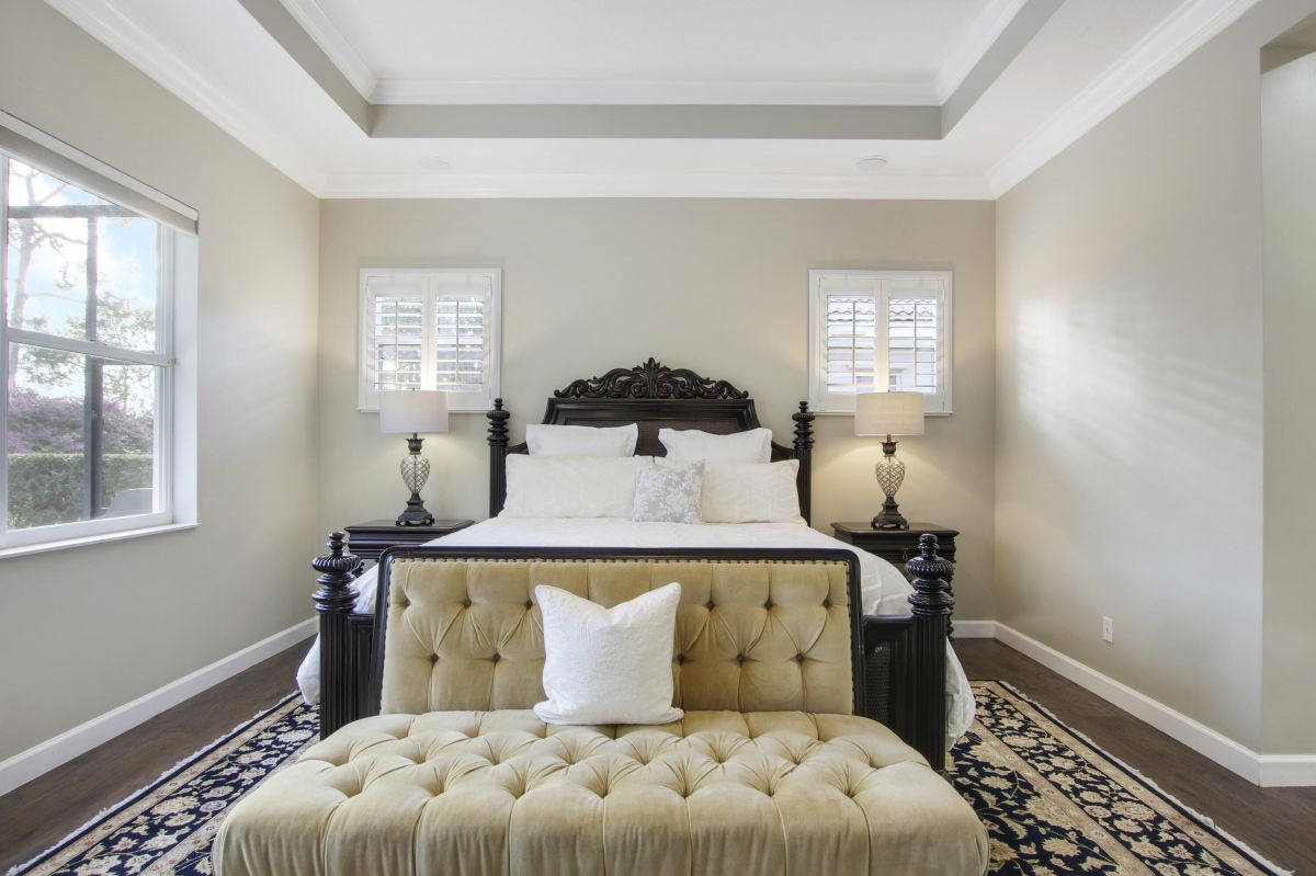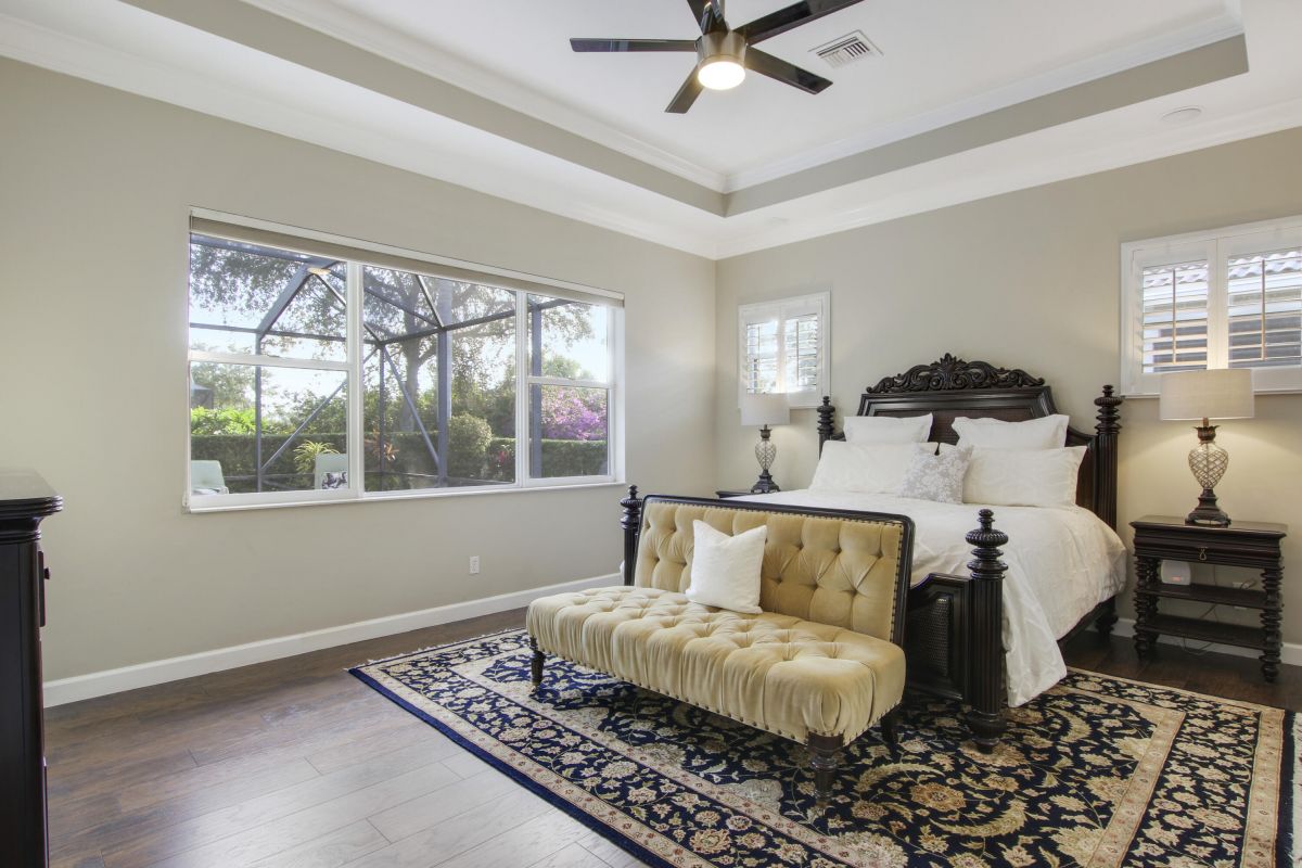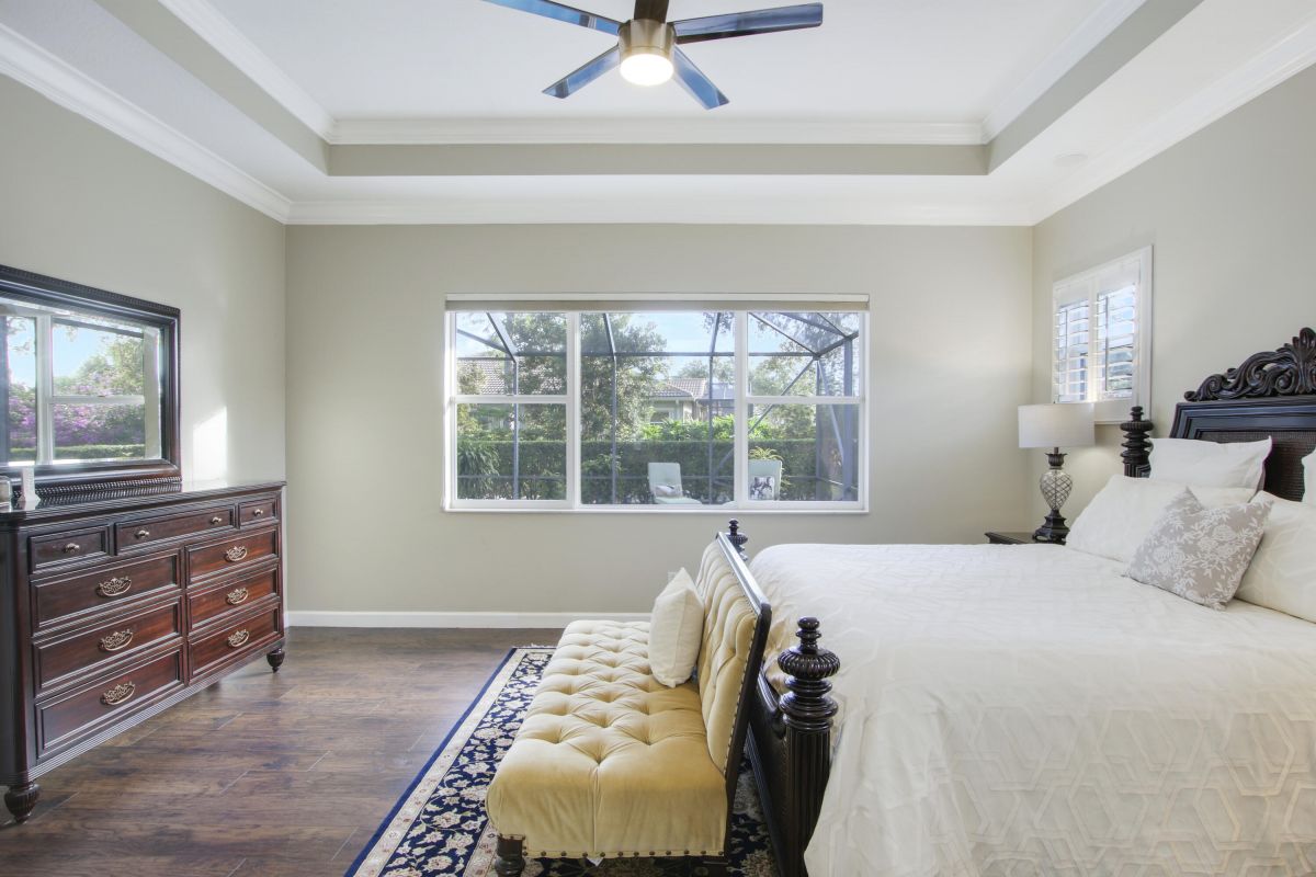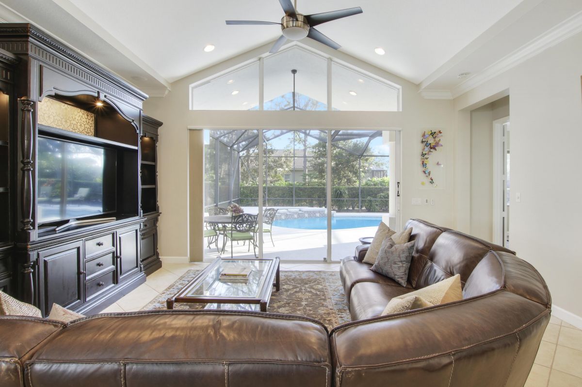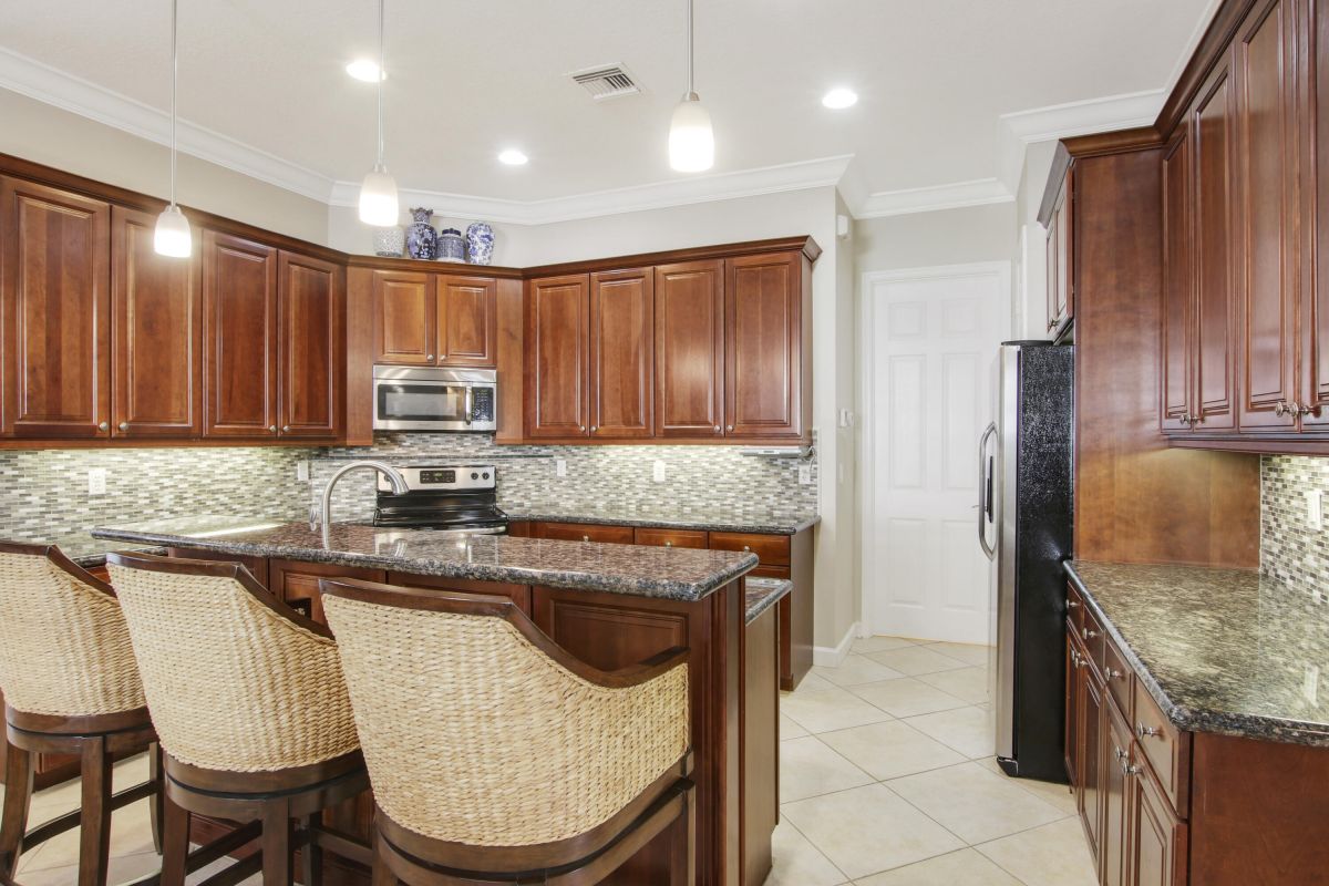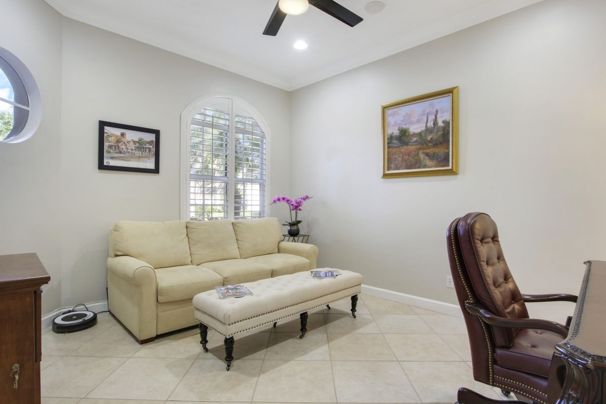 Look no further! Popular Fairview plan in PGA Village w/ heated pool & spa! This 2BR+Den/2BA/2CG home has space in all the right places! Special features include fresh interior paint t/o, vaulted ceiling, transom windows, spacious kitchen, hard surface flooring t/o, oversized master suite, plantation shutters, large laundry room and crown molding. PROPERTY TAX SAVINGS w/ county only taxes.Open floor plan ideal for entertaining & modern living. Kitchen w/ 42'' wood cabinetry, granite counters, tile backsplash, SS appliances, under cabinet lighting, pantry closet, breakfast bar and pendant lights. Master suite is the perfect spot to wind down w/ dual walk-in closets w/ custom shelving as well as spa-like ensuite w/ linen closet, soaking tub, walk in shower and large vanity w/ dual si