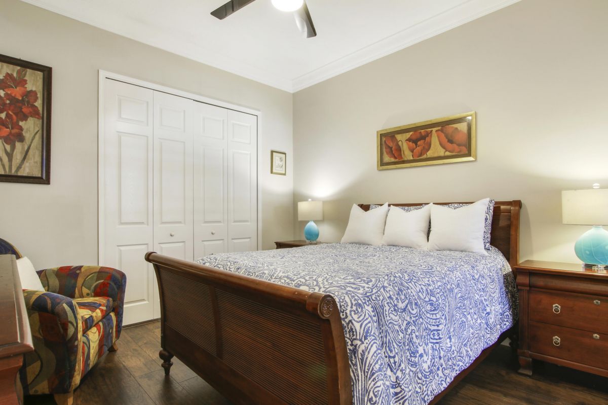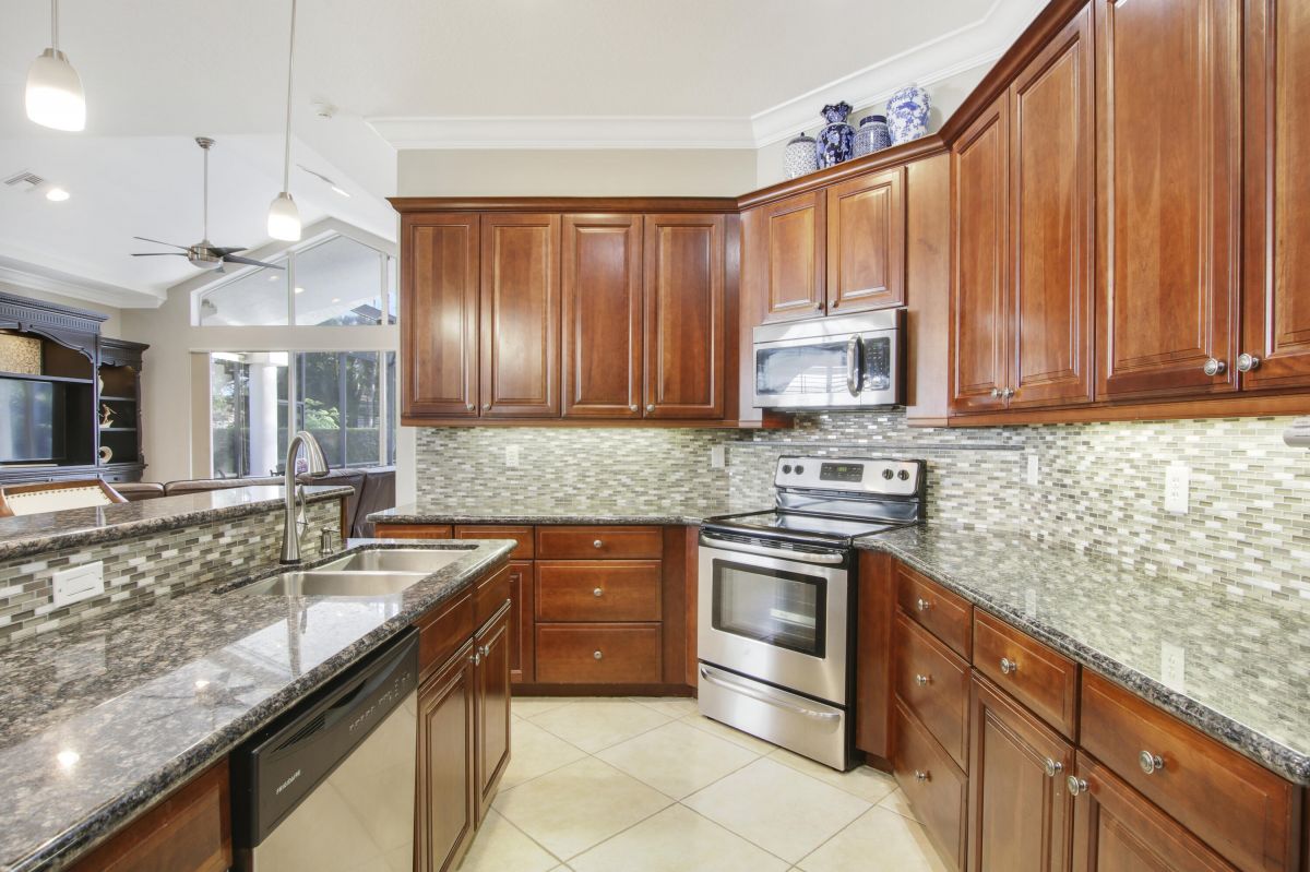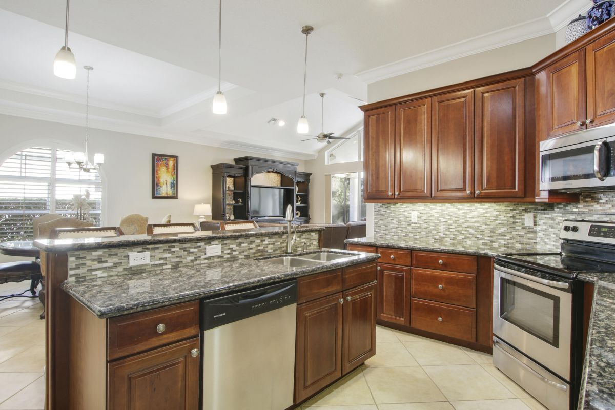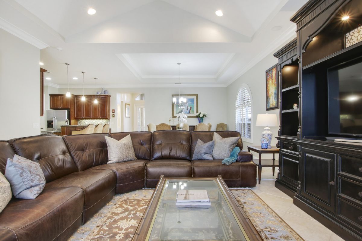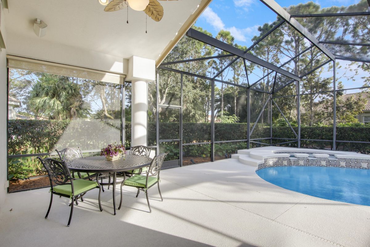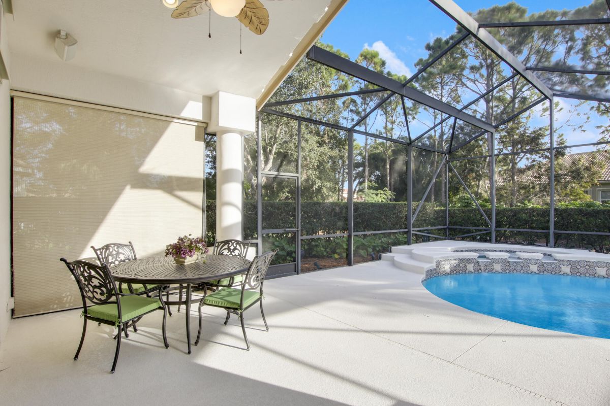 Look no further! Popular 'Fairview' plan in PGA Village w/ private heated pool & spa! This 2BR+Den/2BA/2CG home has space in all the right places! Special features include vaulted ceiling, transom windows, spacious kitchen, hard surface flooring t/o, oversized master suite, plantation shutters, sizable laundry room and crown molding. The open floor plan is ideal for entertaining & modern living. Kitchen w/ 42'' wood cabinetry, granite counters, tile backsplash, SS appliances, under cabinet lighting, pantry, breakfast bar and pendant lighting. Master suite is the perfect spot to wind down w/ dual walk-in closets w/ custom shelving as well as spa-like ensuite with linen closet, soaking tub, walk in shower and wall-to-wall vanity with dual sinks. The guest room and den share a hall bathroom