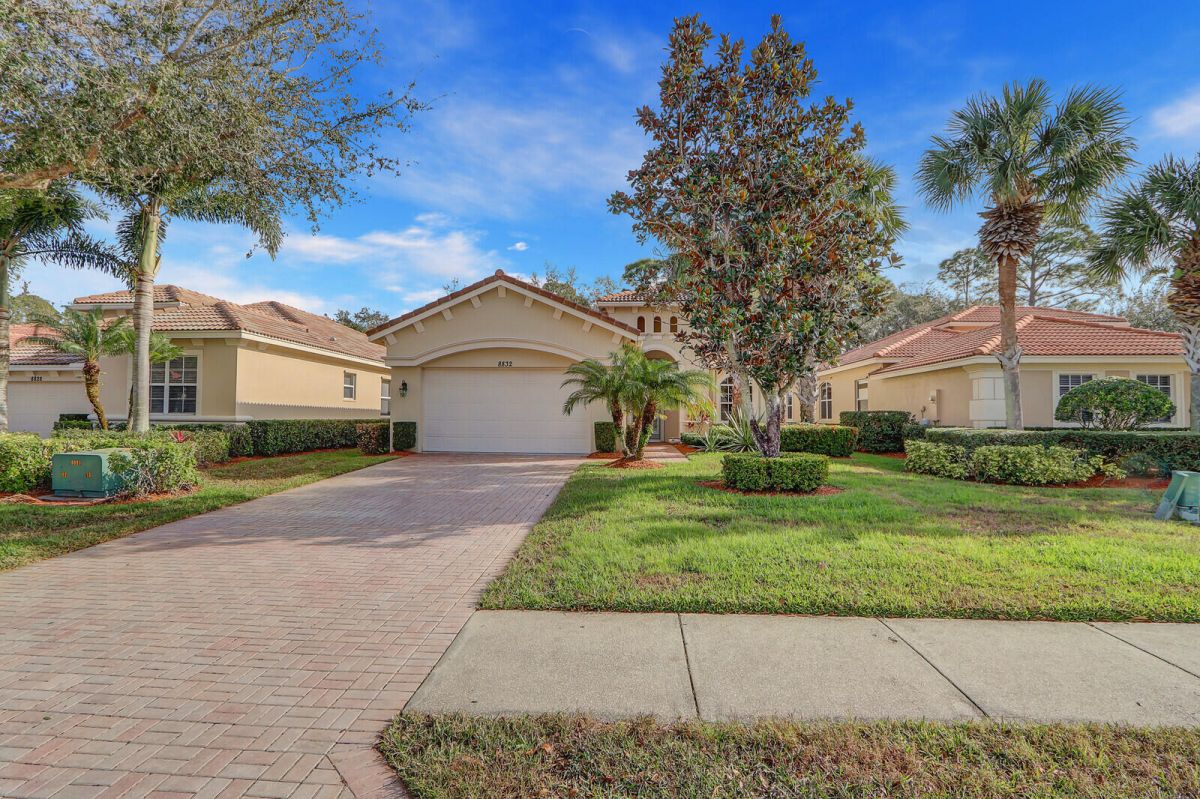 IT'S THE FABULOUS FAIRVIEW FLOOR PLAN WITH A LAKE VIEW IN PGA VILLAGE!!! This popular 2 br, den 2 bath is light & bright & has been very well maintained & gently lived in. It has accordion hurricane shutters & the a/c, water heater & SS appliances are all newer. Private rear yard with lots of mature vegetation, privacy, a long, lake view & there is room for a pool! It is being offered FULLY FURNISHED or furniture negotiable!Located in The Lakes at PGA Village, close to the golf courses, close to the gate and just a short walk to the Island Club, the community club house where there is a pool, fitness center, tennis, pickle ball, ball room, card rooms, arts & crafts room, library, catering kitchen & lots of organized activities, something for everyone. WON'T LAST SO ACT FAST!