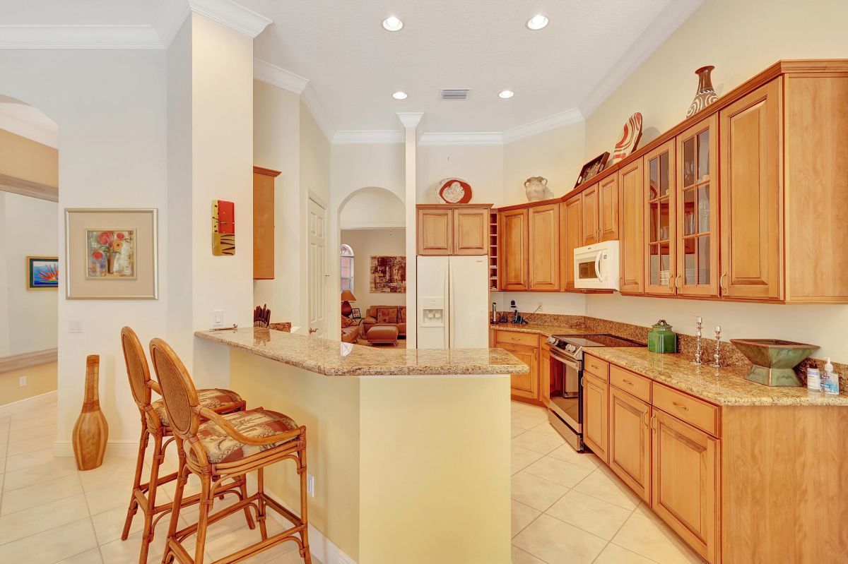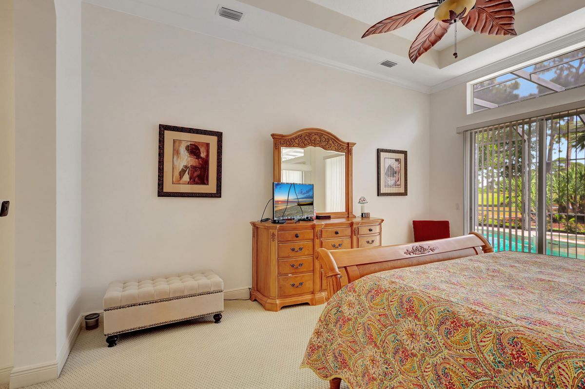 Imagine living in the epitome of golfers' paradise, where every detail caters to your love for the sport. This stunning home boasts an exceptional floor plan with three spacious bedrooms, each offering privacy and comfort. With three and a half baths, convenience is never compromised.As you step into the screened-in pool area, you're greeted by a breathtaking view of the 15th hole of the renowned Wannamaker A Fasio Course. Whether you're enjoying a refreshing swim that has a solar cover and a surrounded safety gate for hosting a gathering, this outdoor oasis provides the perfect backdrop for relaxation and entertainment.