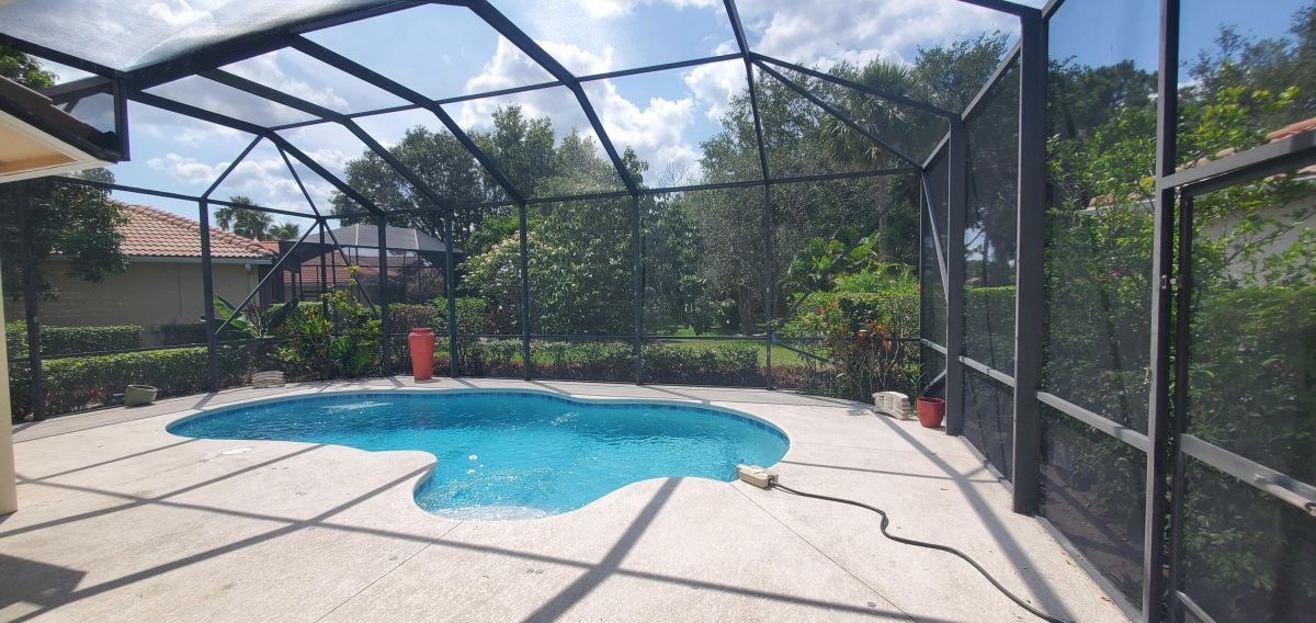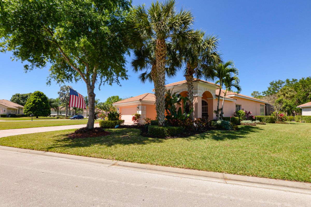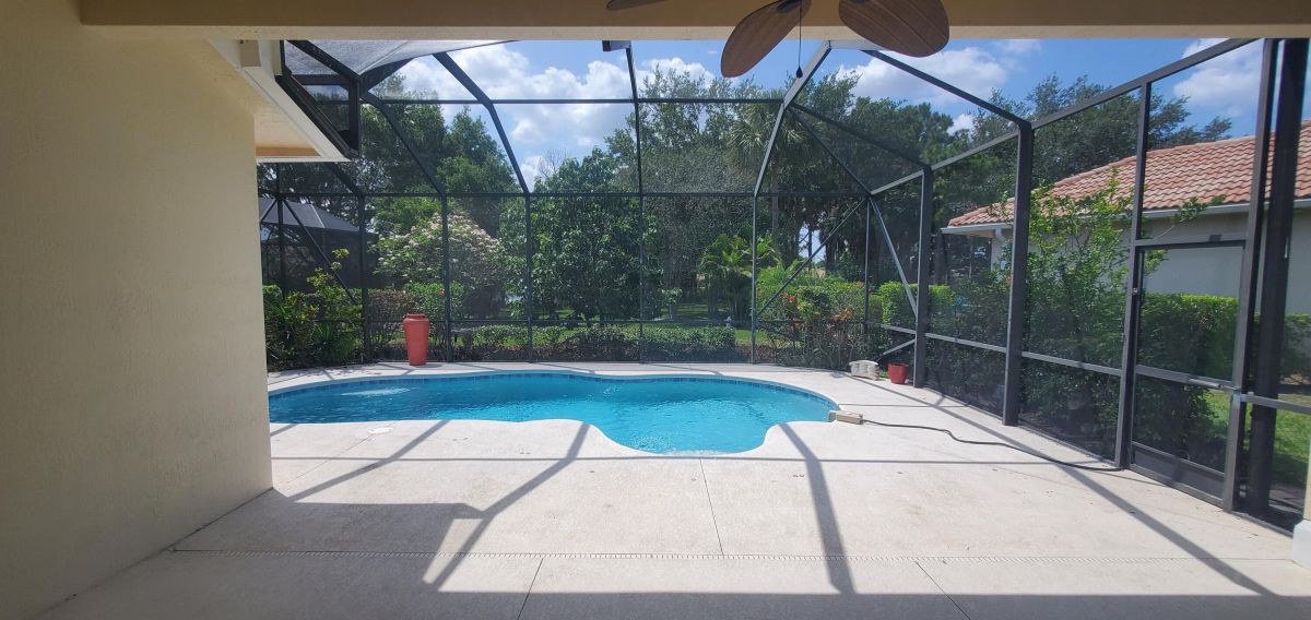AVAILABLE JUST IN TIME BEFORE NEW SCHOOL YEAR STARTS. Largest Corner Lot in Island Point. 3/2/2 Pool Home with secondary Master Suite, Island Point in PGA Village has the added convenience of having the Clubhouse within the community. Large backyard with view of lake and preserve for added privacy. Enjoy the stunning recently refinished pool with a totally covered lanai, 8-inch crown moldings, Plantation shutters, Newer A/C, Newer pool pump, Newer Water Htr, Granite Counters, New SS Appliances. HOA dues include lawn care, sprinkler system, cable, internet, & all of PGA Village's amenities and activities., has something for everyone with pickleball, tennis, heated pool, exercise facility, playground, library, billiards, conference rooms, social events and more. For the avid golfer, GOLF