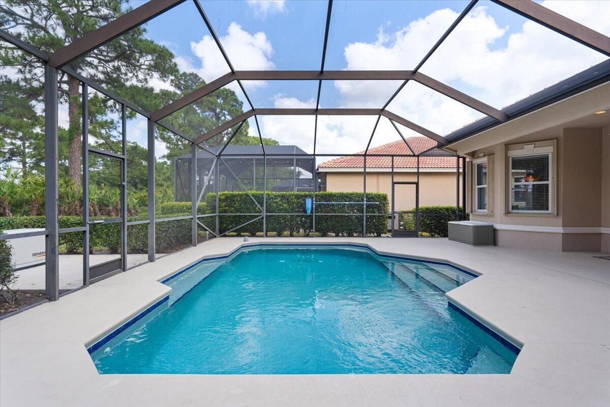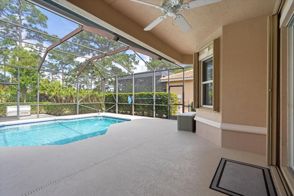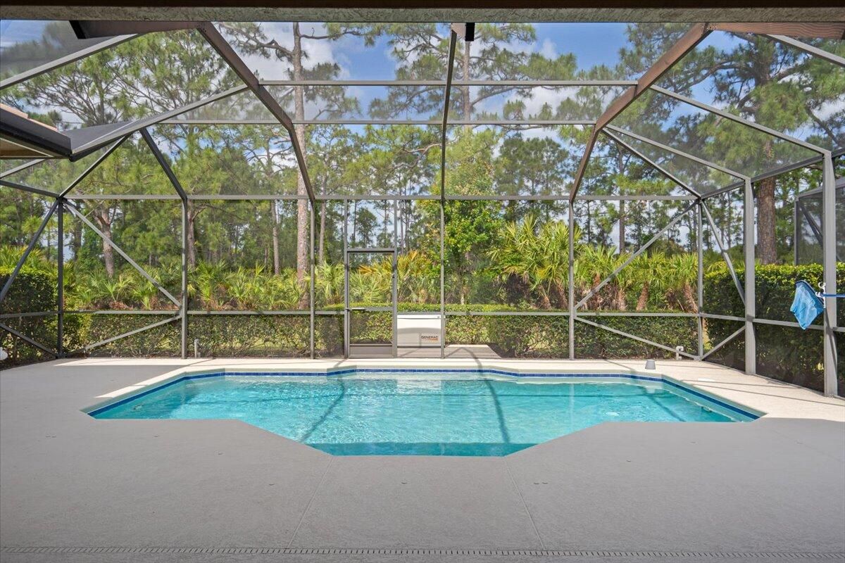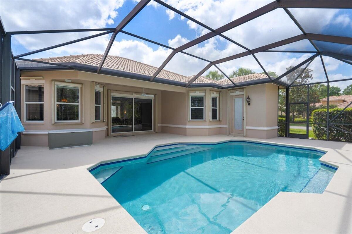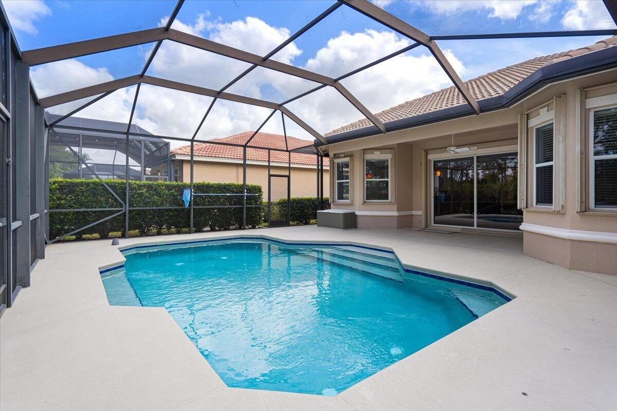 Beautifully appointed 3-bedroom, 3-bath home in the exclusive PGA Village, surrounded by championship golf courses and pristine landscaping. The open-concept design features high ceilings, abundant natural light, and premium finishes. The kitchen offers modern appliances, Corian countertops, and ample space for every day living and entertaining. This home offers a convenient access to a cabana bath. Extras include accordion shutters, a whole-house water filtration system and GENERATOR. Step outside to a private pool and full cage screen enclosure, perfect for year-round enjoyment. Set on an oversized corner homesite with preserve views and extra parking, this home blends comfort, style, and resort living.