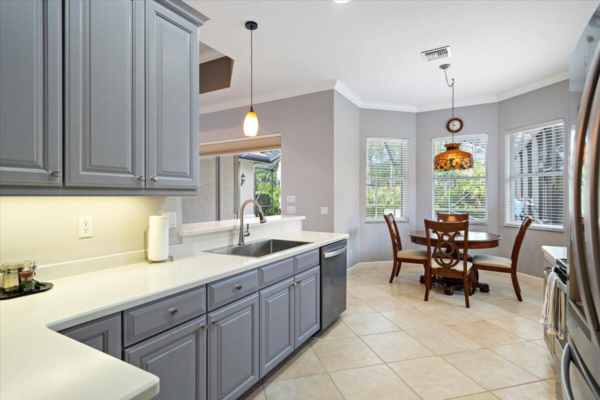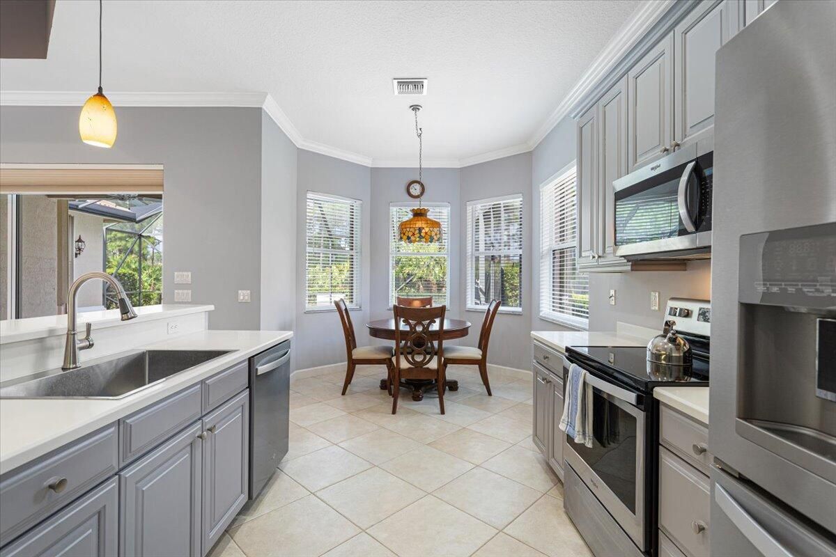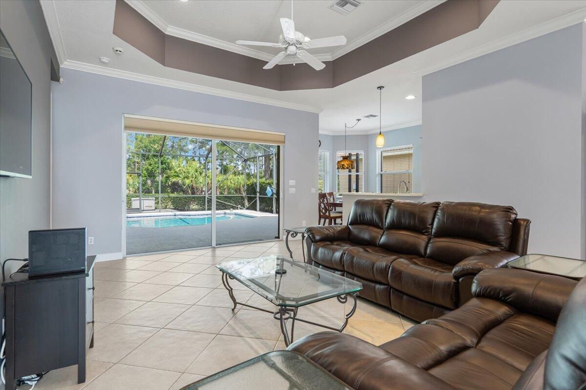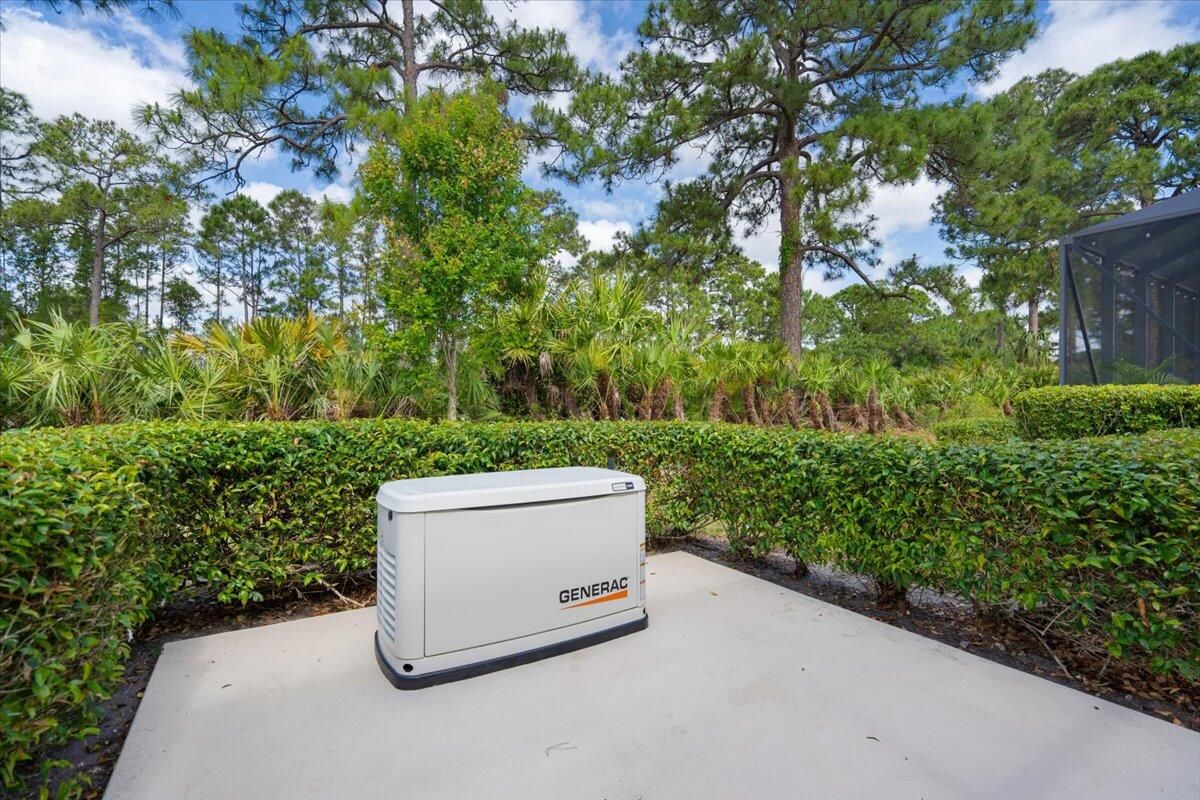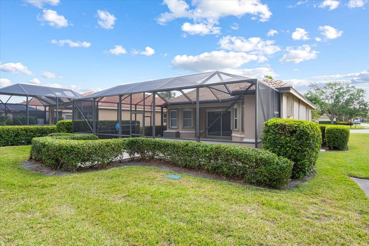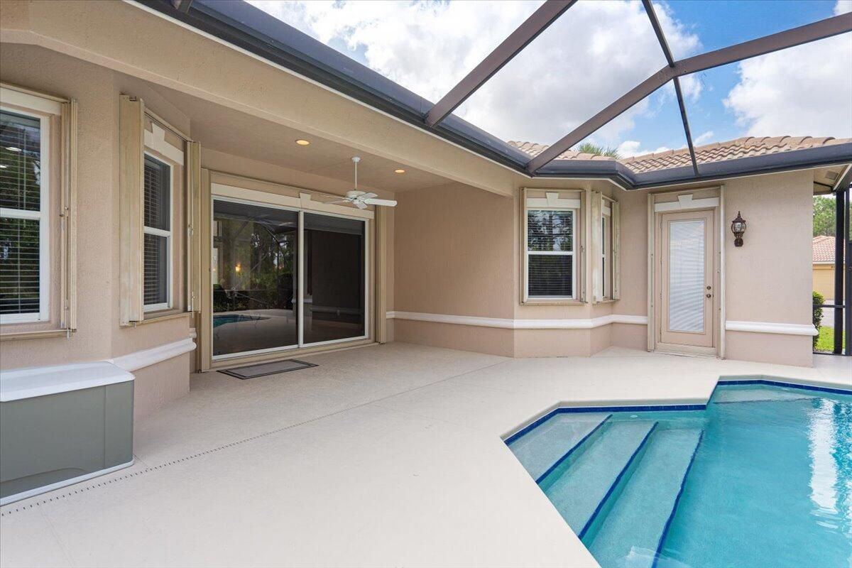 Beautifully appointed 3-bedroom, 3-bath home in the exclusive PGA Village, surrounded by championship golf courses and pristine landscaping. The open-concept design features high ceilings, abundant natural light, and premium finishes. The kitchen offers modern appliances, Corian countertops, and ample space for every day living and entertaining. This home offers a convenient access to a cabana bath. Extras include accordion shutters, a whole-house water filtration system and GENERATOR. Step outside to a private pool and full cage screen enclosure, perfect for year-round enjoyment. Set on an oversized corner homesite with preserve views and extra parking, this home blends comfort, style, and resort living.
