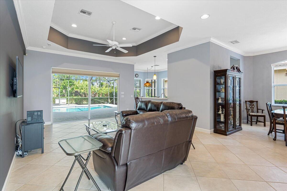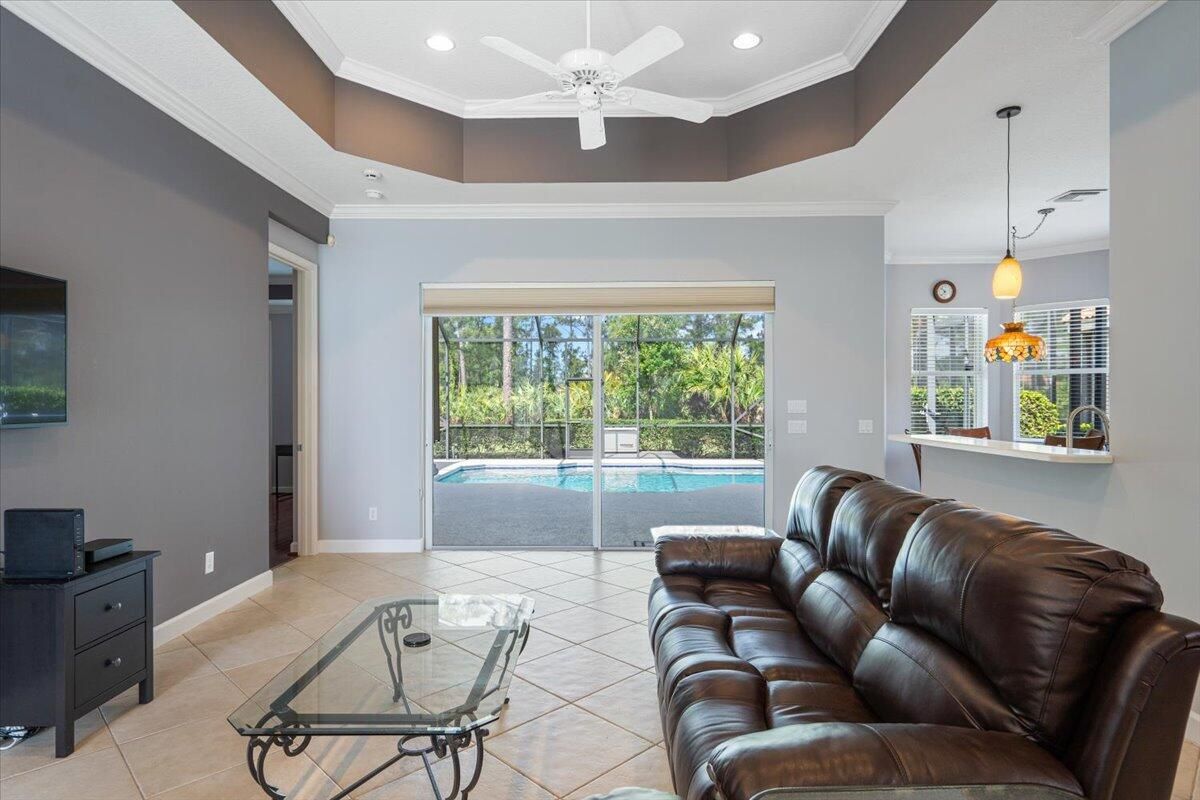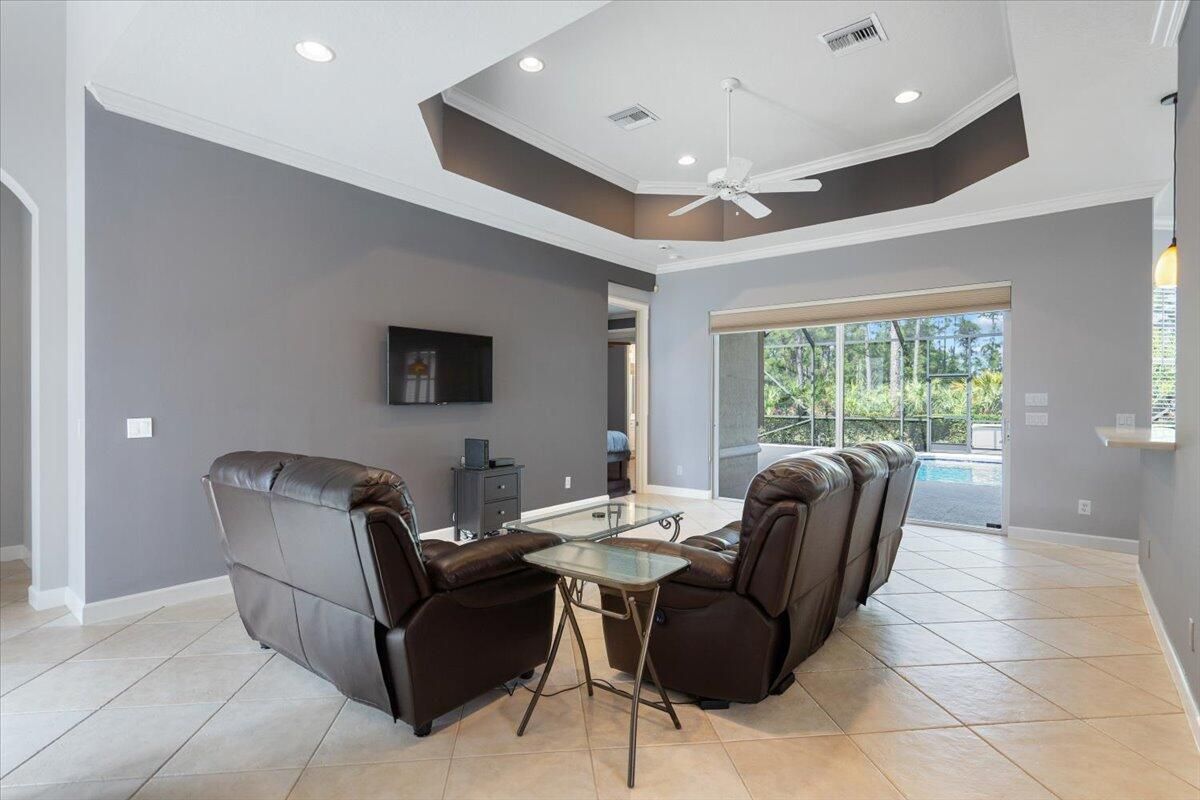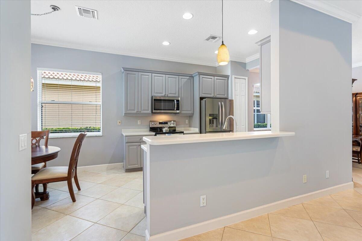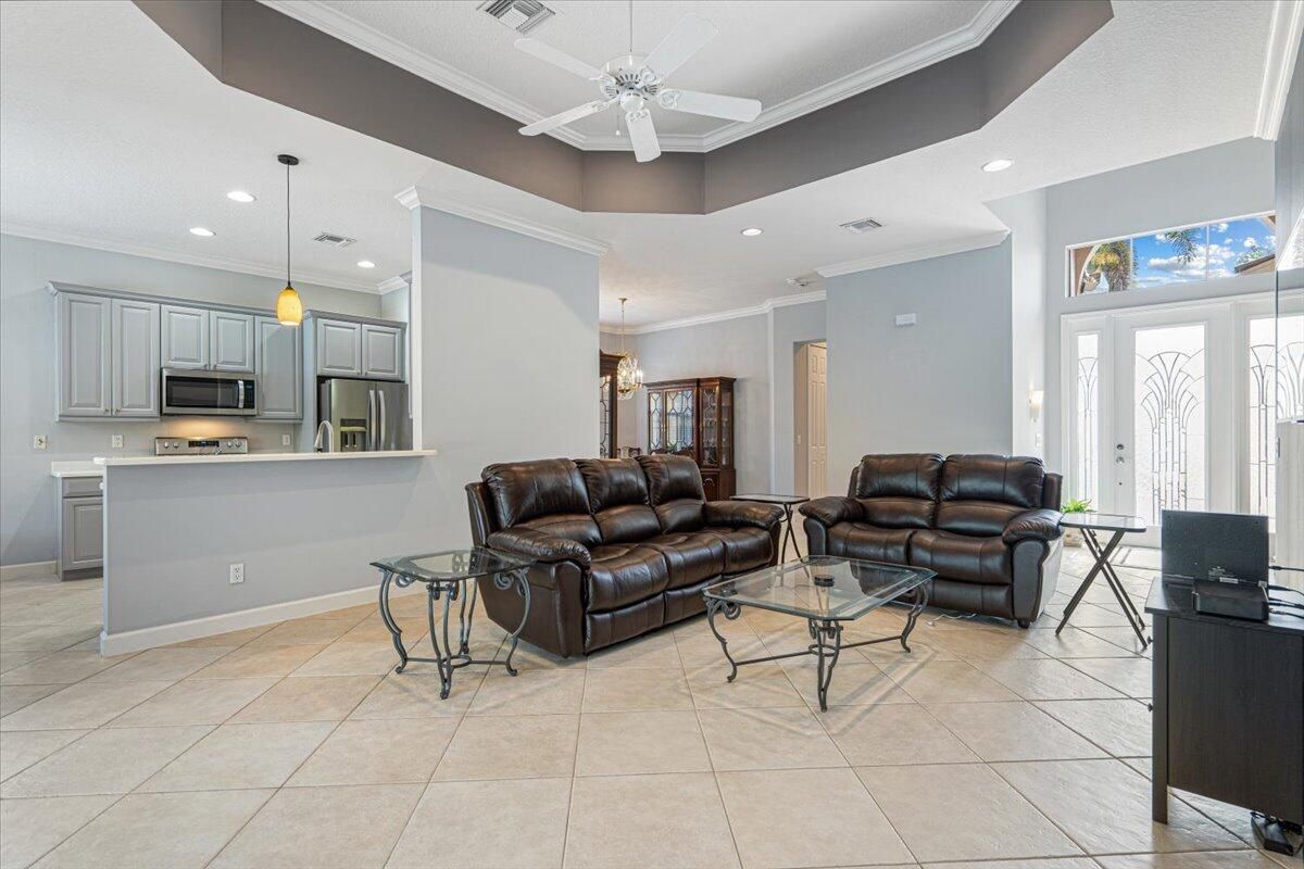 Beautifully appointed 3-bedroom, 3-bath home in the exclusive PGA Village, surrounded by championship golf courses and pristine landscaping. The open-concept design features high ceilings, abundant natural light, and premium finishes. The kitchen offers modern appliances, Corian countertops, and ample space for every day living and entertaining. This home offers a convenient access to a cabana bath. Extras include accordion shutters, a whole-house water filtration system and GENERATOR. Step outside to a private pool and full cage screen enclosure, perfect for year-round enjoyment. Set on an oversized corner homesite with preserve views and extra parking, this home blends comfort, style, and resort living.
