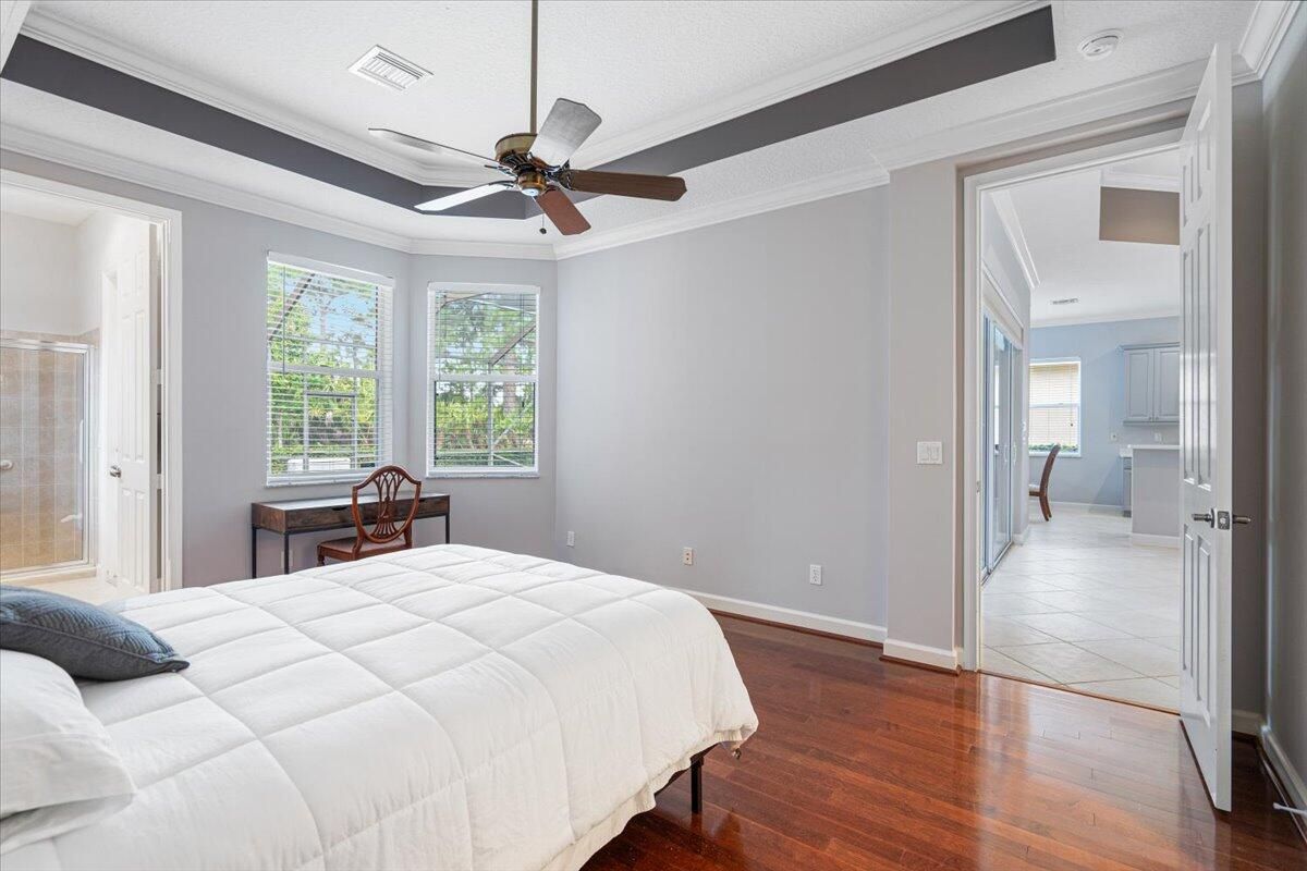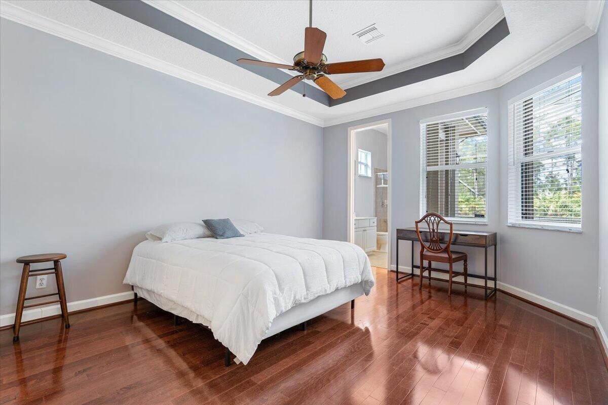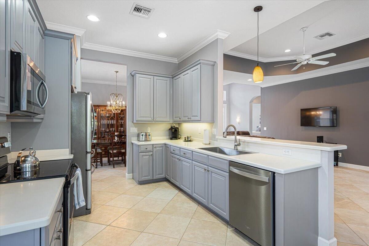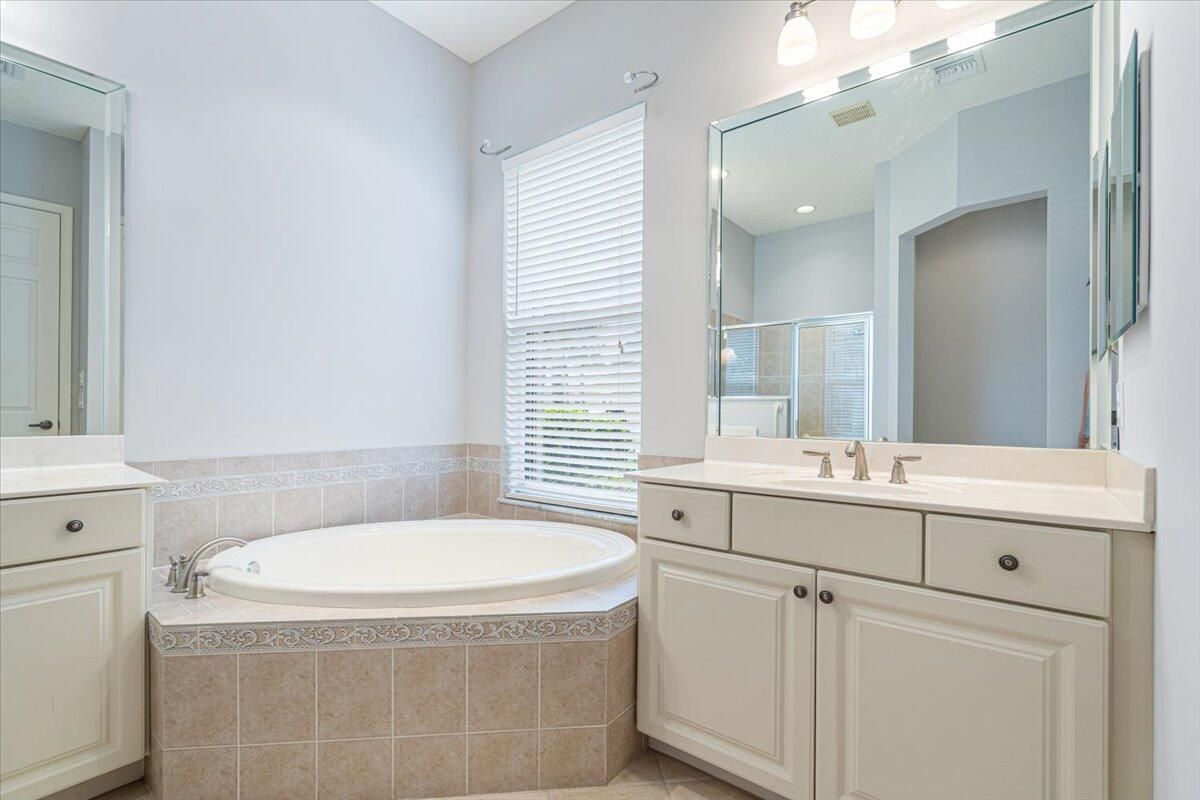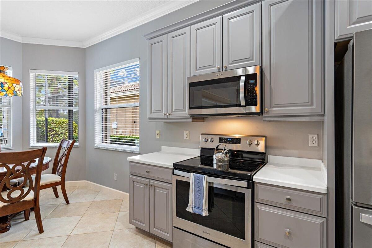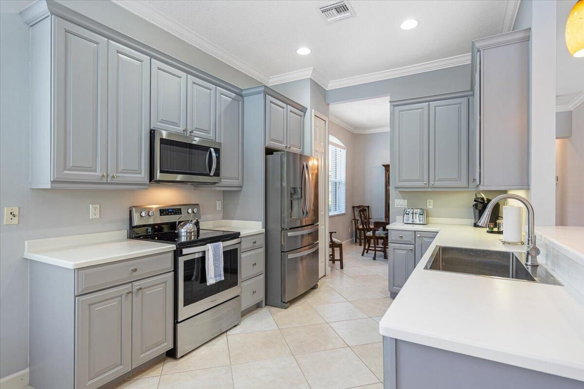 Beautifully appointed 3-bedroom, 3-bath home in the exclusive PGA Village, surrounded by championship golf courses and pristine landscaping. The open-concept design features high ceilings, abundant natural light, and premium finishes. The kitchen offers modern appliances, Corian countertops, and ample space for every day living and entertaining. This home offers a convenient access to a cabana bath. Extras include accordion shutters, a whole-house water filtration system and GENERATOR. Step outside to a private pool and full cage screen enclosure, perfect for year-round enjoyment. Set on an oversized corner homesite with preserve views and extra parking, this home blends comfort, style, and resort living.