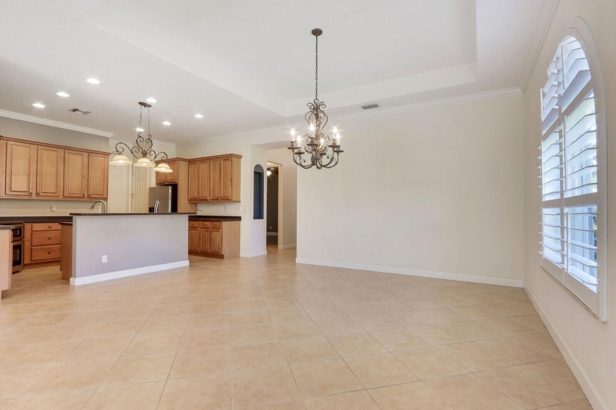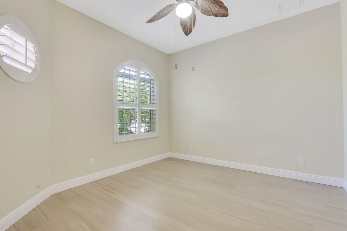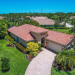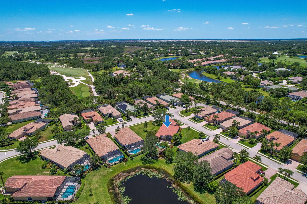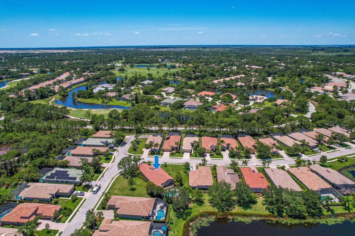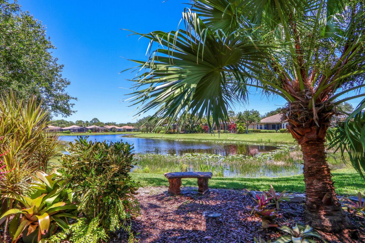 TROPICAL PARADISE IN PGA VILLAGE! An expanded FAIRVIEW with flex room, 3 BRS & oversized garage with room for 2 cars & a golf cart! Situated on a lushly landscaped, oversized lot with extended screened lanai, fenced pool & spa overlooking a lush tropical garden & the lake. Accordion shutters, plantation shutters, crown moldings, updated a/c & water heater plus more! PGA Village is a golfer's delight with 3 world class PGA golf courses & club house & The Legacy Golf & Tennis Club. Plus, the Island club, a community club house where there is a pool, fitness, tennis, pickle ball, ballroom, catering kitchen, arts & crafts, library & a full calendar of activities, something for everyone. This is a great property in a great community so act fast!