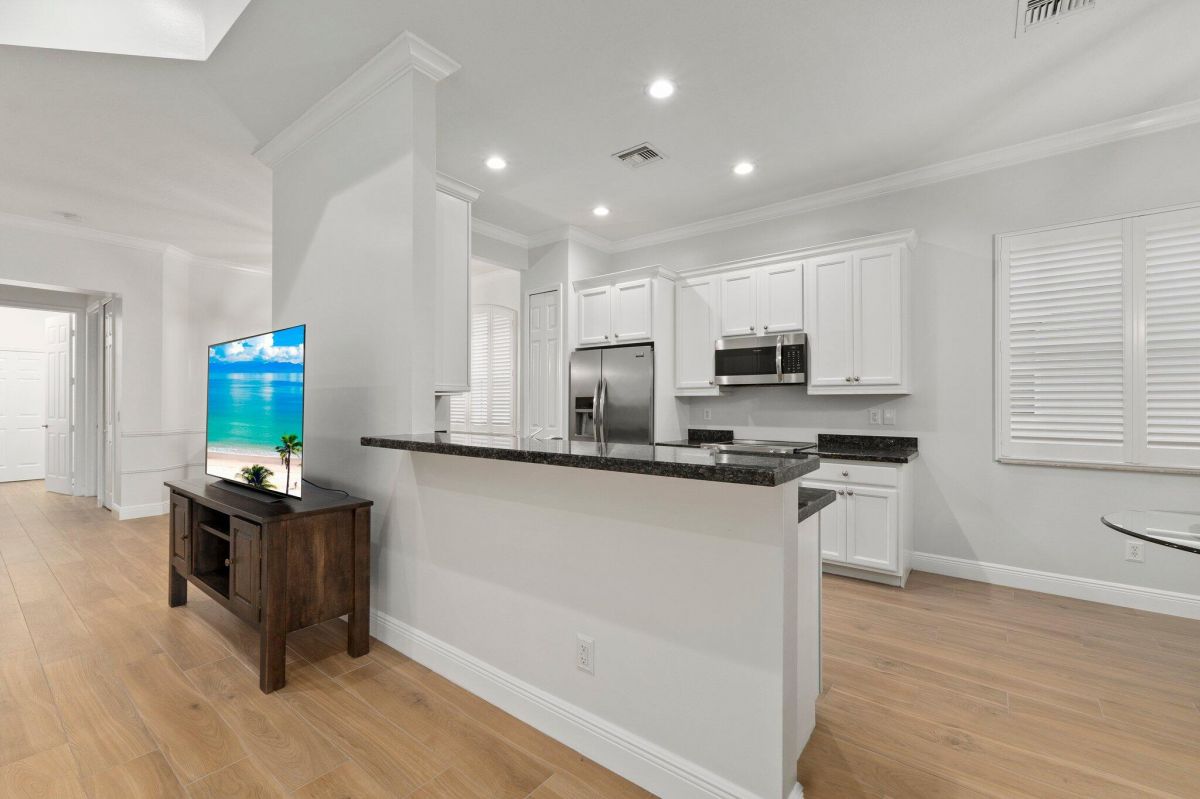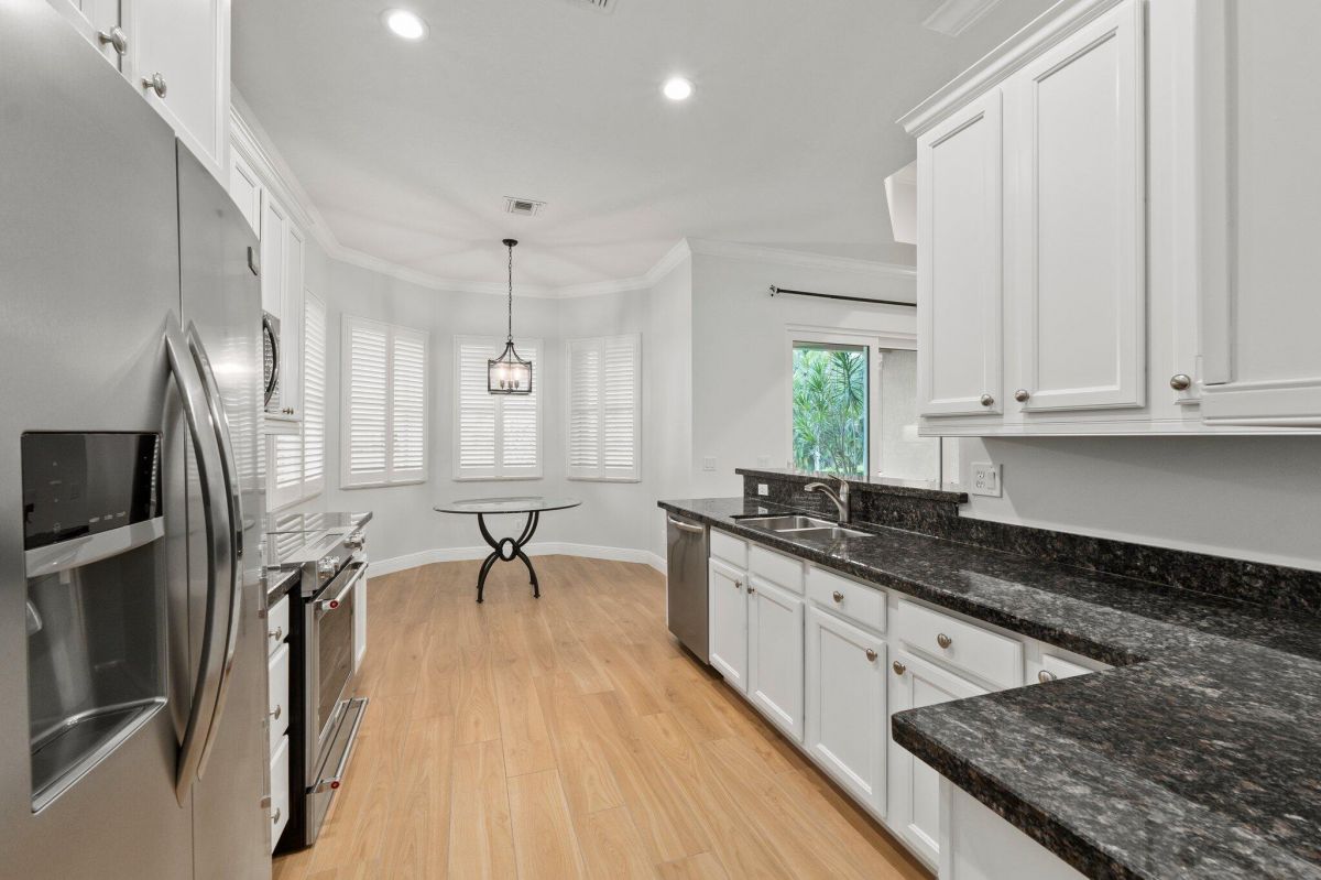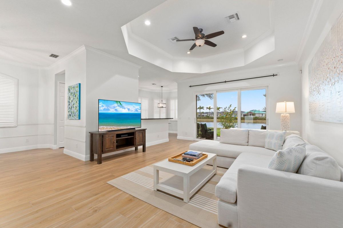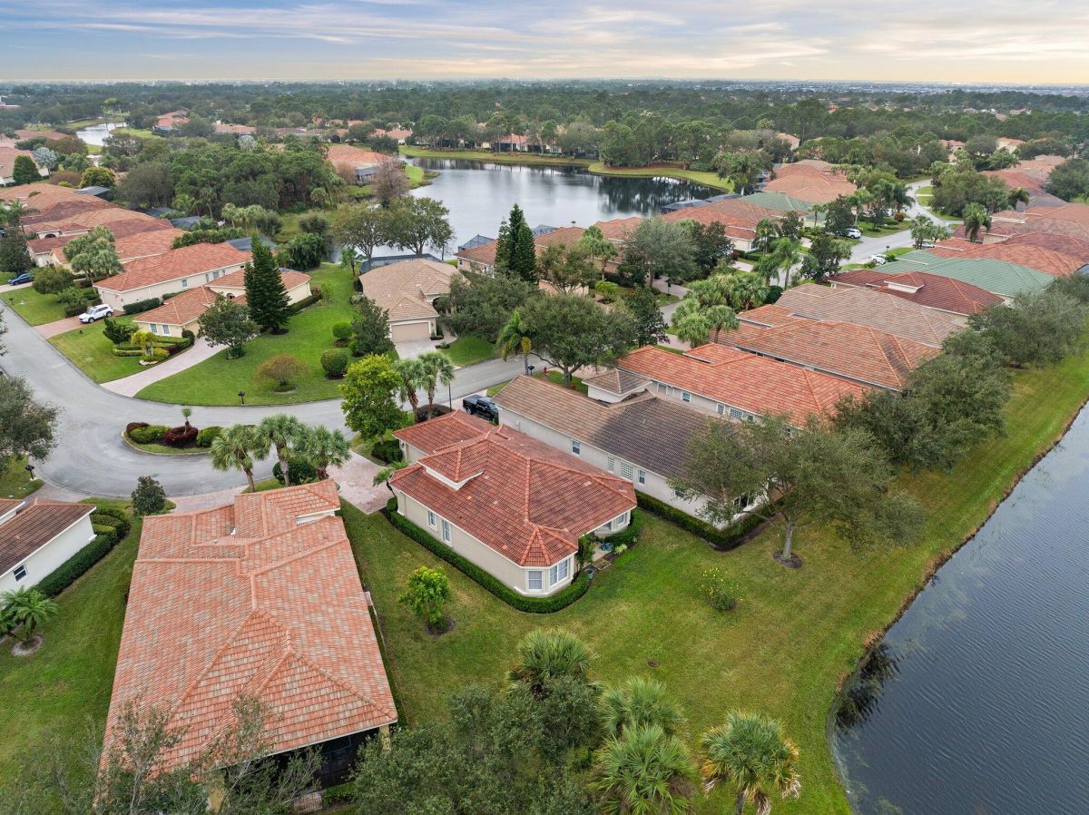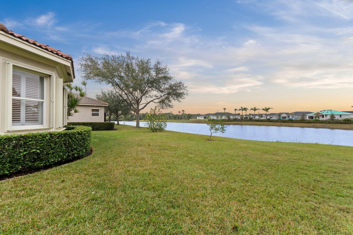 Welcome to this beautiful lakeside home in PGA Village, Ranked among the Best Golf Resorts by Golf Digest! Featuring 3 bedrooms, 3 bathrooms, and a 2-car garage in a serene cul-de-sac. Spanning 1,789 sq ft, this inviting residence boasts plantation shutters, crown molding, and freshly painted interiors, complemented by updated tile floors and recessed lighting. The beautiful kitchen is a chef's dream with stainless steel appliances, white cabinetry, and ample granite counter space, including a breakfast nook and pantry. The spacious master bedroom features a tray ceiling and spa-like master bathroom with dual vanities, a standalone tub, and a walk-in shower with frameless glass. Additional highlights include an inside laundry area with GE top loaders, a sink, and cabinets for storage.