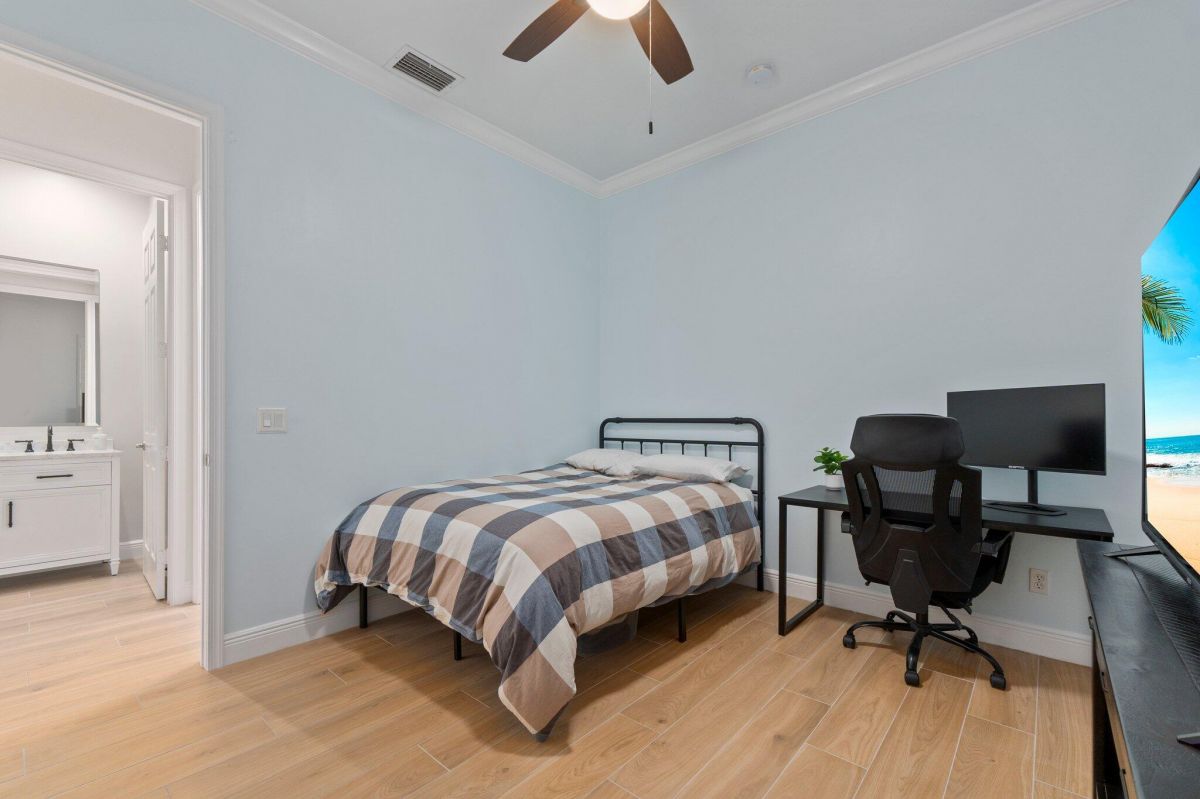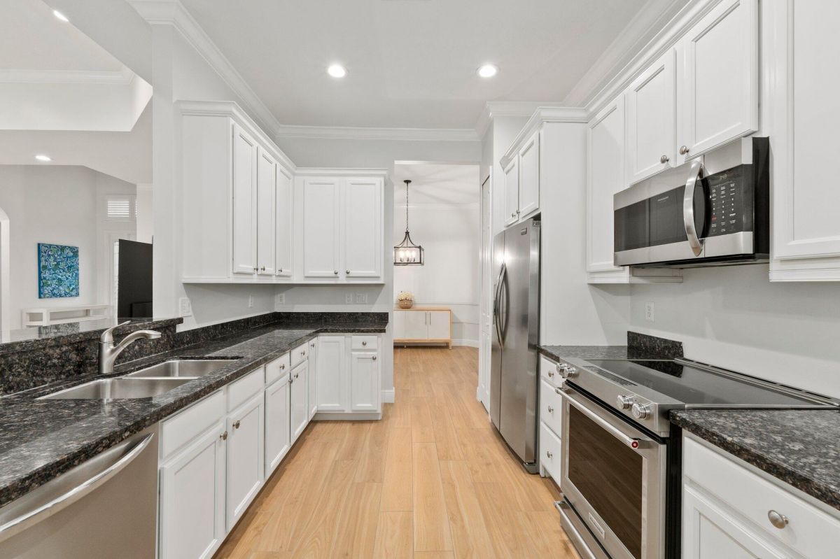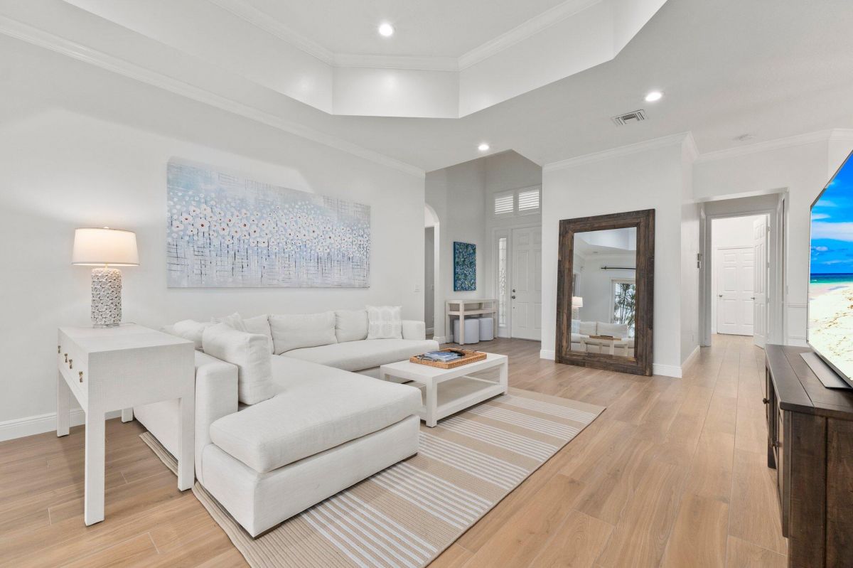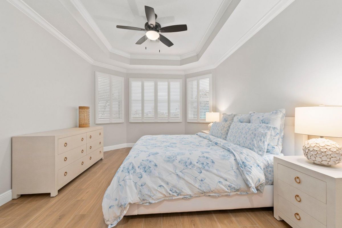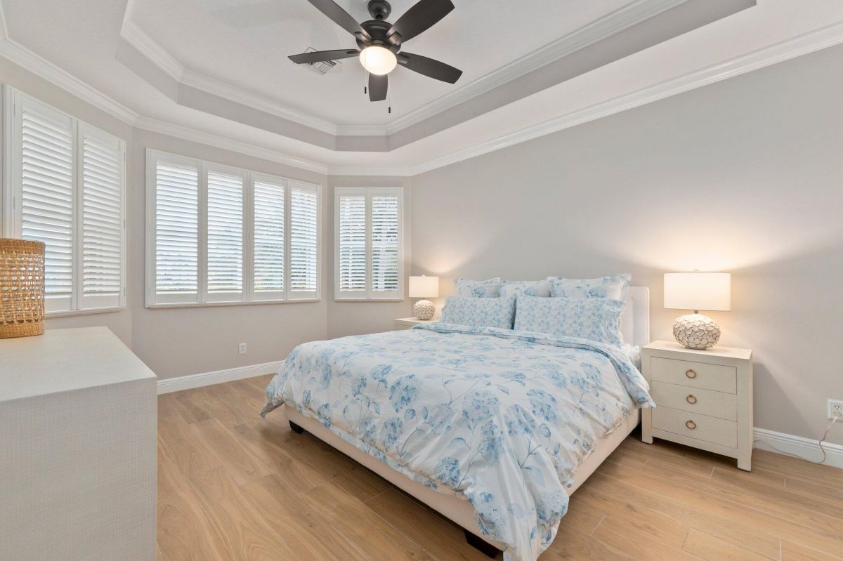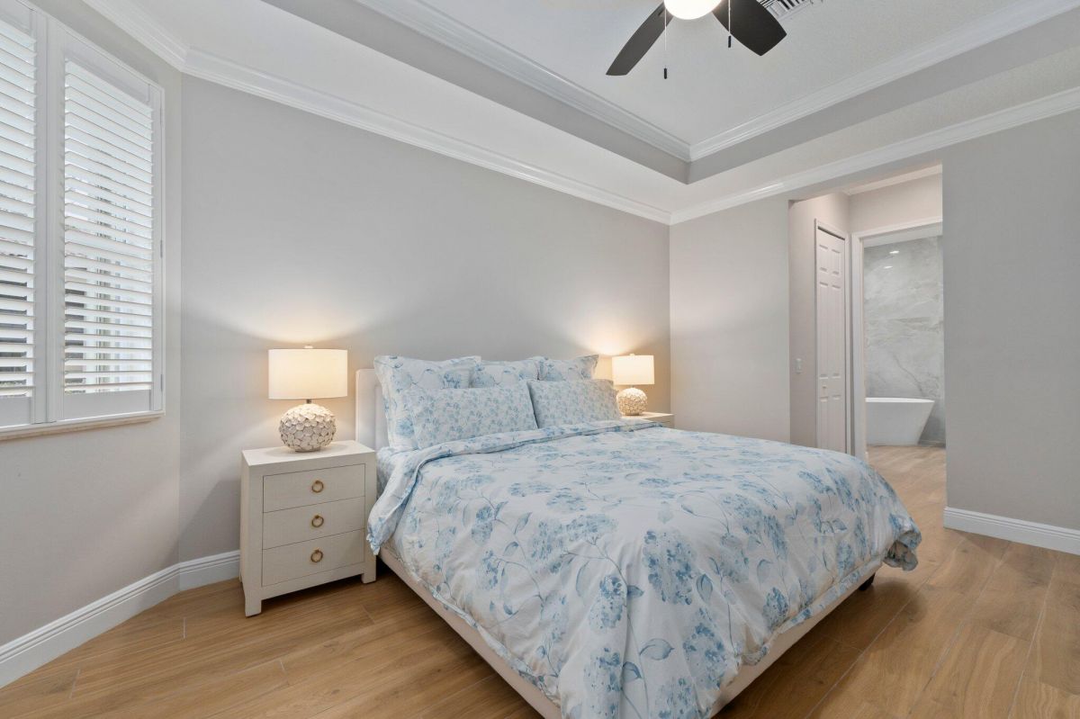 Welcome to this beautiful lakeside home in PGA Village, Ranked among the Best Golf Resorts by Golf Digest! Featuring 3 bedrooms, 3 bathrooms, and a 2-car garage in a serene cul-de-sac. Spanning 1,789 sq ft, this inviting residence boasts plantation shutters, crown molding, and freshly painted interiors, complemented by updated tile floors and recessed lighting. The beautiful kitchen is a chef's dream with stainless steel appliances, white cabinetry, and ample granite counter space, including a breakfast nook and pantry. The spacious master bedroom features a tray ceiling and spa-like master bathroom with dual vanities, a standalone tub, and a walk-in shower with frameless glass. Additional highlights include an inside laundry area with GE top loaders, a sink, and cabinets for storage.