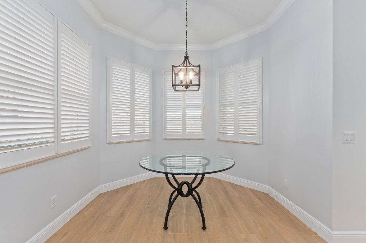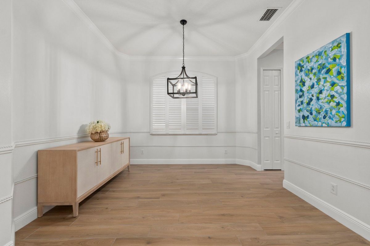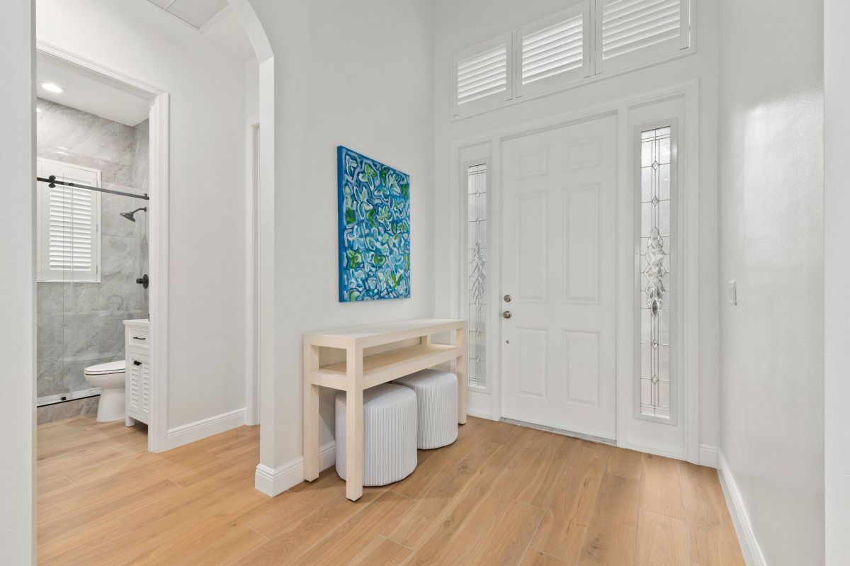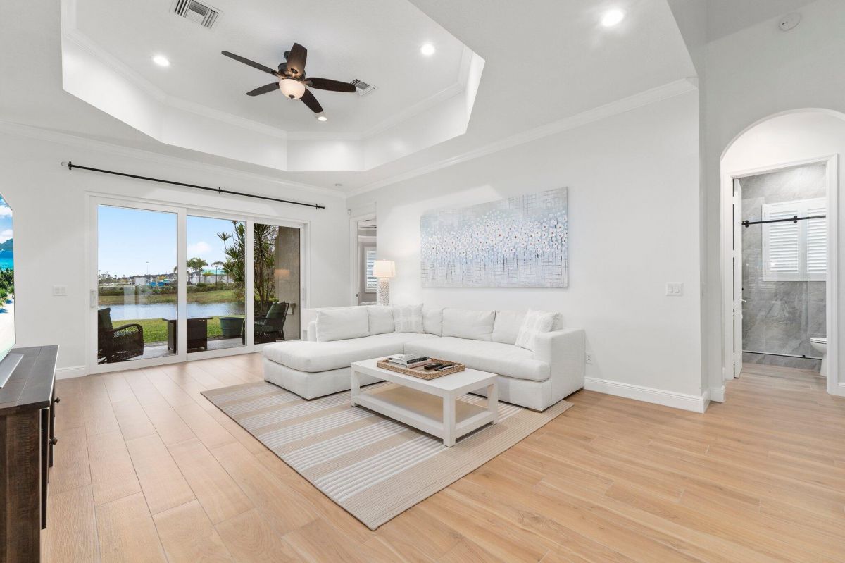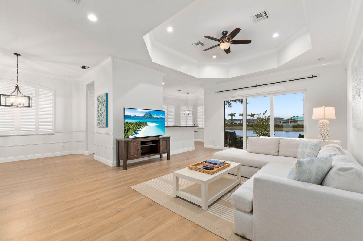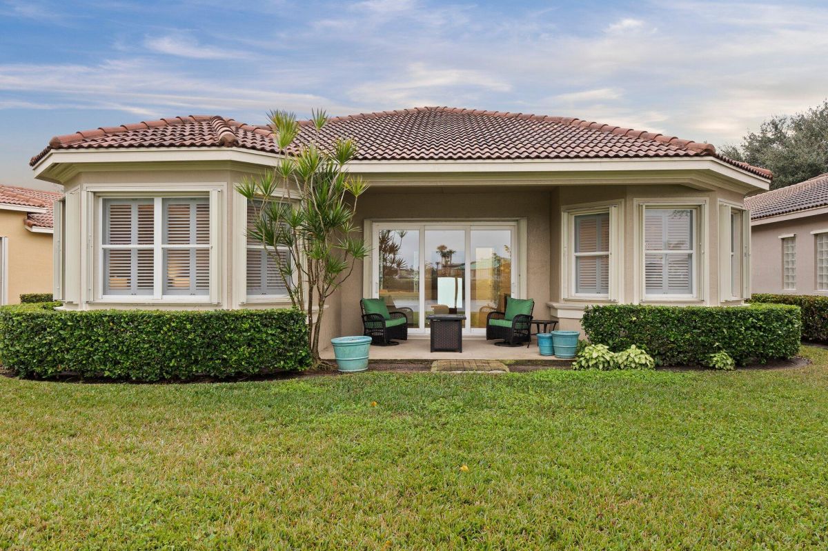 Welcome to this beautiful lakeside home in PGA Village, Ranked among the Best Golf Resorts by Golf Digest! Featuring 3 bedrooms, 3 bathrooms, and a 2-car garage in a serene cul-de-sac. Spanning 1,789 sq ft, this inviting residence boasts plantation shutters, crown molding, and freshly painted interiors, complemented by updated tile floors and recessed lighting. The beautiful kitchen is a chef's dream with stainless steel appliances, white cabinetry, and ample granite counter space, including a breakfast nook and pantry. The spacious master bedroom features a tray ceiling and spa-like master bathroom with dual vanities, a standalone tub, and a walk-in shower with frameless glass. Additional highlights include an inside laundry area with GE top loaders, a sink, and cabinets for storage.