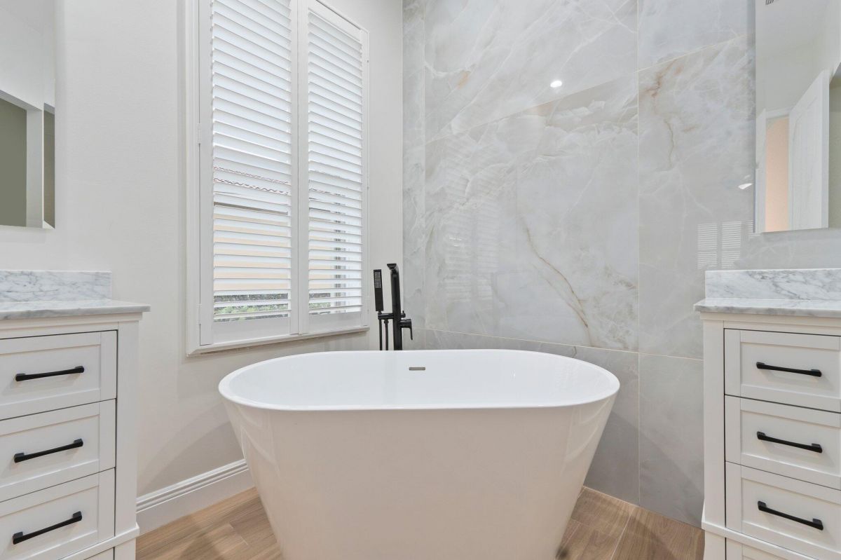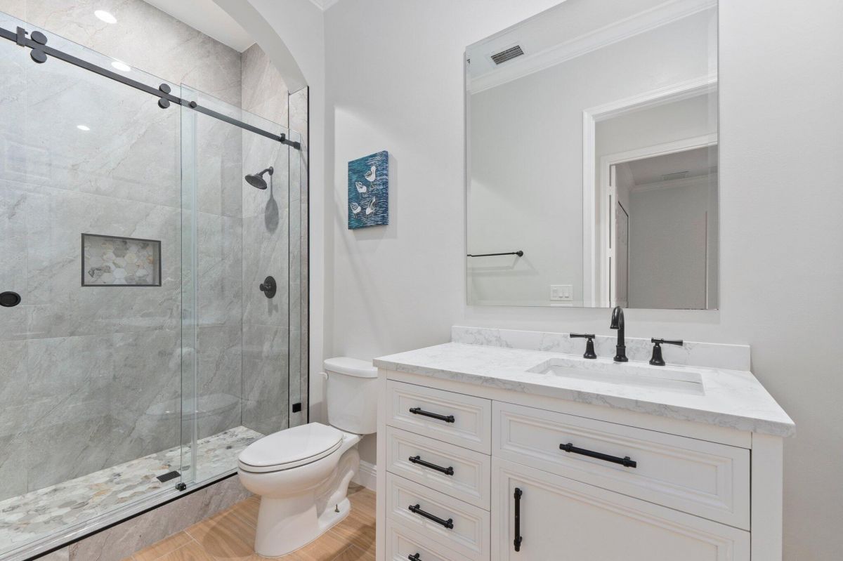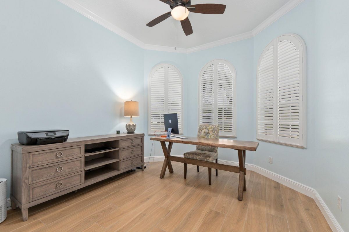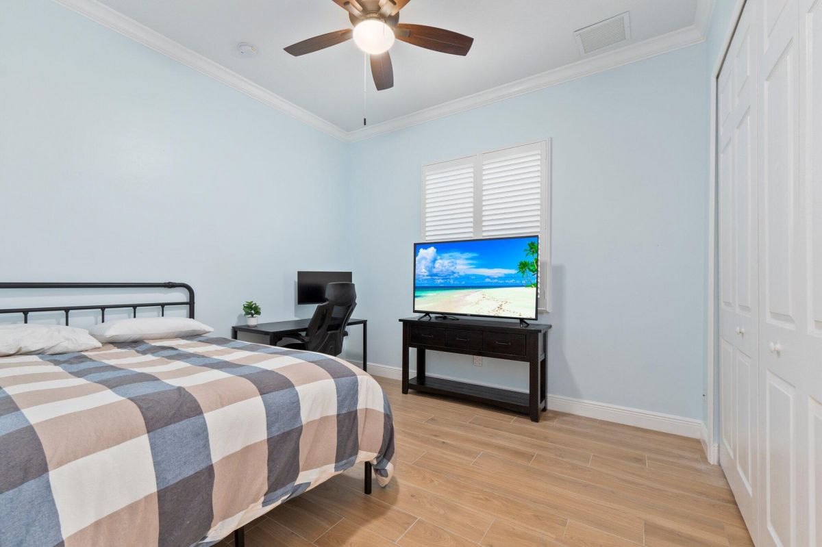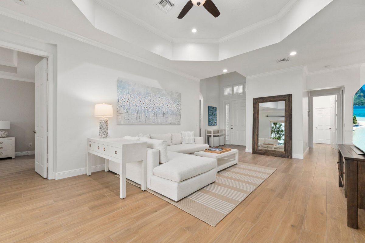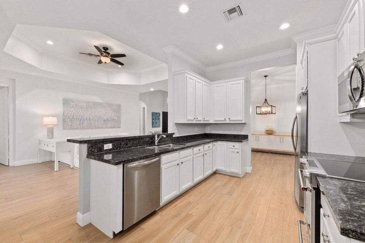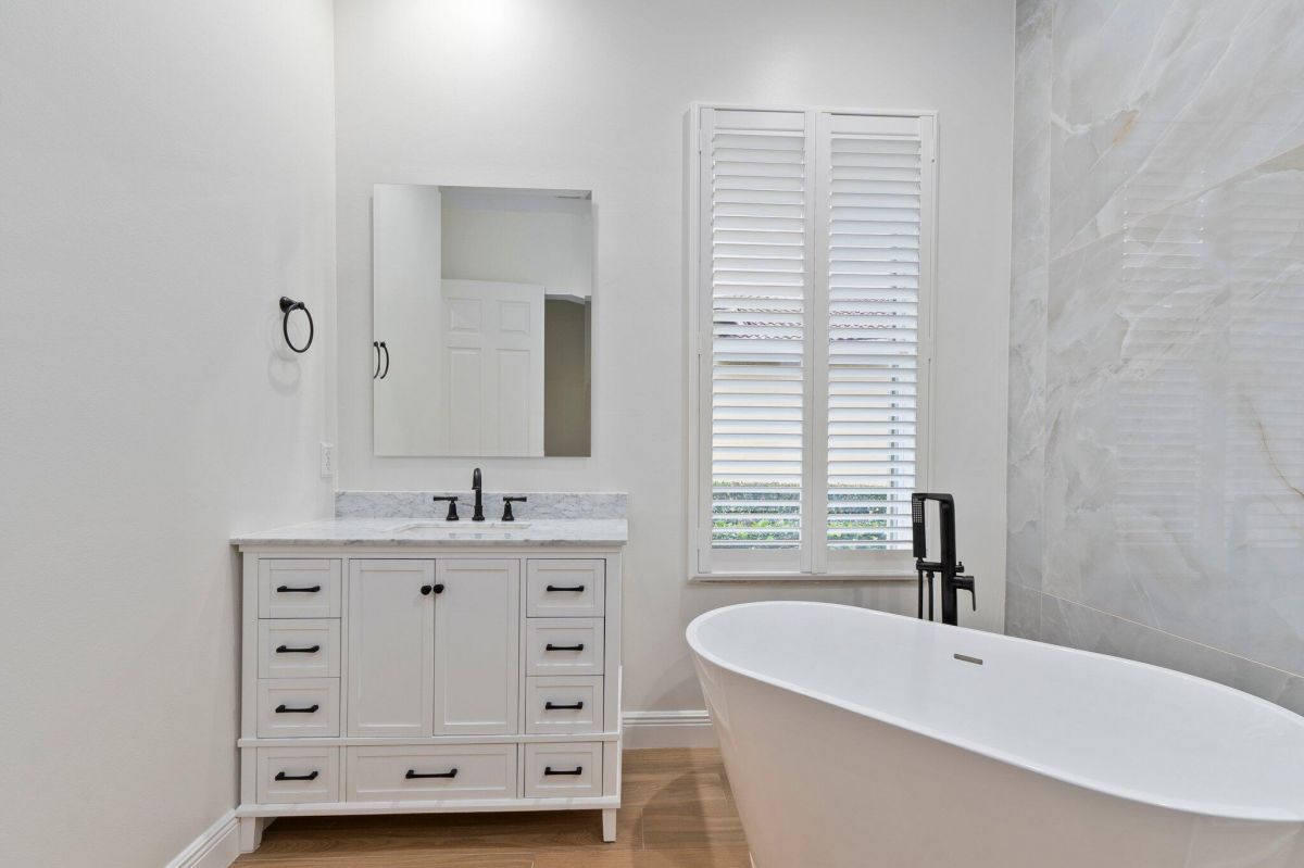 Welcome to this beautiful lakeside home in PGA Village, Ranked among the Best Golf Resorts by Golf Digest! Featuring 3 bedrooms, 3 bathrooms, and a 2-car garage in a serene cul-de-sac. Spanning 1,789 sq ft, this inviting residence boasts plantation shutters, crown molding, and freshly painted interiors, complemented by updated tile floors and recessed lighting. The beautiful kitchen is a chef's dream with stainless steel appliances, white cabinetry, and ample granite counter space, including a breakfast nook and pantry. The spacious master bedroom features a tray ceiling and spa-like master bathroom with dual vanities, a standalone tub, and a walk-in shower with frameless glass. Additional highlights include an inside laundry area with GE top loaders, a sink, and cabinets for storage.
