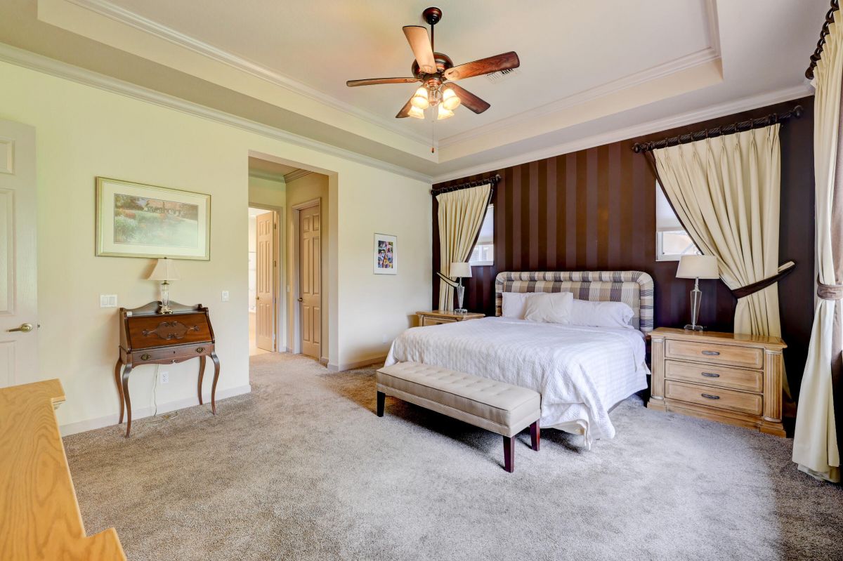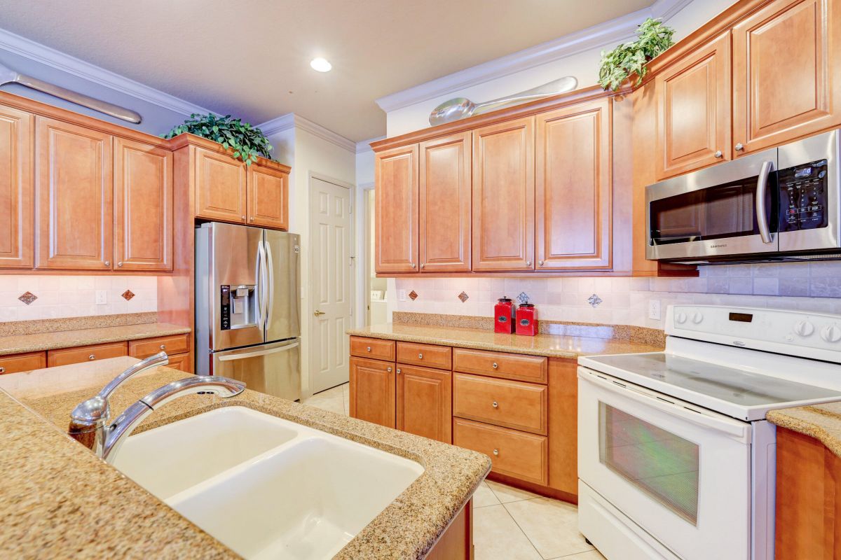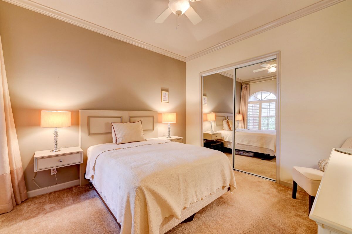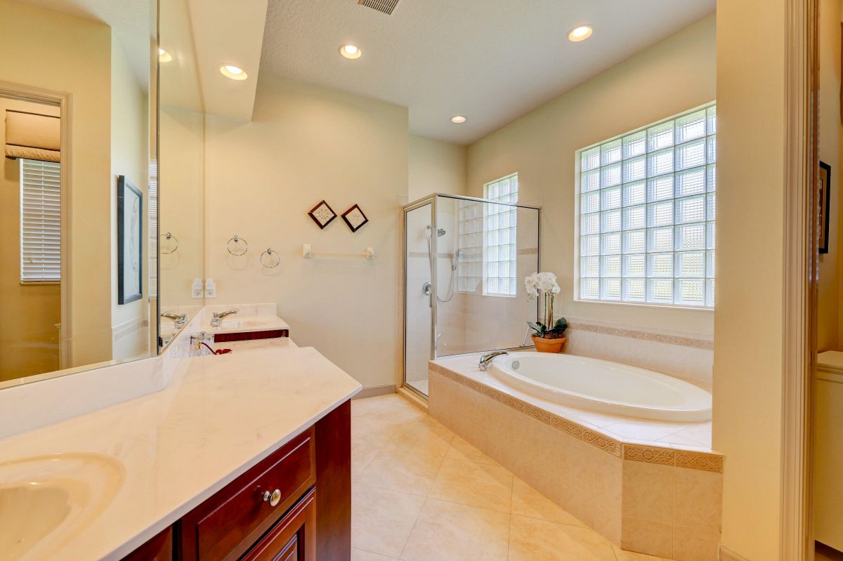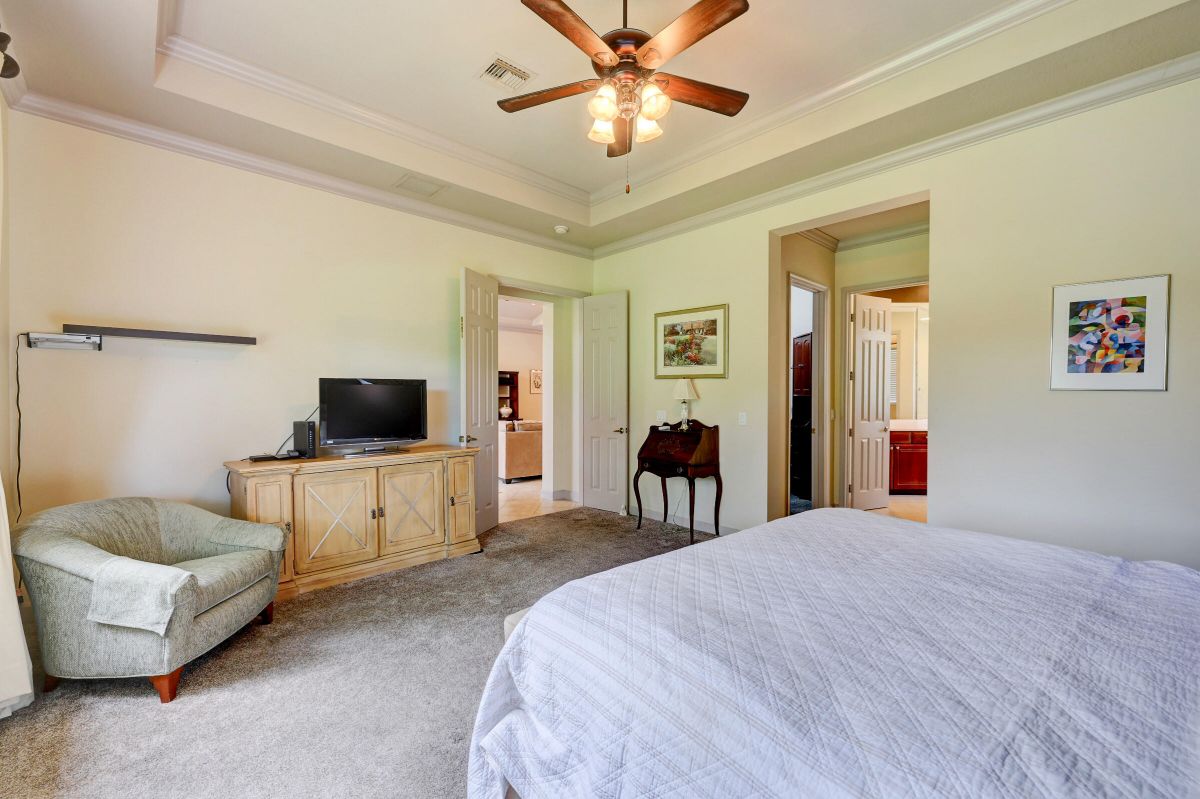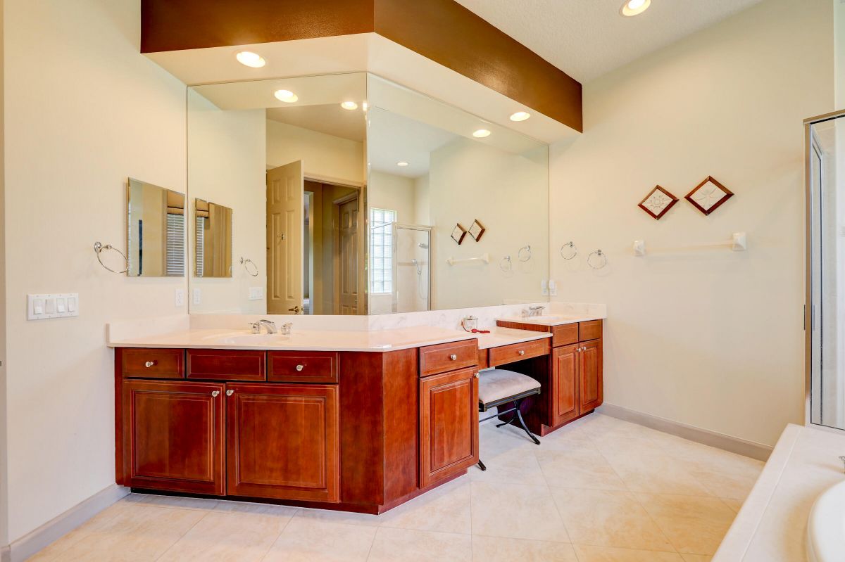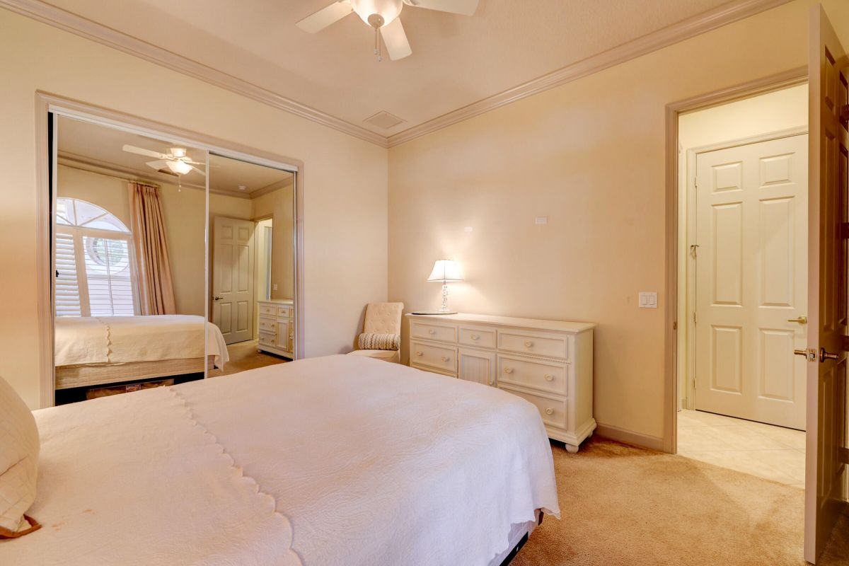 Lovely Home in PGA Village offers 2-BR + Den, 2-Bath, 2-car garage and a well-designed layout with ample space. Open Floorplan features vaulted ceiling with transom windows adding a touch of elegance. Enjoy Entertaining Family & Friends in the Spacious Kitchen: ample cabinets, granite, tile backsplash, pantry. closet. Oversized Primary Suite features Luxurious Bath - soaking tub, walk-in shower, large vanity, dual sinks, linen closet & dual walk-in closets, custom shelving. Enjoy Florida Living with your morning coffee on the extended, screened lanai overlooking the serene lake. Overall, this PGA Village home offers combination of functional living, desirable features, & PGA Golf Club membership available but not required thus attractive for the Florida lifestyle.