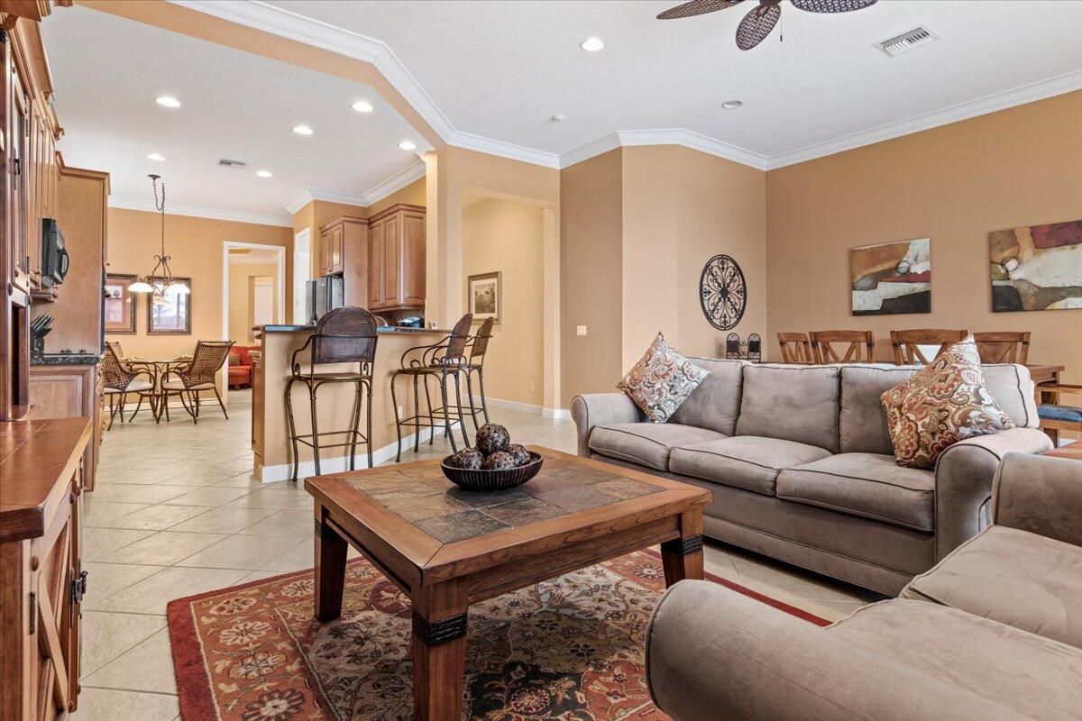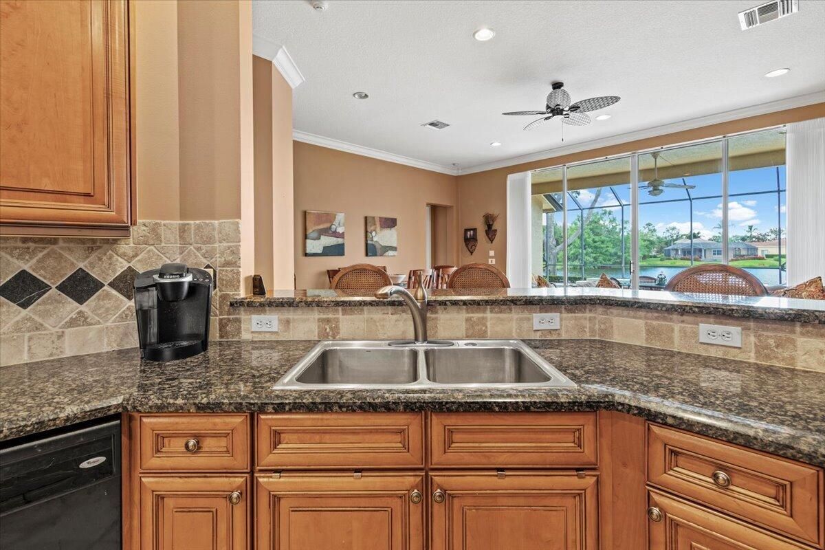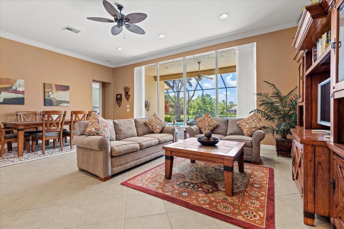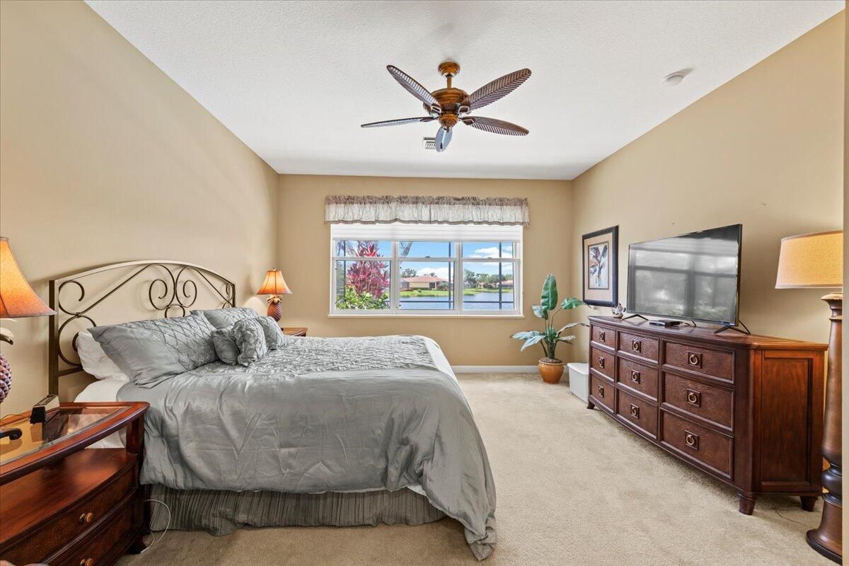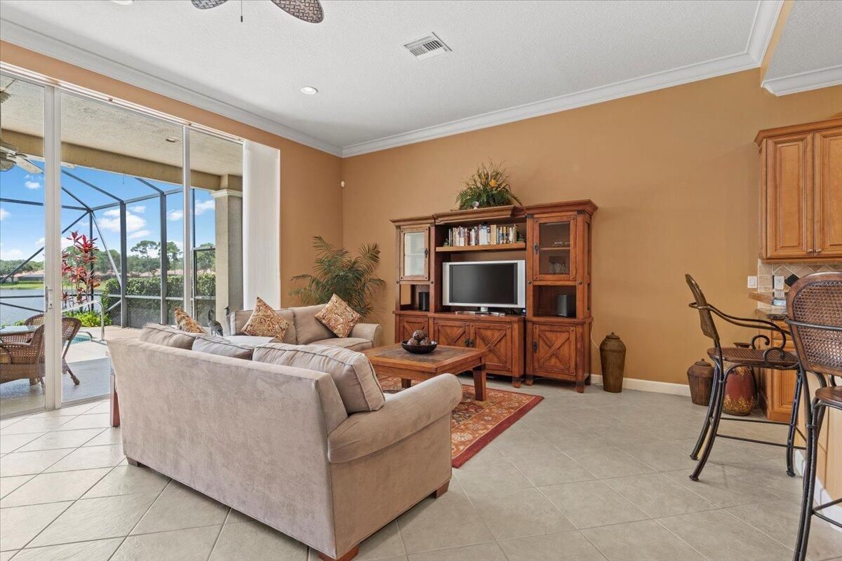 Step into luxury with this stunning Medinah model boasting 3-bedroom, 3-bathroom and a pool with breathtaking long lake views. As you enter through the double doors, you're greeted by a gourmet kitchen featuring double ovens, a cook-top range, granite countertops, and stone backsplash. The home is adorned with crown molding, decorative light fixtures, and fans throughout. Unwind and entertain on the beautiful lanai overlooking the sparkling pool and lake view. This home also offers convenient roll hurricane shutters and marvelous, lush landscaping. Too many other desirable features to mention here so make a call for an appointment and come and see it! Call now!