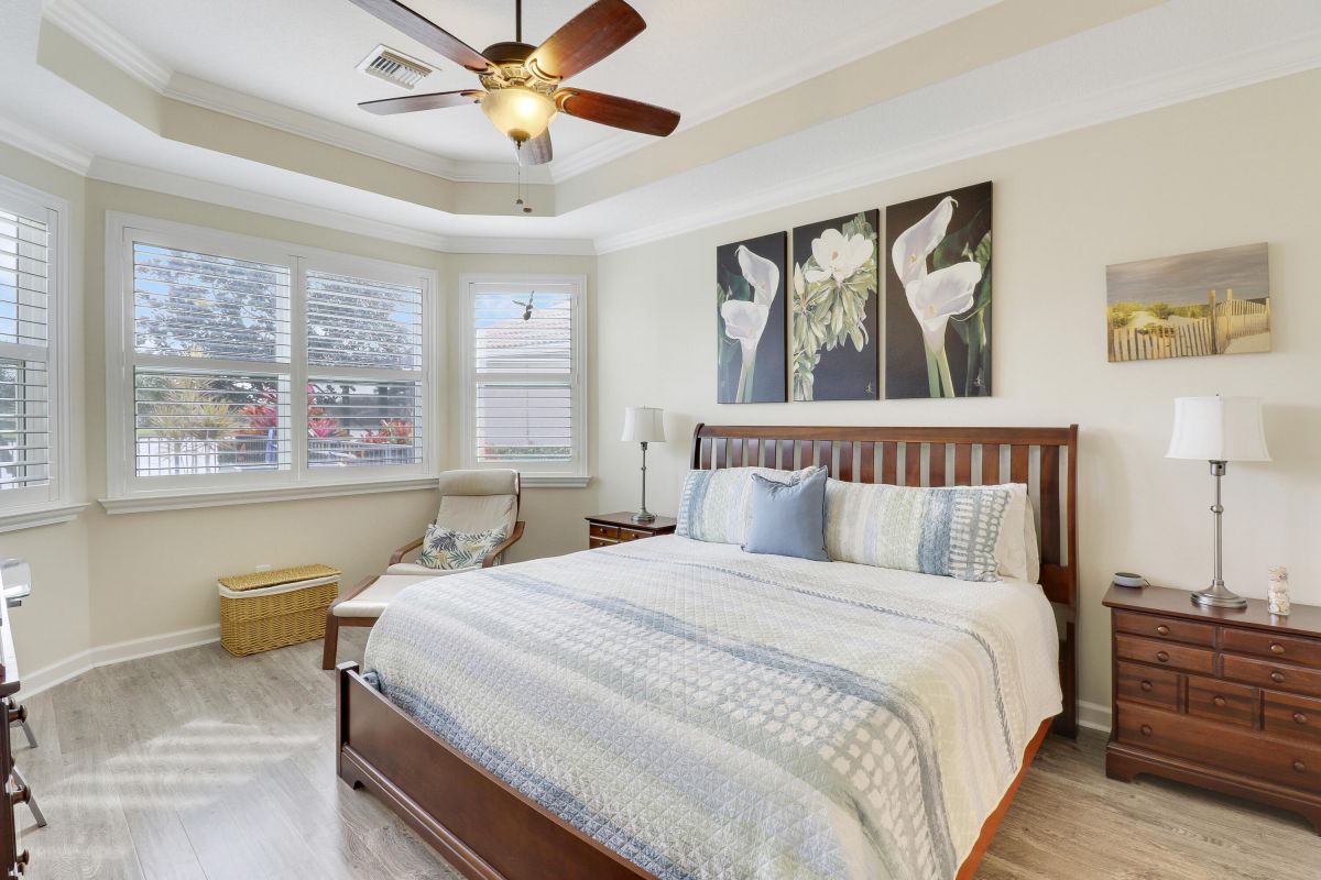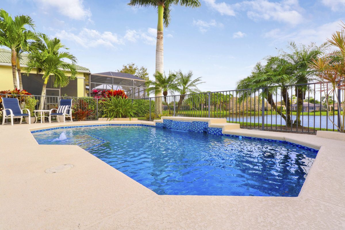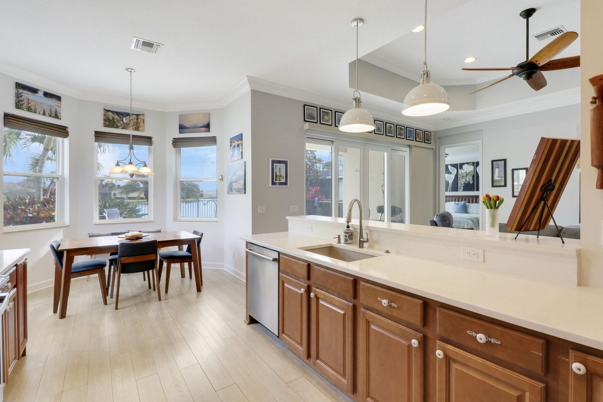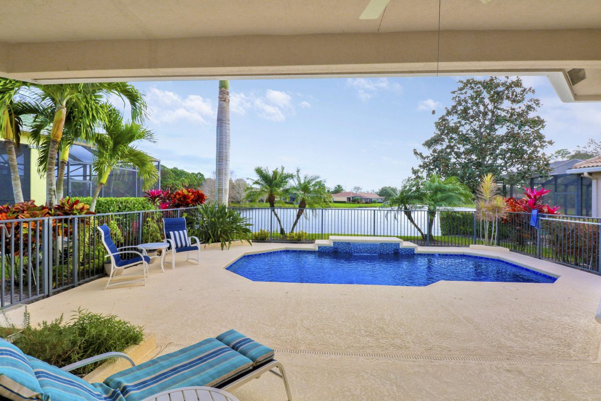 RARE OPPORTUNITY! POOL HOME WITH IMPACT GLASS WINDOWS & DOORS IN PGA VILLAGE! This 3BR/2BA/2CG home has the perfect combination! Long lake views will catch your eye as soon as you come through the door. Hard surface flooring runs t/o most of the home. Recently updated kitchen overlooks the lake and features quartz counters, single basin sink, breakfast bar with extended counter space, pendant lighting, induction stove, tile backsplash, pullouts in the pantry, dining nook and SS appliances. The master suite overlooks the back yard and features charming bay window, crown molding, dual closets, tray ceiling and ensuite w/ dual vanities, soaking tub and frameless glass shower. Two guest bedrooms share an updated hall bathroom and the laundry room has front loading machines and utility sink.