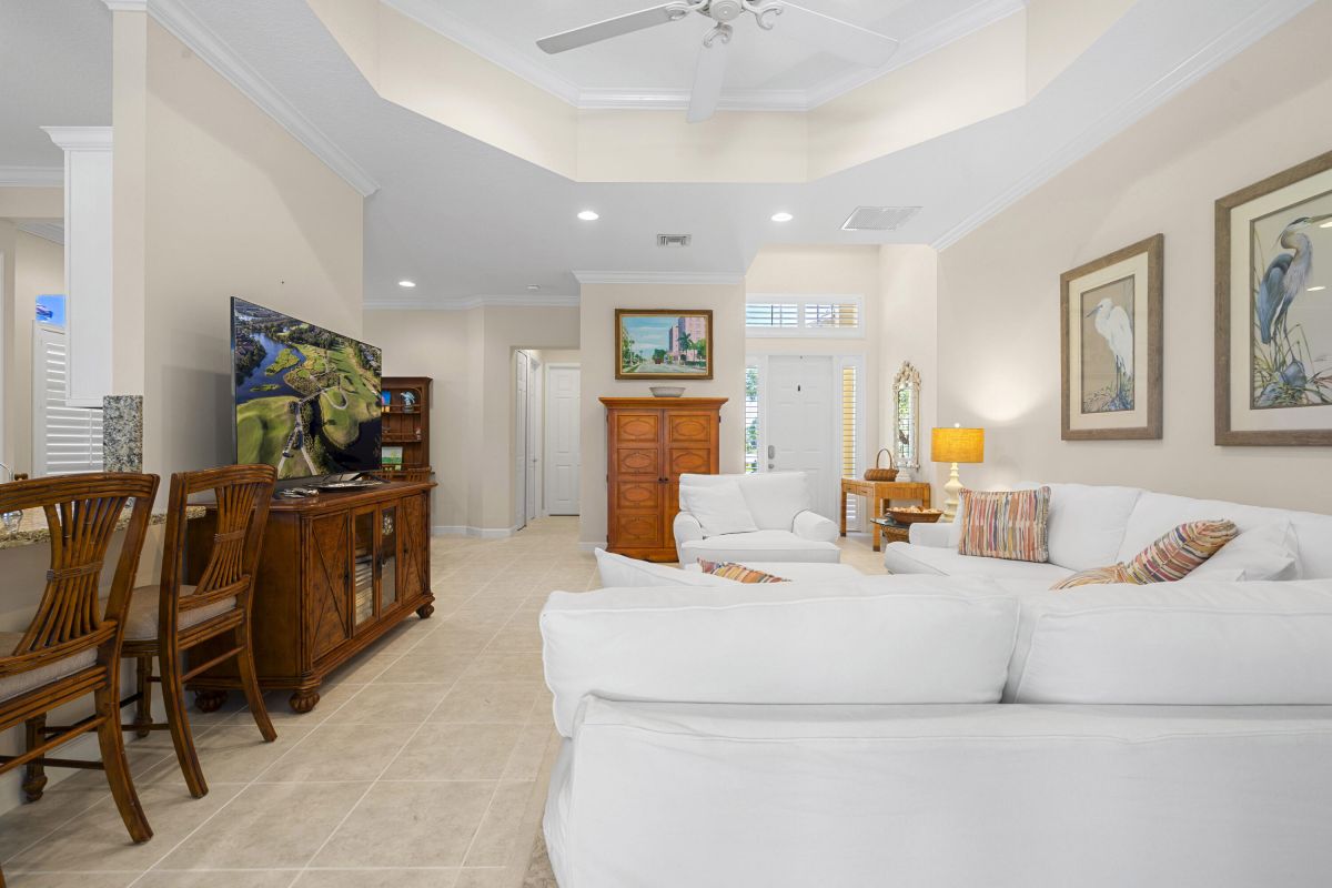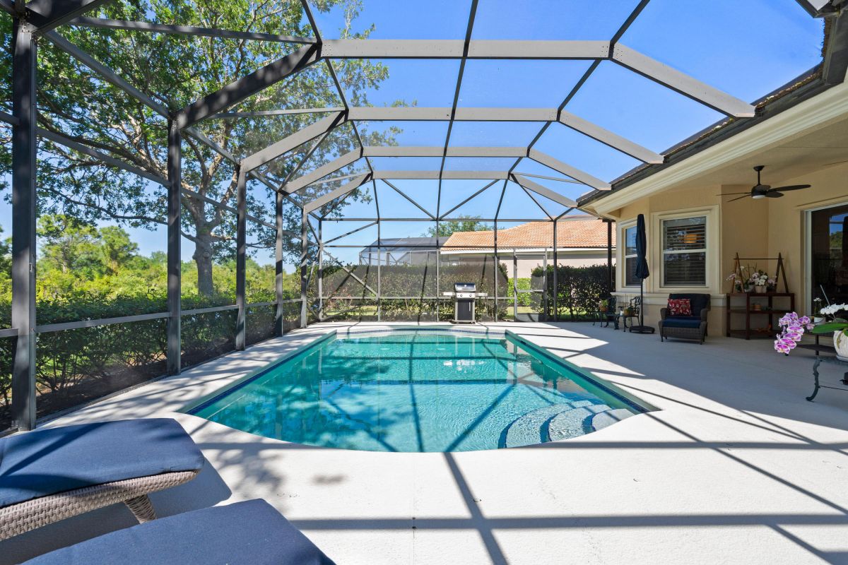 54 holes of championship golf at PGA Golf Club, designed by Tom Fazio and Pete Dye plus an additional 18 holes at the Legacy Club. This home has some of the best lake views in PGA Village. No neighbors in the background. Landscaped for privacy. Salt water pool. 3 FULL baths. Very well maintained. COUNTY ONLY TAXES in PGA Village.HOA dues include basic cable, internet, lawn care, security, common area maintenance and access to the Island Club. Pickleball, tennis, resort style pool, exercise rooms, ballroom, billiards, group activities, and more. Third bedroom could be used as a den as there is no closet.