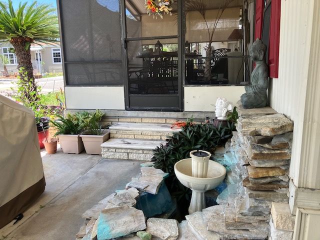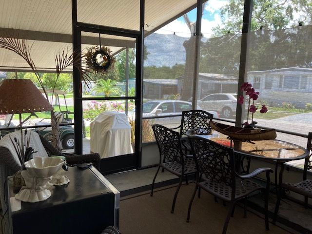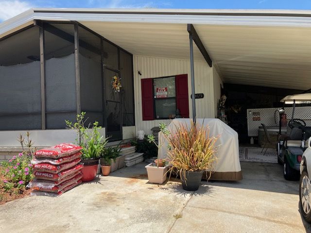 Beautiful fully furnished home with front raised screened lanai with sliding glass doors going into the living room. There is another large screened lanai on the side of home. There is a large 13 x 20 attached utility shed with work bench. There is another large 10 x 20 Lark shed in the back yard. There is a double driveway and carport. The kitchen has all stainless steel appliances that will remain with the home. The microwave is above the range. There is a warranty on all of the appliances that can be assumed. There is also a large pantry. The kitchen also has beautiful granite countertops and wood cabinets. The flooring is vinyl flooring throughout that looks like wood flooring. The two bathrooms and kitchen have ceramic tile flooring. If you don't want the furniture, the price is negotiable. MUST SEE!!!
