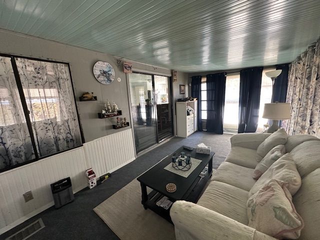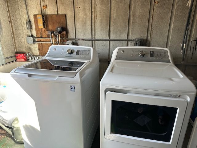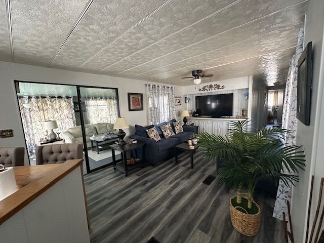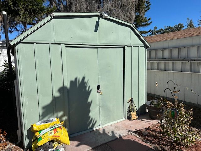 Beautiful partially furnished home with very large raised screened lanai with sliding glass doors to the living room. There is also a new smaller screened lanai on the other side of the home. There is a bay window in front in the kitchen. All appliances stay with the home including a new glass top range, refrigerator, and microwave. Three year old washer and dryer are located in the utility shed. A/C unit is 4 years old. There is wood laminate flooring throughout with vinyl in the bath. The 4 ceiling fans are all new. Home has been newly painted. One sofa will stay along with a double size bed in the spare bedroom. The bathroom is all new. Window treatments stay. Very pretty home and you MUST SEE!!!