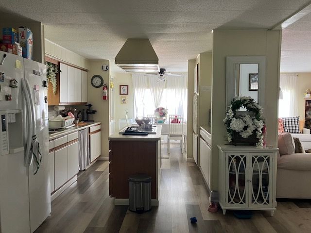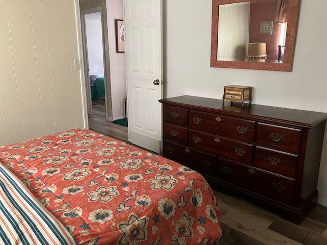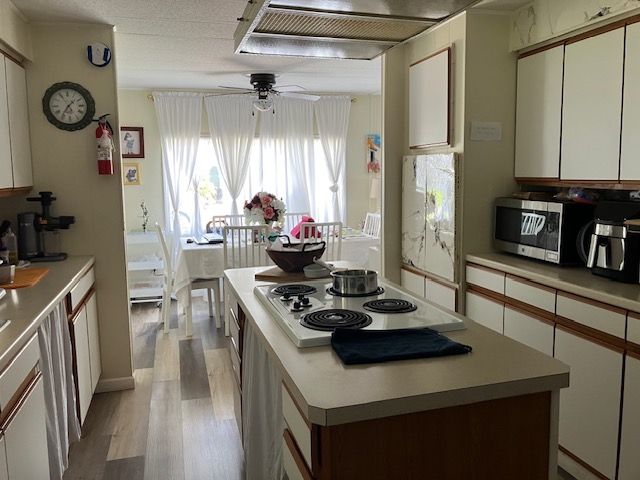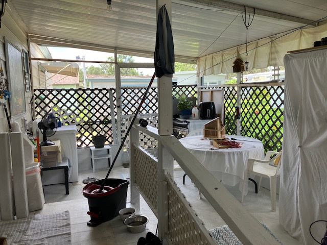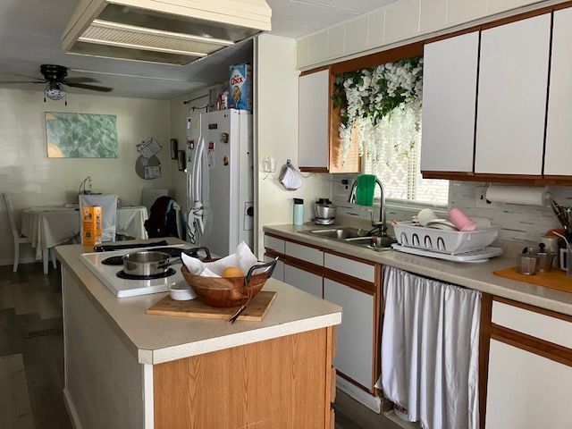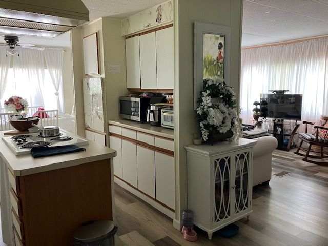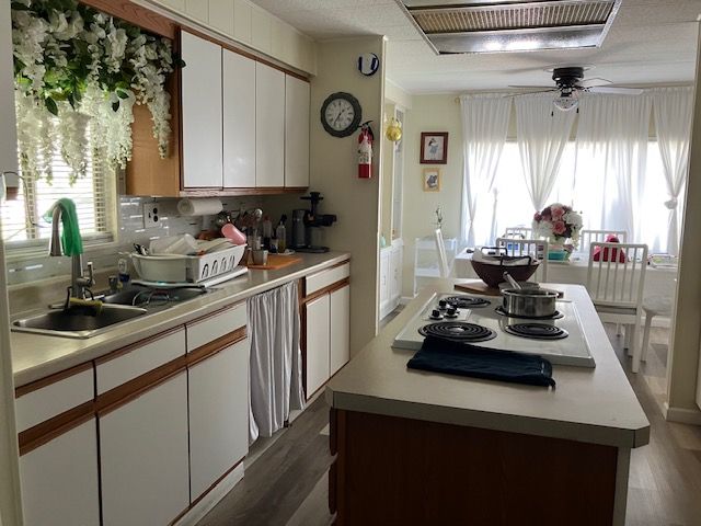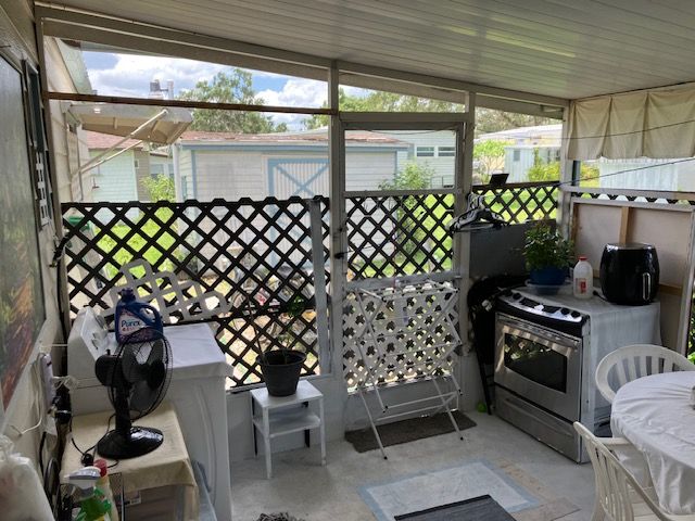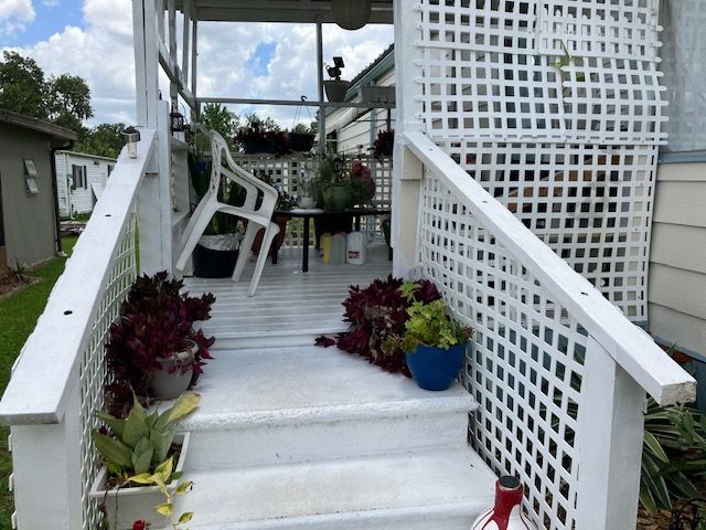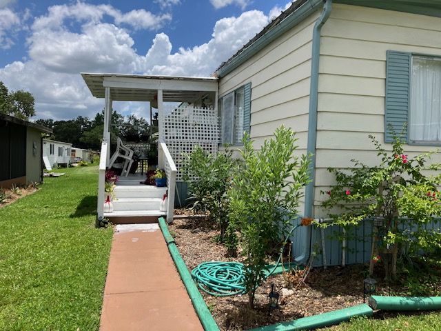 Beautiful newly remodeled fully furnished 3 bedroom 2 bath home. New subfloors and new waterproof laminate flooring throughout. All new ceiling fans, new walk-in showers in both bathrooms, newly painted inside and out. All of the inside doors are new. There is an island in the kitchen with range top and storage underneath. All appliances remain with home. Washer and dryer are inside the home. There is a lanai at the right side of the home with sliding glass doors going into the kitchen area and there is a handicap ramp on one side and steps on the other side. Bedrooms have walk-in closets. Beautiful landscaped yard and a large shed in back. There is a covered wood deck on the other side of the home. Home is immaculate and window treatments remain with the home. MUST SEE!!!