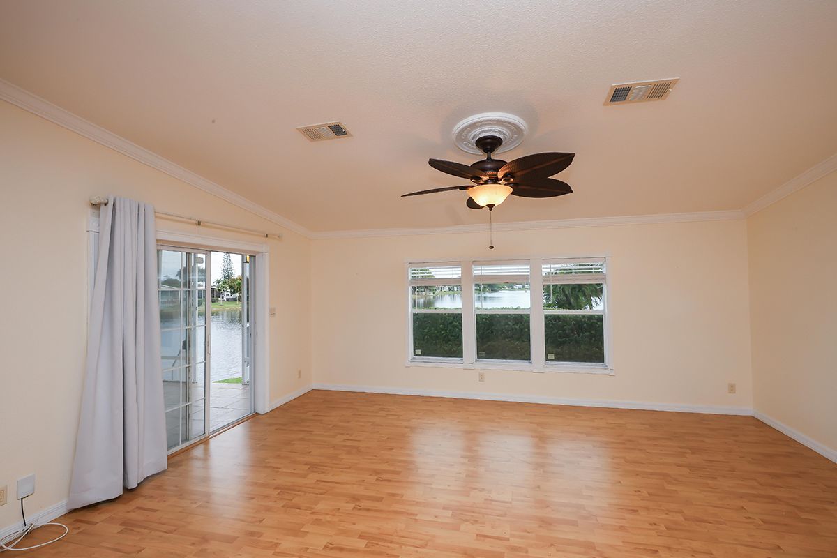 Coveted location on the lake with back deck on the lake Knock down / tape & textured walls Stainless steel appliances (including new refrigerator) Granite counters Marble Windowsills Hardwood Laminate & Ceramic tile flooring (no carpet) Stylish ceiling fans Master bedroom features upgraded en suite bath with his and hers sinks Beautifully staged community owned home: easy to show and fast close possible