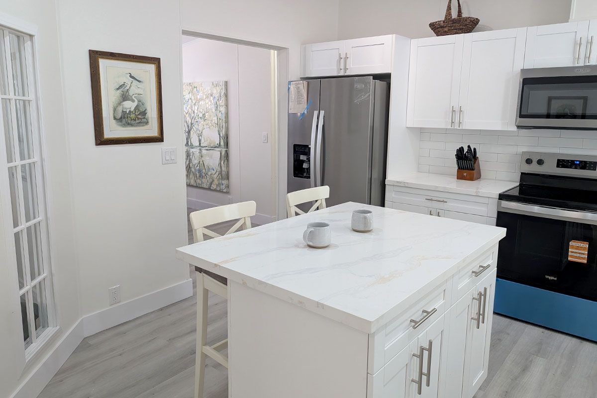 "Chocolate Pistachio" is a positively delectable dwelling. The discerning eye will notice many sweet high end details throughout this wonderful, community-owned and remodeled home -- including lovely hardwood laminate flooring, stylish baseboard and crown molding, a beautiful kitchen, new higher end stainless steel appliances, generous storage, designer quartz counter tops, subway tile back splash, a stainless steel sink with upgraded hardware, stylish light fixtures and decorative paned glass panels. The ample living room features an wall of shelving and entertainment cabinetry, and has an attractively partitioned yet contiguous dining area and kitchen. The master suite features a massive walk-in closet and charming French doors leading to the master bath, which is equipped with his-and-her sinks, and a gorgeous designer shower along with generous storage cabinets. Overnight visitors will appreciate the spacious guest bedrooms along with walk-in closets. The utility room has built-in cabinetry to keep laundry time neat and efficient. This home's climate control system, including central air/heat and ceiling fans throughout, will ensure you are always completely comfortable inside this oasis. The exterior of this house is equally attractive with its decorative shutters and tropical landscaping. The private backyard is a veritable oasis complete with a mango tree! Finally, like all homes in this desirable lakeside community, you will appreciate the off-street covered parking, your own 6x6 outdoor storage shed, and access to the community's extensive recreational amenities including enormous heated pool complex, new fitness center overlooking the pool and lake, tennis, basketball, clubhouse, sauna, relaxation room, lake recreation and more. To schedule a tour of this lovely home, call Rexmere Village sales and ask for "Chocolate Pistachio" #57/1-INV.