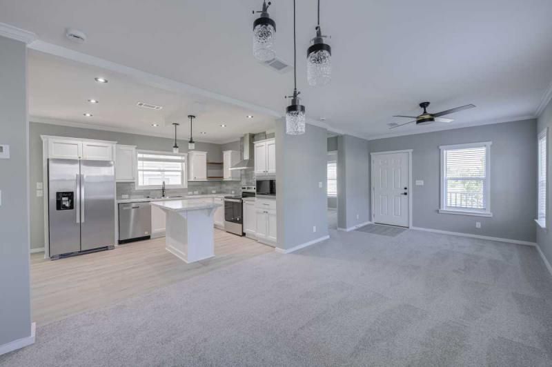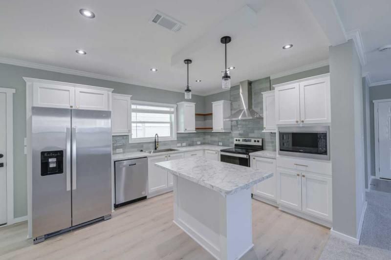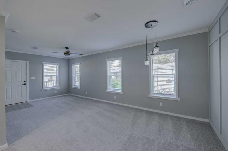 Welcome Home to your brand new 2 bedroom, 2 bath manufactured home which embraces an open concept design, offering spacious, seamless flow from living to dining to kitchen - perfect for entertaining friends or enjoy your covered front porch for peaceful quiet nights together. This sleek, modern manufactured home combines elegant interior finishes with a thoughtful layout and access to community level amenities-a perfect blend of comfort, convenience, and connection for vibrant retirement living in sunny Florida.