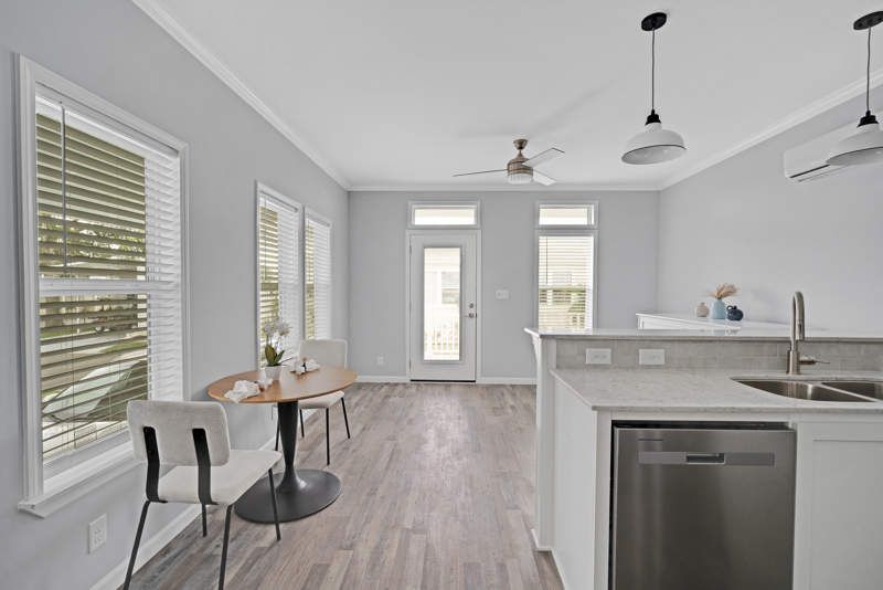 Enjoy your morning coffee or evening breeze from your elevated porch. Welcome to the sunny side of life in this beautiful NEW home. Luxury finishes and high end upgrades abound throughout this stylish 1 bedroom 1 bath home Custom credenza Murphy bed holds TV, is a comfy sleeping space for guests. Open concept living, dining area is wonderful for entertaining and great conversation. The kitchen features a custom countertop perfect for conversing with the chef. All high efficiency stainless steel appliances, farmhouse sink, refrigerator, dishwasher, built in microwave, upgraded cabinets. Mini split system provides the latest in cooling and heating technology. Pampered master bath with a large vanity and walk-in master shower. Luxury vinyl plank flooring throughout. Spacious storage shed holds all your holiday decorations. 2 car carport. Quiet side street. It is the details in this home that make the difference; come see for yourself! Sawgrass Trails at Lowe's City is an active, resort style, 55+ community in the vibrant city of St Petersburg. Close to relaxing area beaches as well as all the exciting downtown activities of St Pete, our gated community features a newly renovated clubhouse, heated pool, game courts, planned activities, bingo, cards, parties, potlucks, golf cart parades, etc.. Relax by the scenic pond. Homeowners have 24 hour access to club house with media room, billiards room, library with living room, exercise center and pickle ball court. Fur Babies Welcome! Yes, we allow up to 2 pets, 25lbs ea, to live with you in Sawgrass Trails. We have a wonderful Bark Park and a very social dog owner community. Only 15 minutes to scenic Downtown St. Pete and 25 minutes to area beaches.