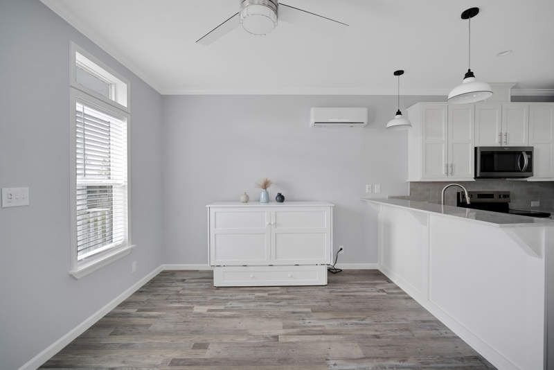 Enjoy your morning coffee or evening breeze from your elevated porch. Welcome to the sunny side of life in this beautiful NEW home. Luxury finishes and high end upgrades abound throughout this stylish 1 bedroom 1 bath home Custom credenza Murphy bed holds TV, is a comfy sleeping space for guests. Open concept living, dining area is wonderful for entertaining and great conversation. The kitchen features a custom countertop perfect for conversing with the chef. All high efficiency stainless steel appliances, farmhouse sink, refrigerator, dishwasher, built in microwave, upgraded cabinets. Mini split system provides the latest in cooling and heating technology. Pampered master bath with a large vanity and walk-in master shower. Luxury vinyl plank flooring throughout. Spacious storage shed holds all your holiday decorations. 2 car carport. Quiet side street. It is the details in this home that make the difference; come see for yourself! Sawgrass Trails at Lowe's City is an active, resort style, 55+ community in the vibrant city of St Petersburg. Close to relaxing area beaches as well as all the exciting downtown activities of St Pete, our gated community features a newly renovated clubhouse, heated pool, game courts, planned activities, bingo, cards, parties, potlucks, golf cart parades, etc.. Relax by the scenic pond. Homeowners have 24 hour access to club house with media room, billiards room, library with living room, exercise center and pickle ball court. Fur Babies Welcome! Yes, we allow up to 2 pets, 25lbs ea, to live with you in Sawgrass Trails. We have a wonderful Bark Park and a very social dog owner community. Only 15 minutes to scenic Downtown St. Pete and 25 minutes to area beaches.
