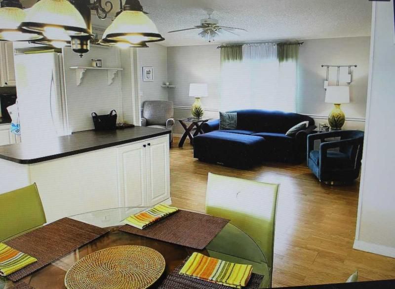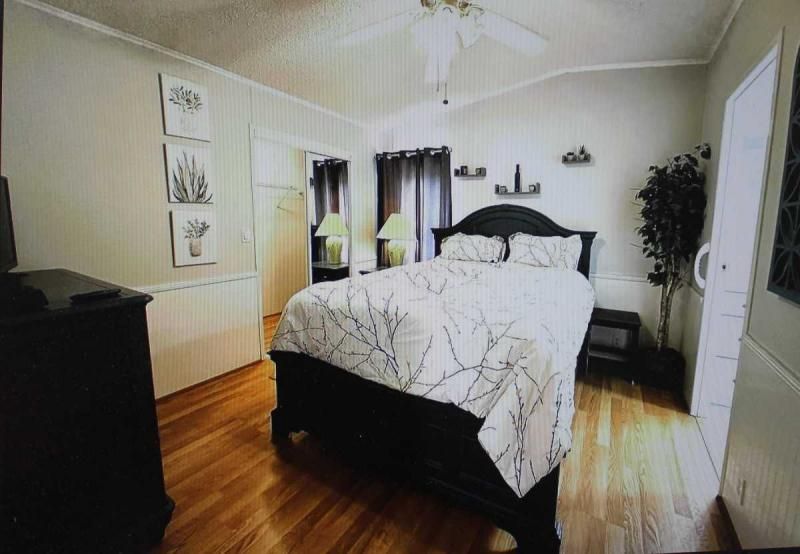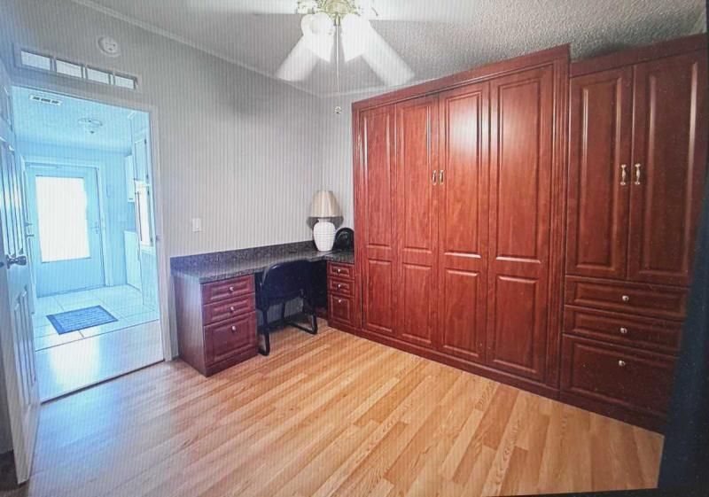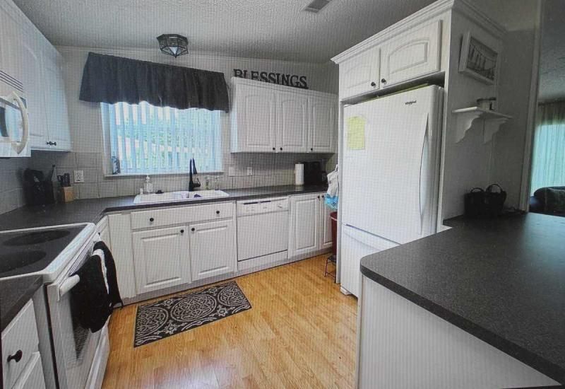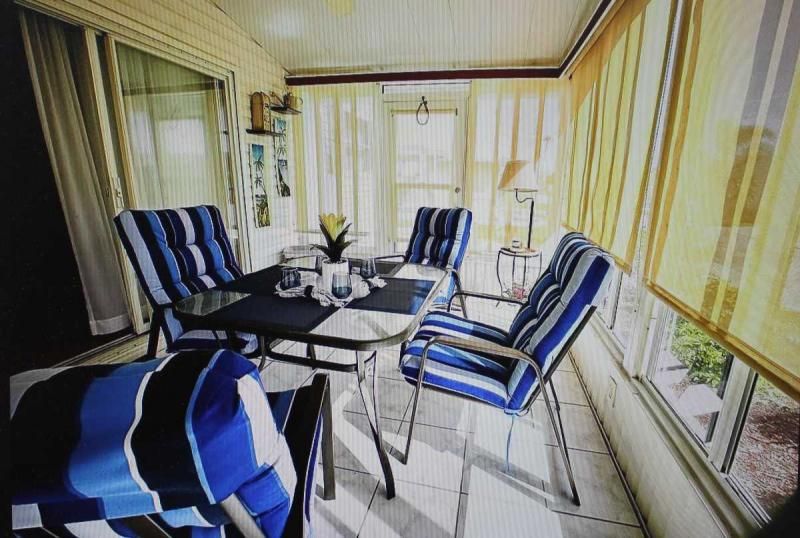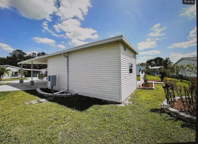 What a pretty curb apeal when entering this 2 bedroom home. ( FULLY FURNISHED &TURN KEY) All renovated and in an interior lot and has been emmaculately cared for. Spacious driveway with an extra large shed with a driveway for your golf cart. (Golf cart included) The front of the home is this quaint Lanai with A/C, tile floors, glass windows with sun shades. The sliding glass door enters into the living room. Walls have been painted interior with light nuetral colors. Pretty laminate flooring and tile in bathrooms and laundry. Kitchen has elegant white cabintry and white matching appliances with pantry along with pull out drawers. The primary bedroom has walk in closet and also stylish flooring. Bathroom off bedroom has marble counter tops, luxury shower, sleek glass doors and a large linen closet. The guest room has a murphy bed in it along with office area so it can be used for guests with another large walk in closet. The guest bathroom has a nice walk in shower and newly refinished vanity and sink. Out door patio is great for grilling and entertaining. So many updates to this home: Freshly painted, Up graded faucets both toilets upgraded (2023) queen size sleeper sofa in living room (2022) Upgraded faucets New up to code plumbing and shut off valves Custom made palm cushions for Lanai (2023) New refrigerator (2023) Bathroom counter tops and mirrors updated (2024) New humidistate in the A/C unit (2023) Golf Cart with in last 2 years...new tires, batteries, rain curtains, steering box assembly & shaft, wheel barings, shocks and charger. Golf cart is used seasonally 2024 an inspection was done and passed Priced right